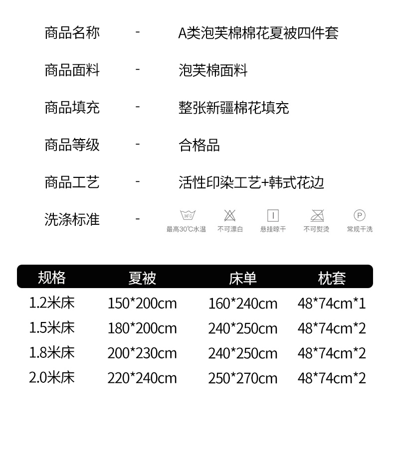 商品名称:(总)一条棉被 2024新款A类泡芙棉抗菌棉花夏被四件套