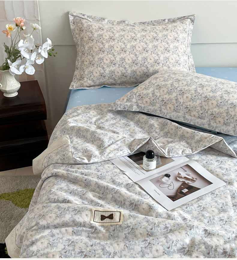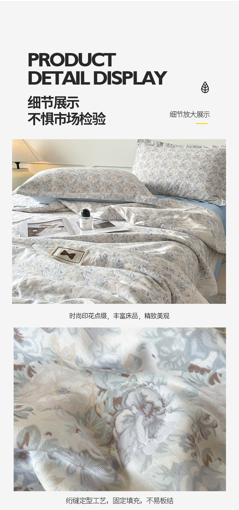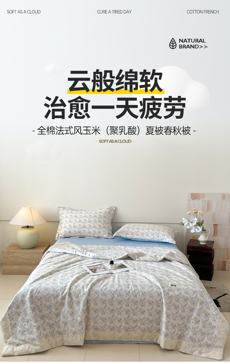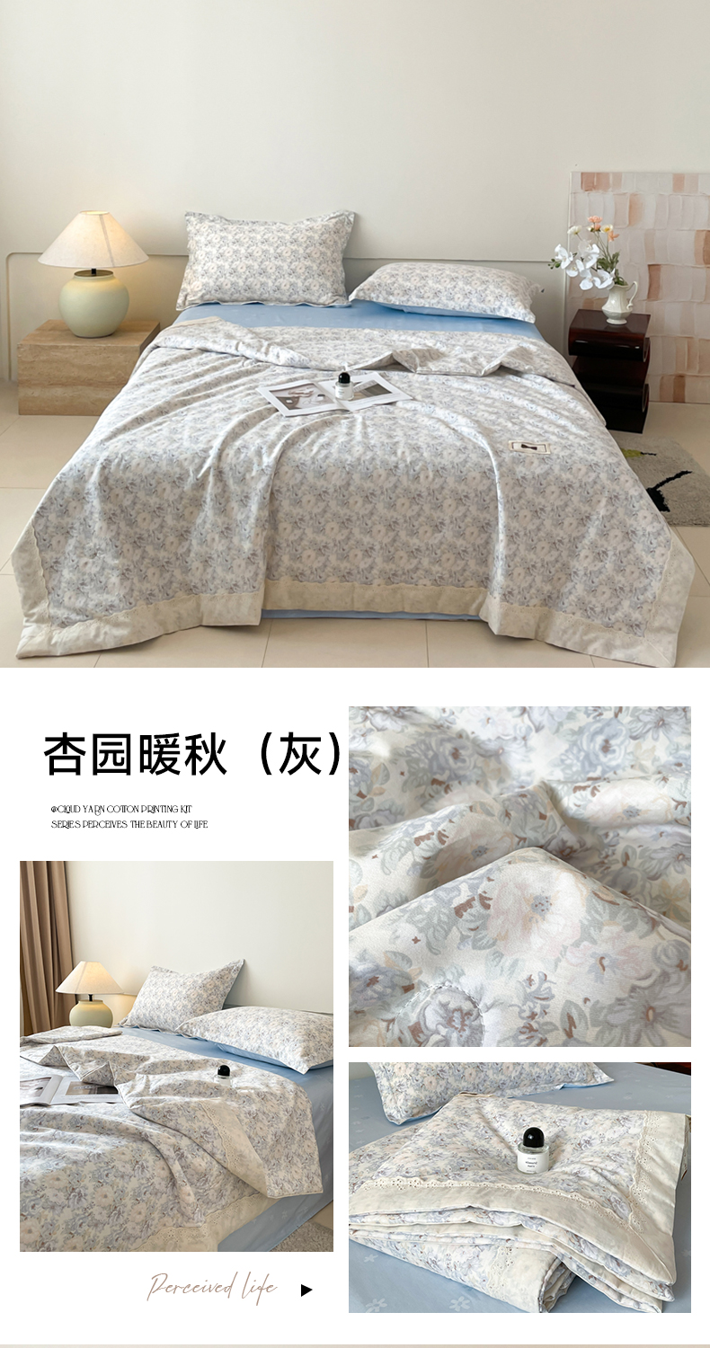 当前位置: 91家纺网 > 商品网购 > 床品套件 > 四件套 > 全棉普通四件套 > 帕拉美拉 2025新款全棉法式风玉米夏被春秋被玉米被三件套四件套 杏园暖秋(灰)