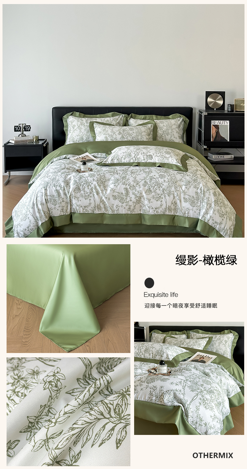 商品名称:金牛座2025新款细斜纹数码印花缦影四件套 缦影-橄榄绿