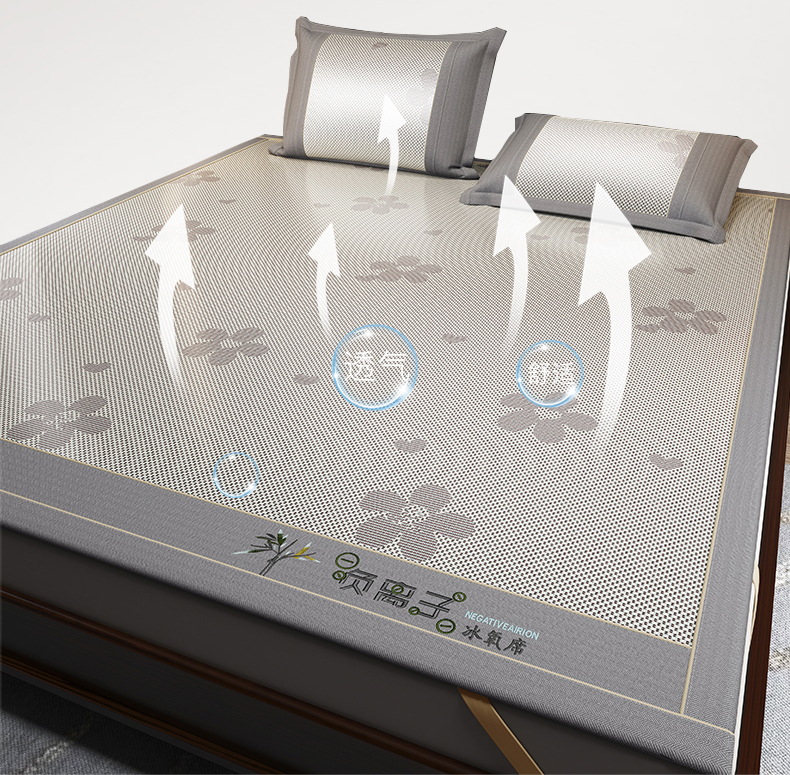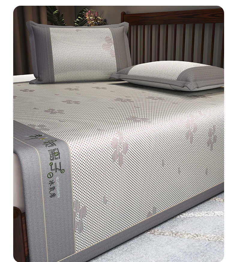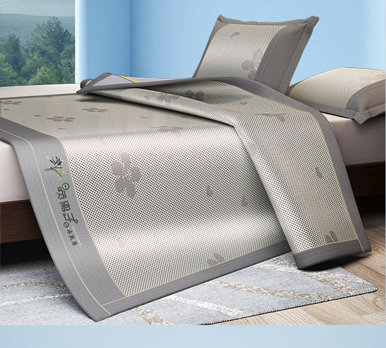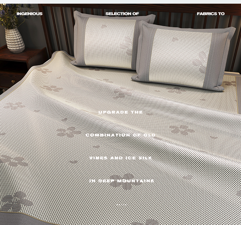 商品名称:雅诗帛 2025新款碳光绣花凉感冰藤席 樱花-银灰