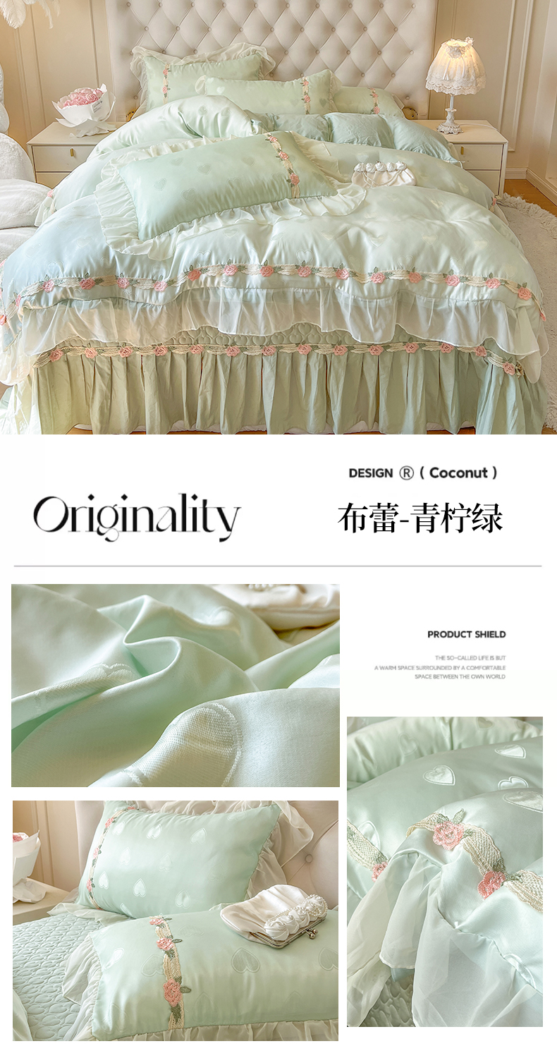 当前位置: 91家纺网 > 商品网购 > 床品套件 > 四件套 > 全棉普通四件套 > (总)瑞宝 2025新款全棉法式花边贡缎提花四件套-布蕾(控价床单 270起 床盖 300起)
