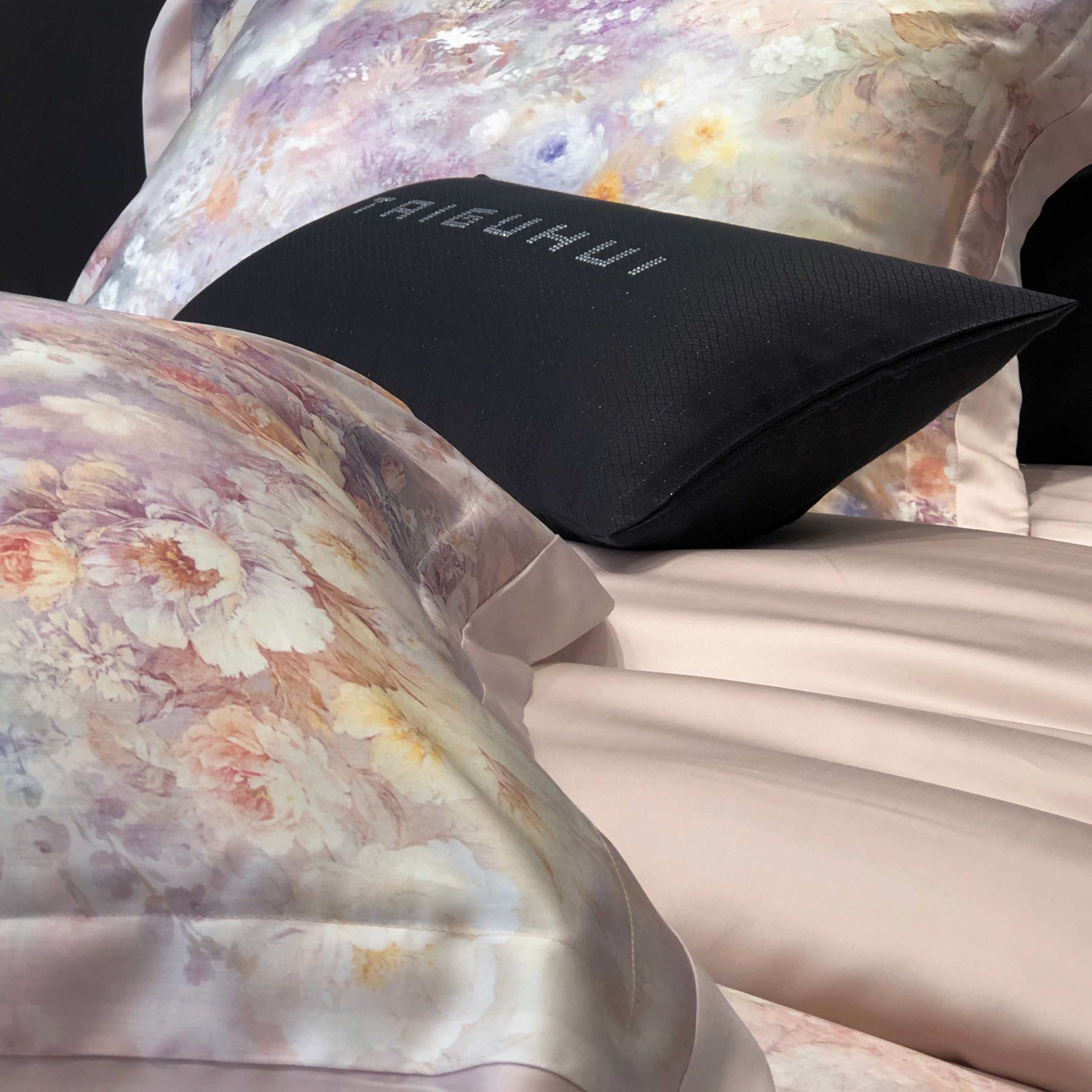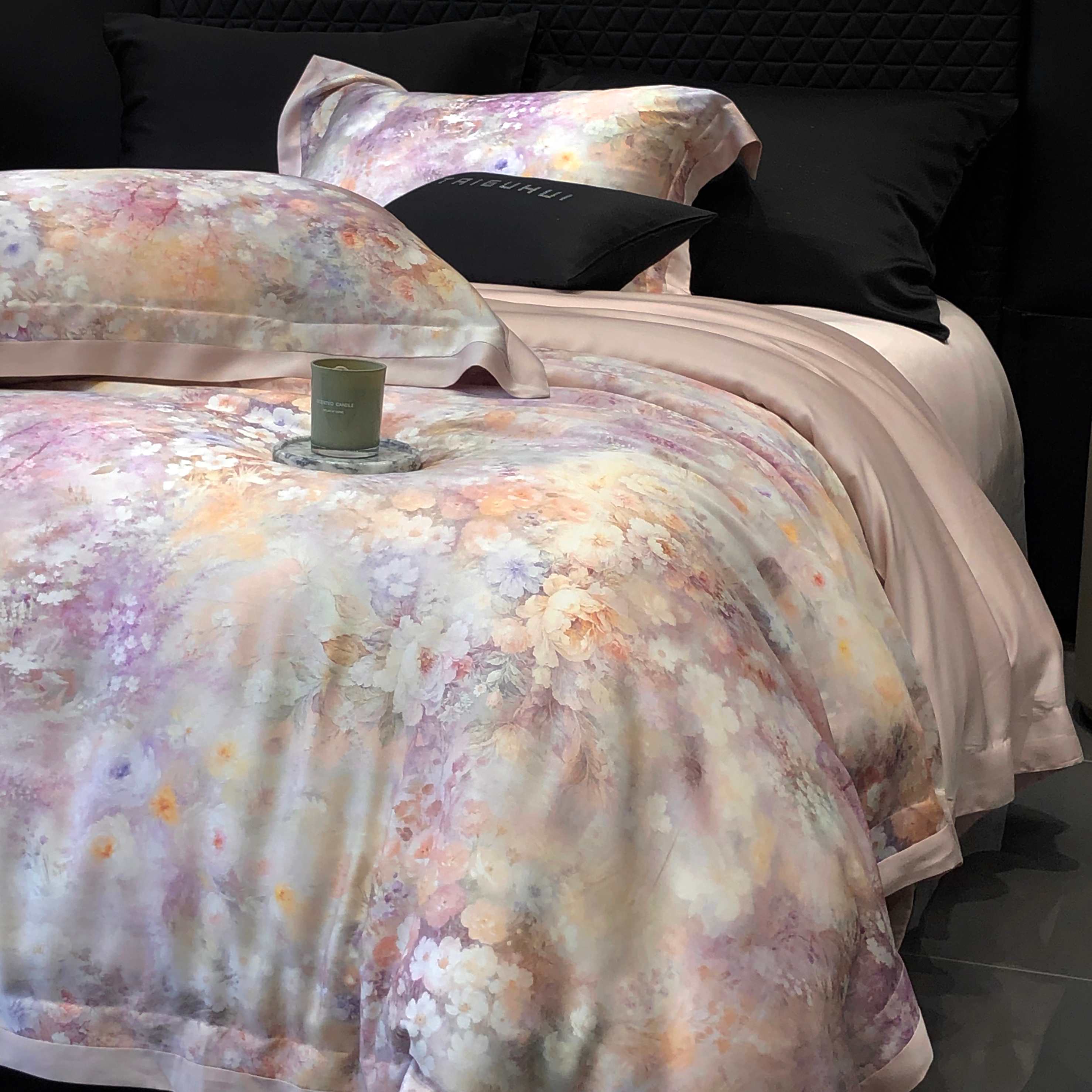 太古汇家居 2025新款60兰精天丝宽边被套枕套活性数码印花系列四件套【券后不低于338】 浅夏花开-藕粉