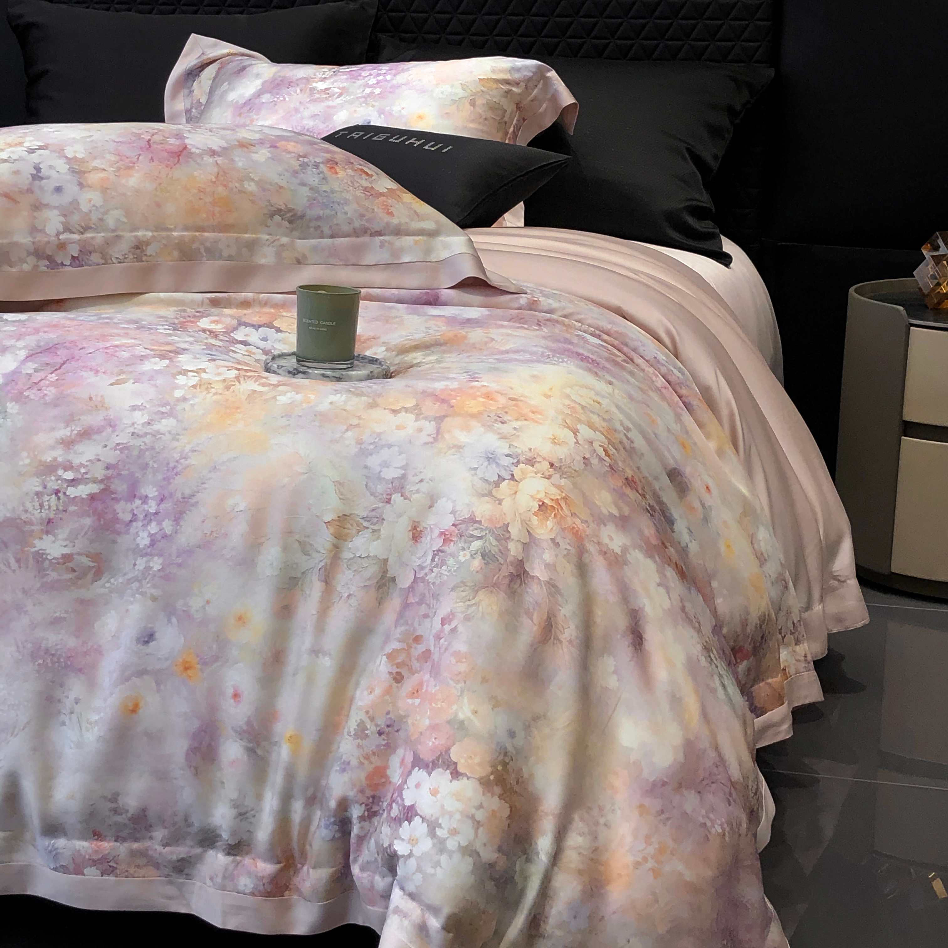 (总)太古汇家居 2025新款活性数码印花四件套,丽奥娜-松石绿,丽奥娜-杏子灰,丽奥娜-樱落紫,莉安娜-粉,莉安娜-卡其,莉安娜-绿,西莉娅-淡紫,西莉娅-粉色