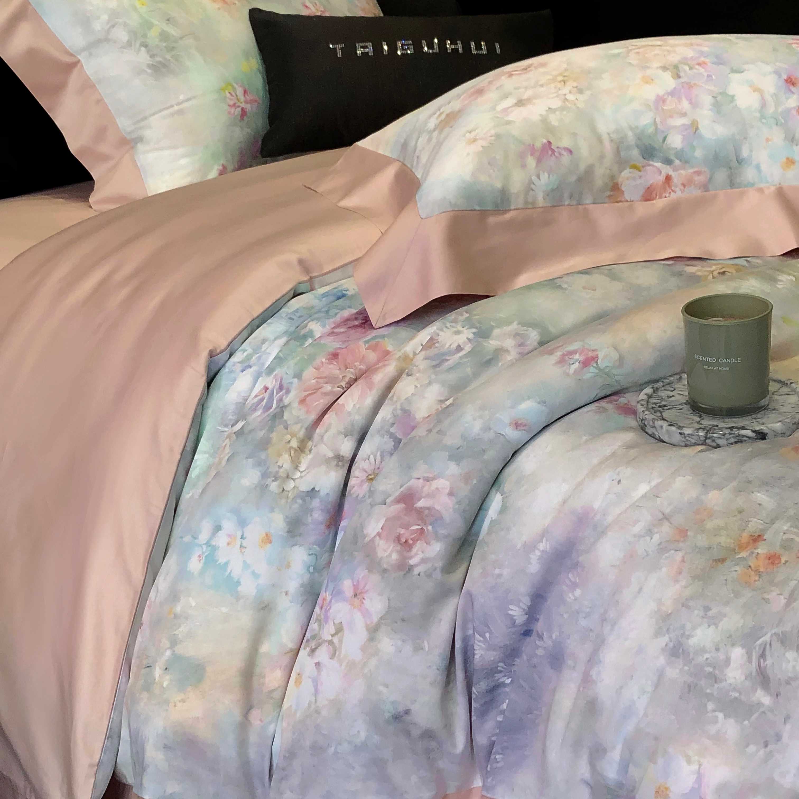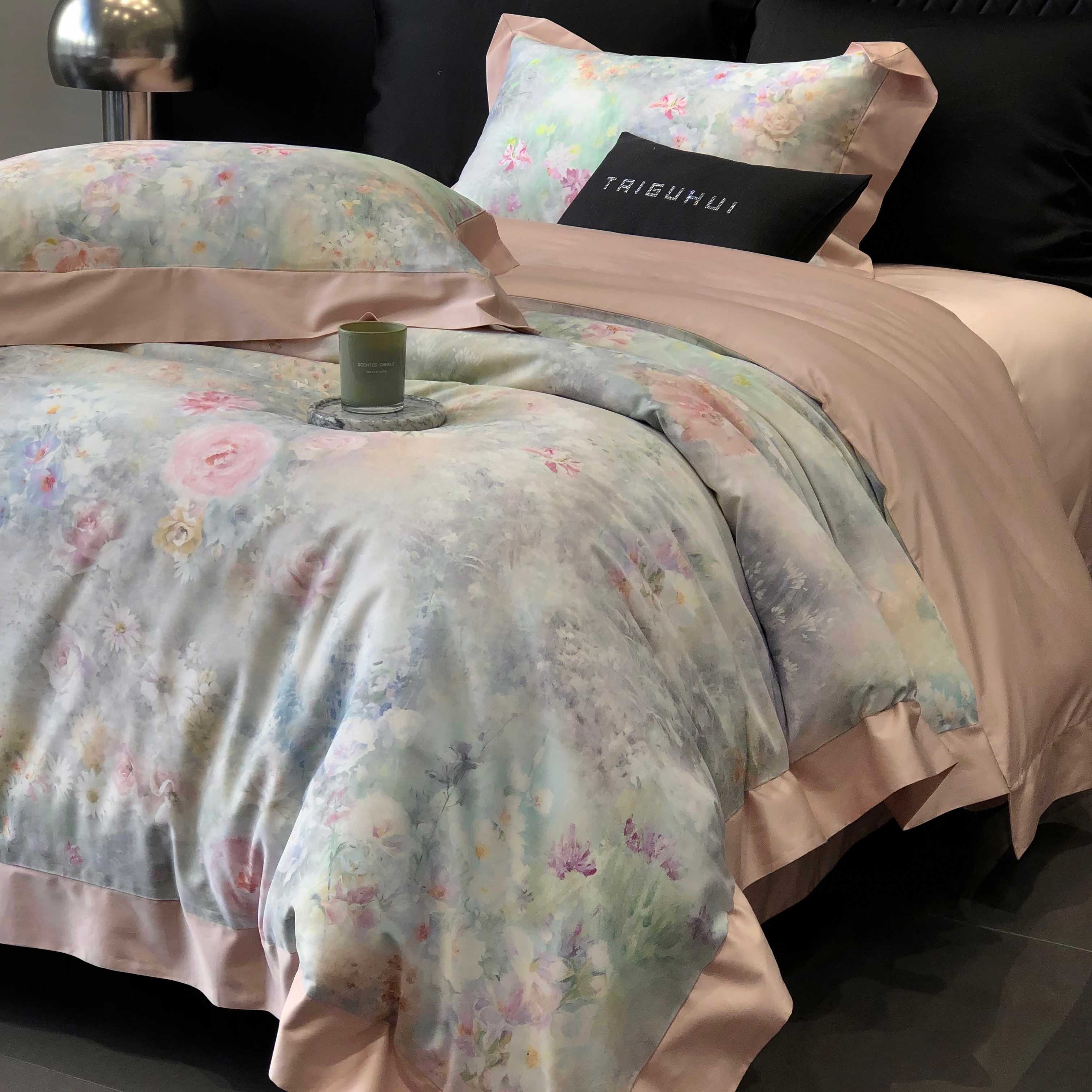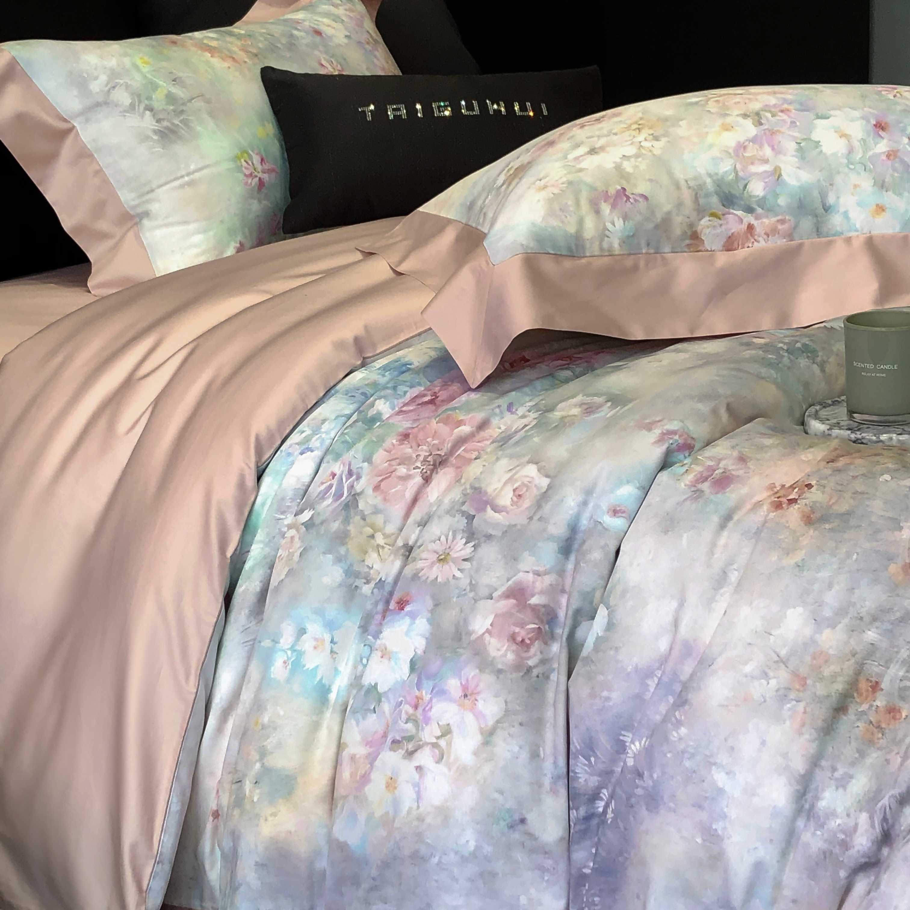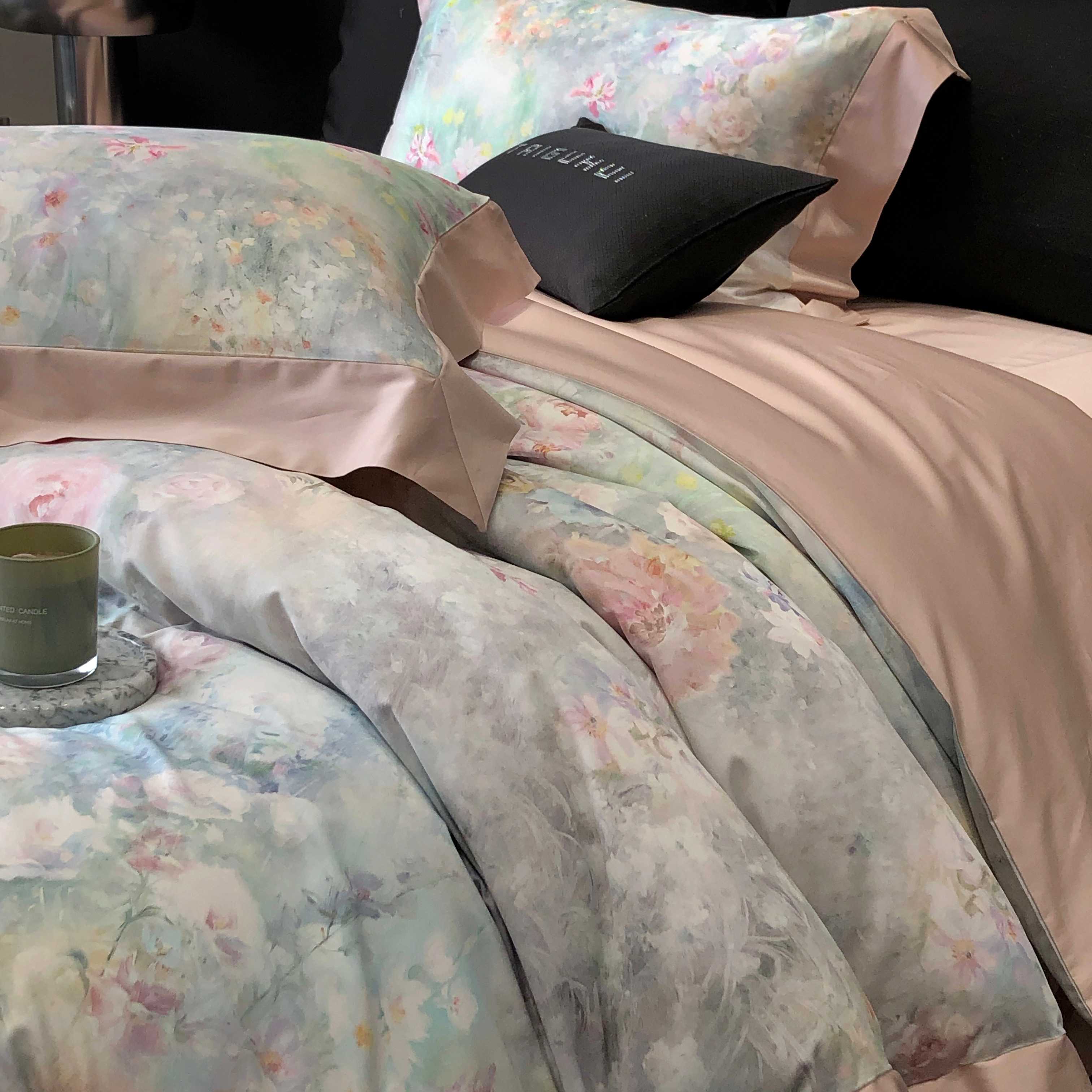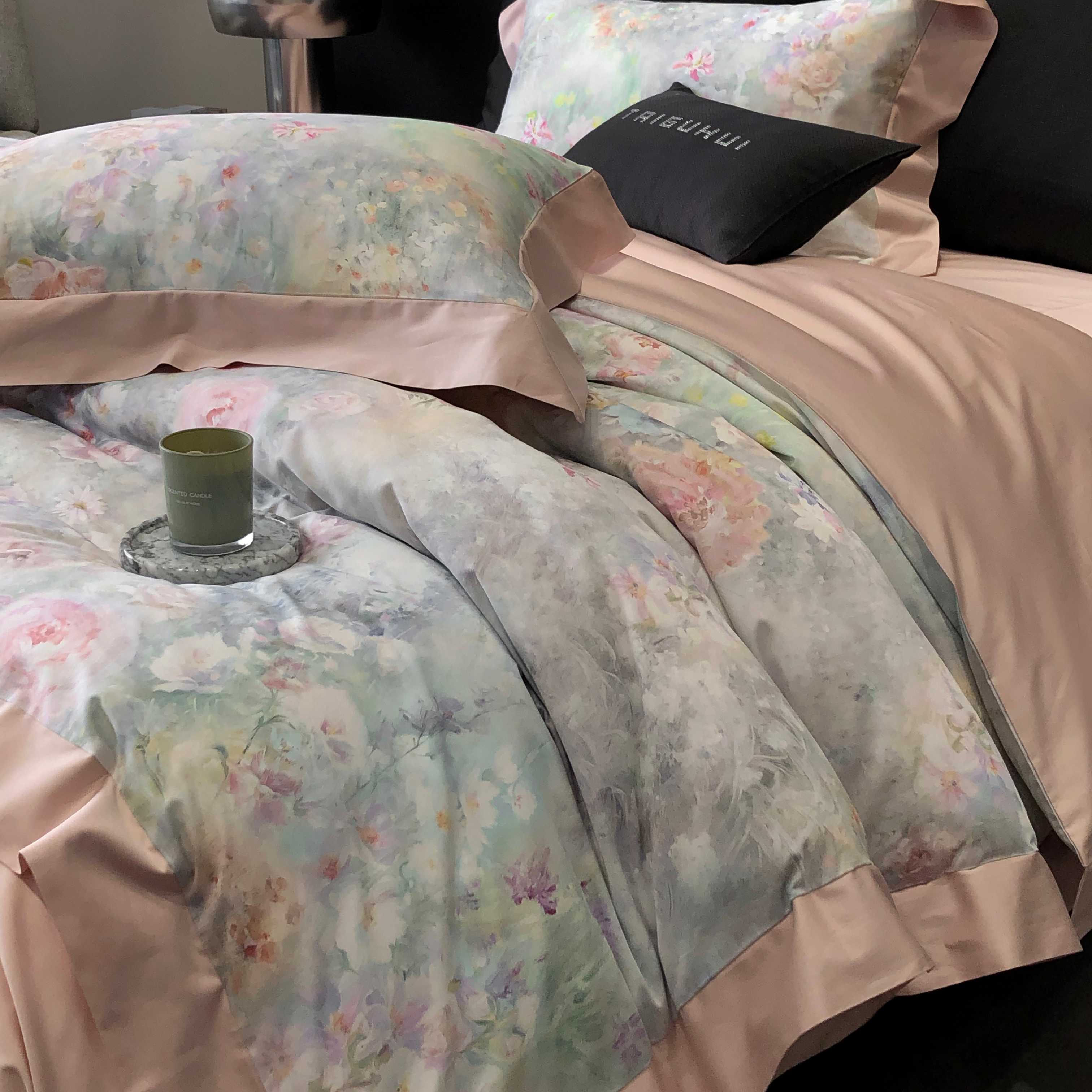 (总)太古汇家居 2025新款活性数码印花四件套,丽奥娜-松石绿,丽奥娜-杏子灰,丽奥娜-樱落紫,莉安娜-粉,莉安娜-卡其,莉安娜-绿,西莉娅-淡紫,西莉娅-粉色
