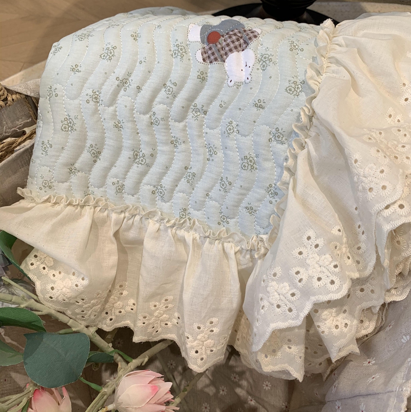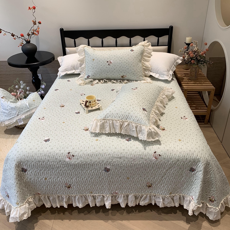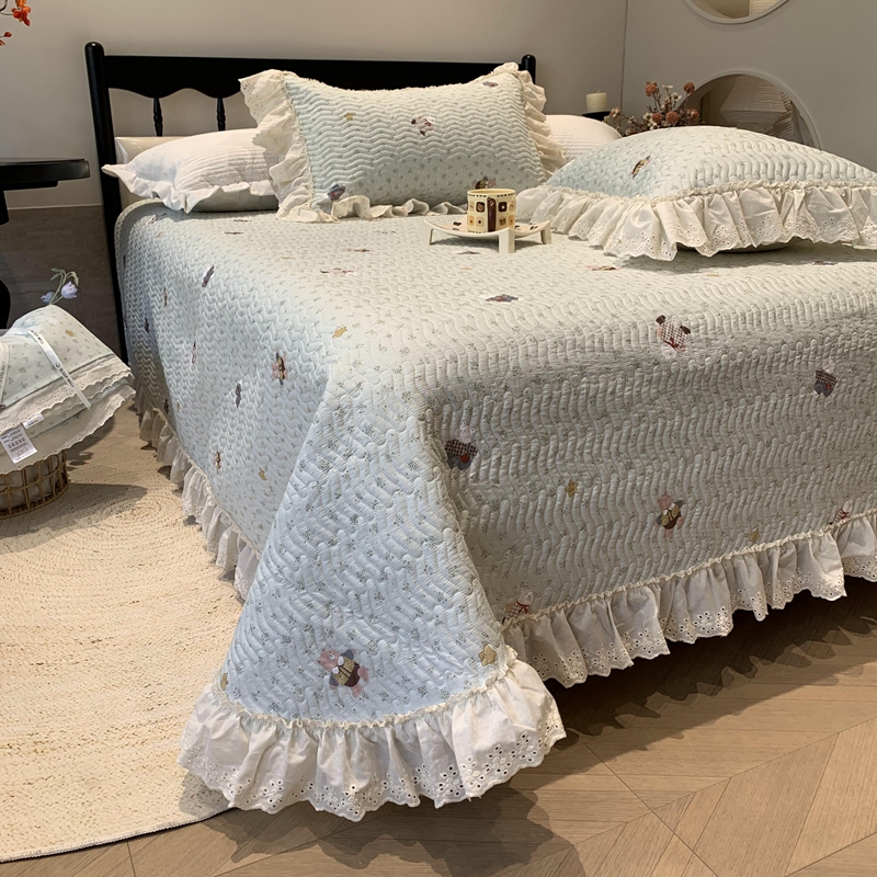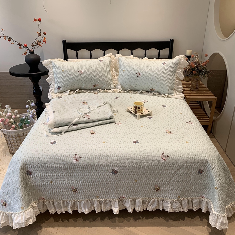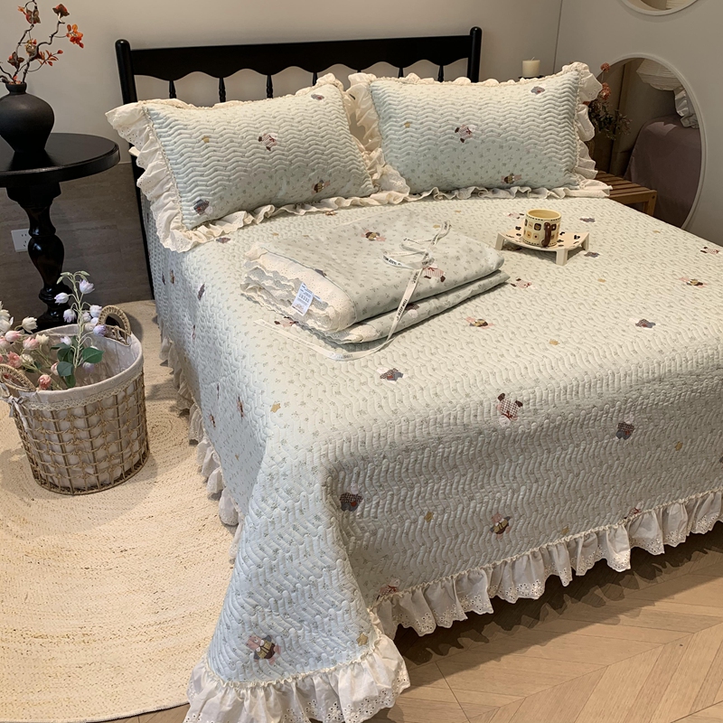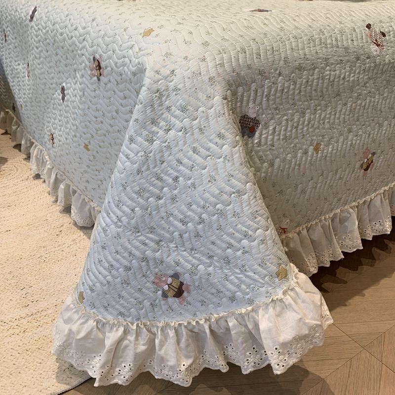 奈萝家纺 2025新款全棉蕾丝花边床盖三件套四件套纯棉花边夏被 小花熊