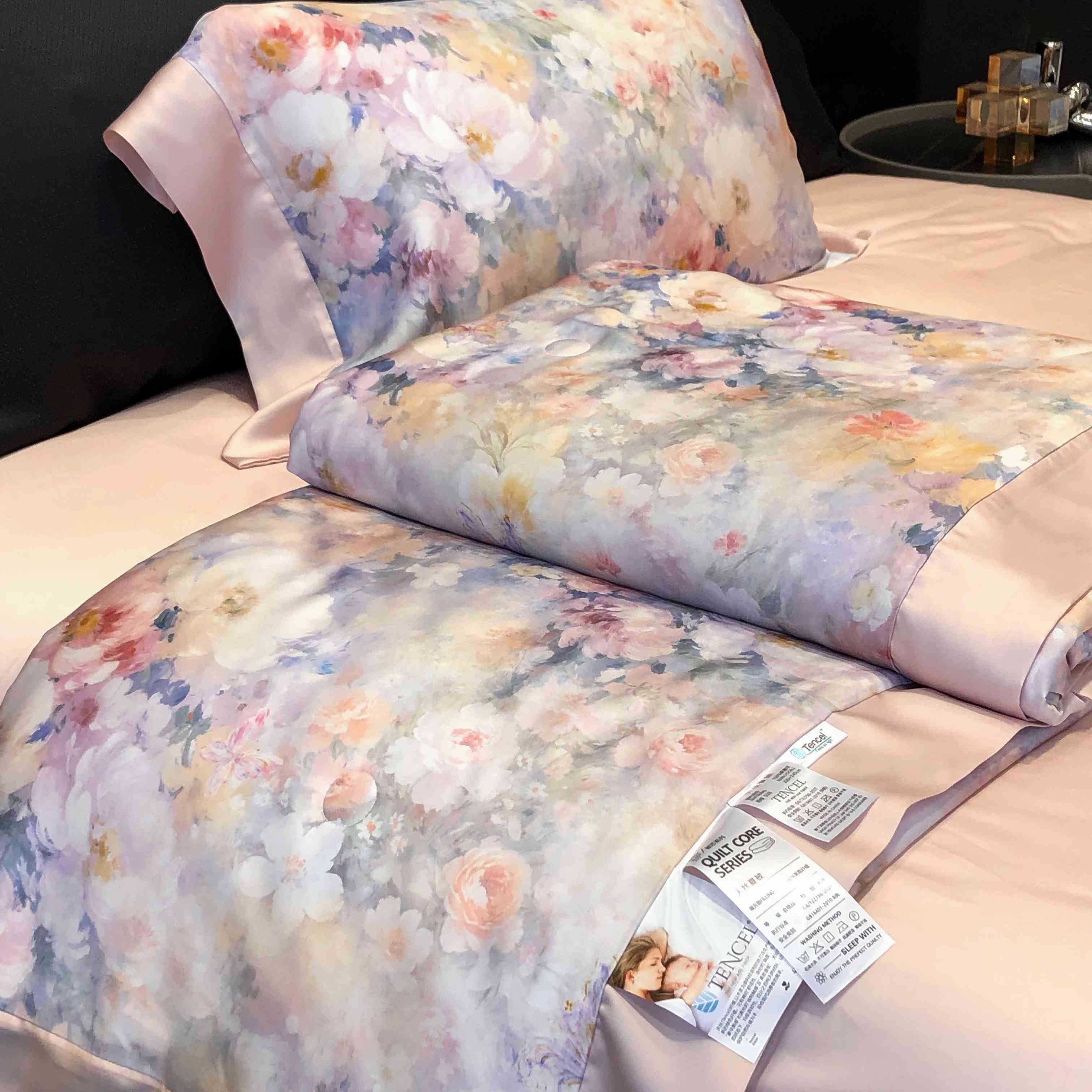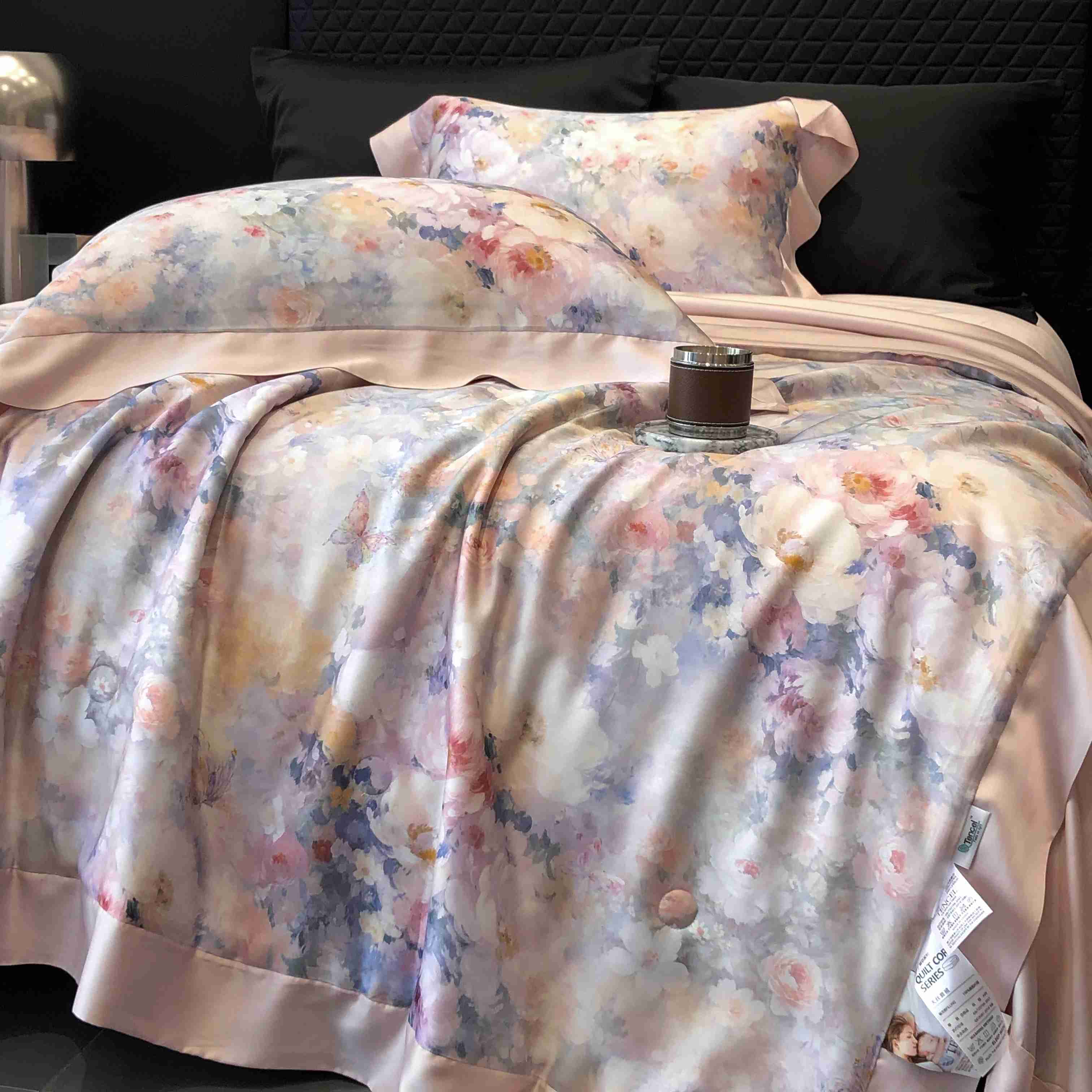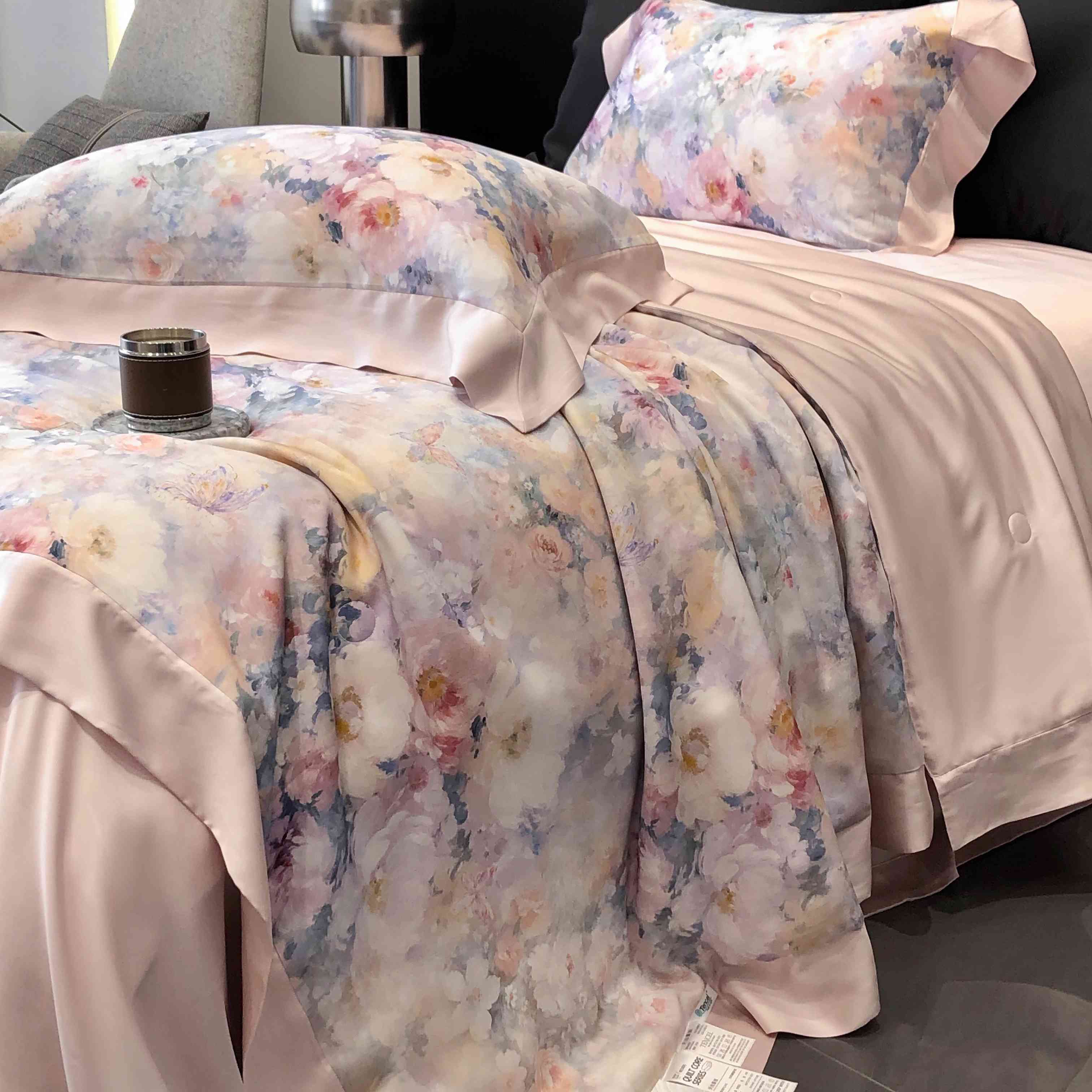 太古汇家居 2025新款兰精天丝活性数码印花夏被系列 一亩花田-粉色