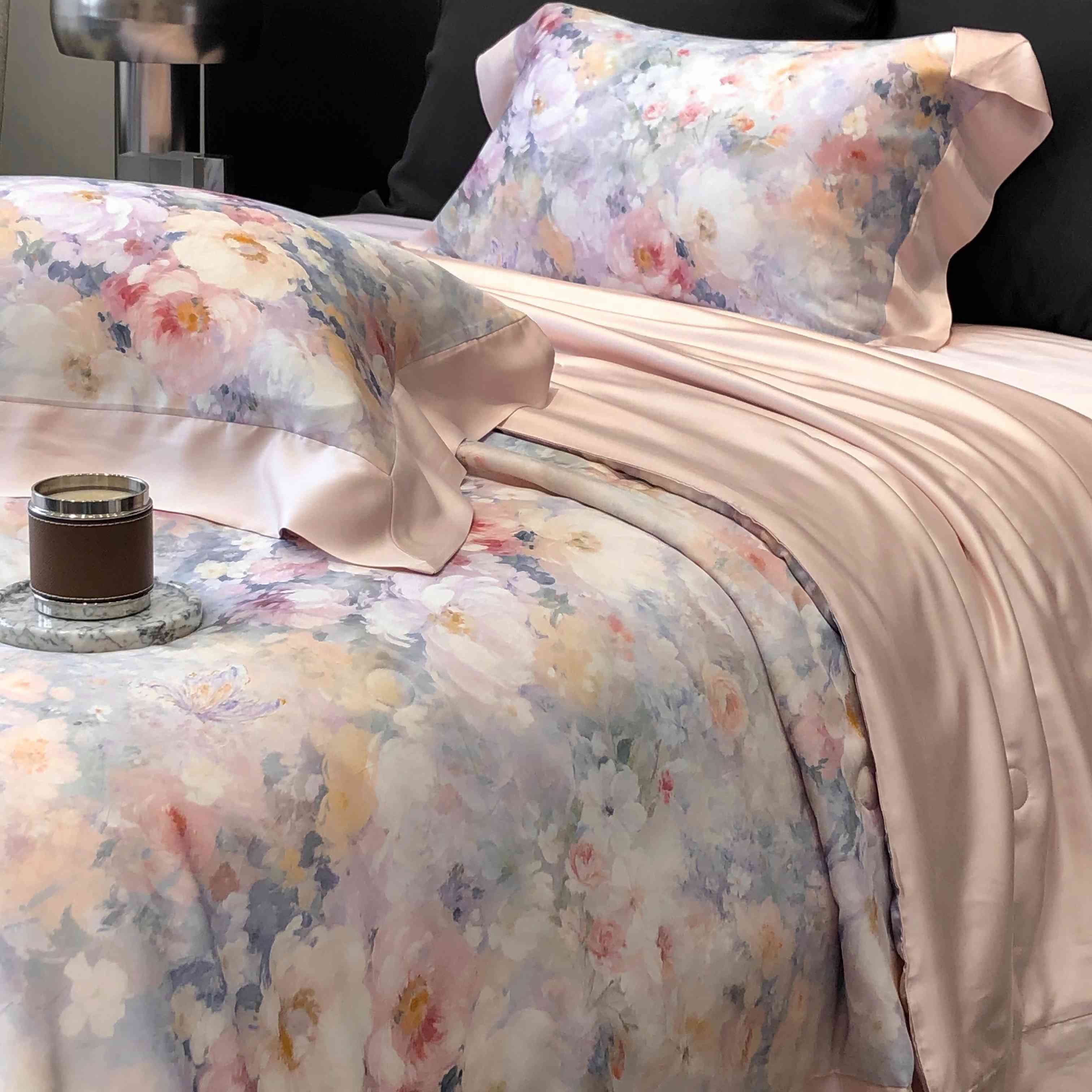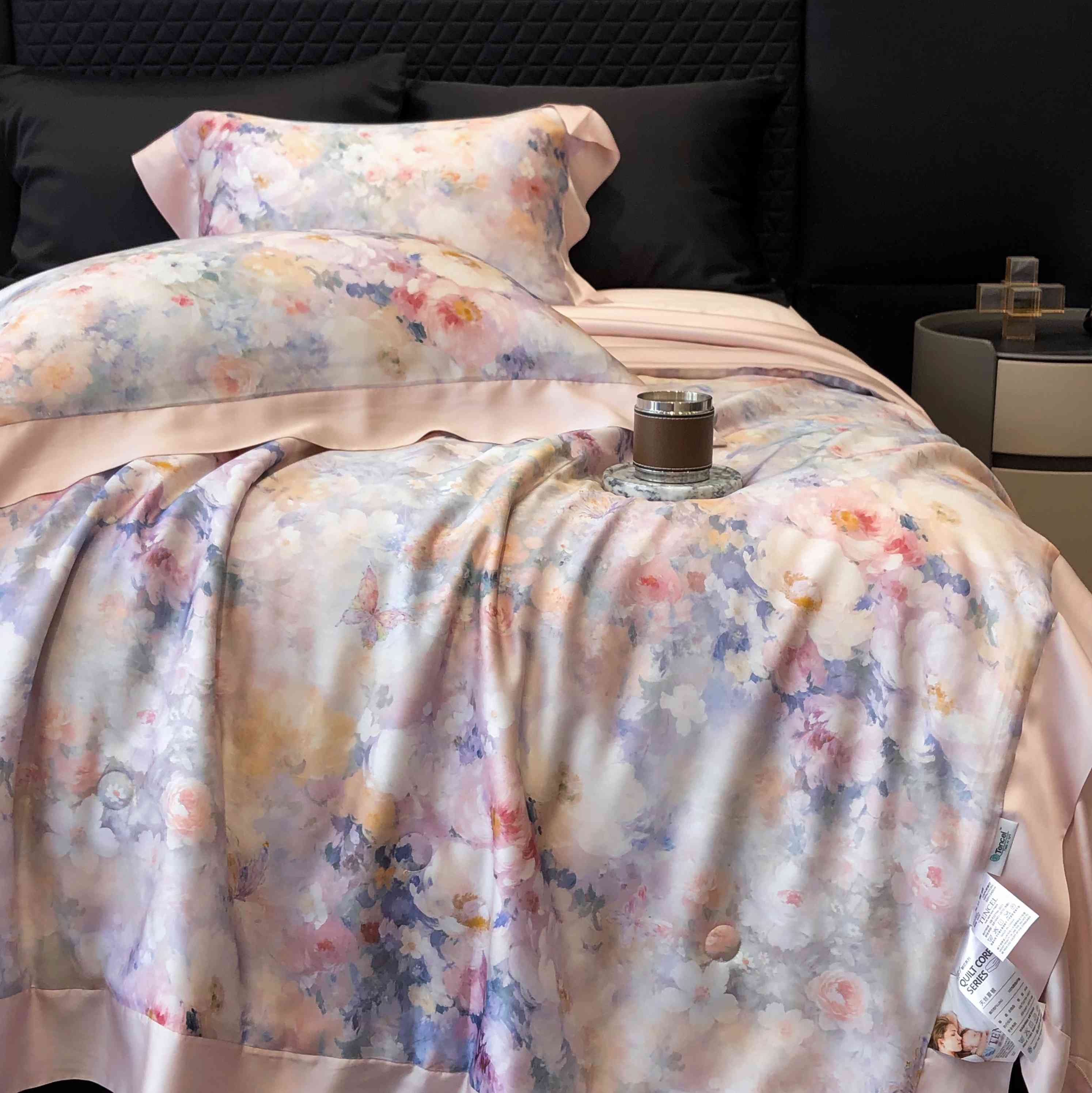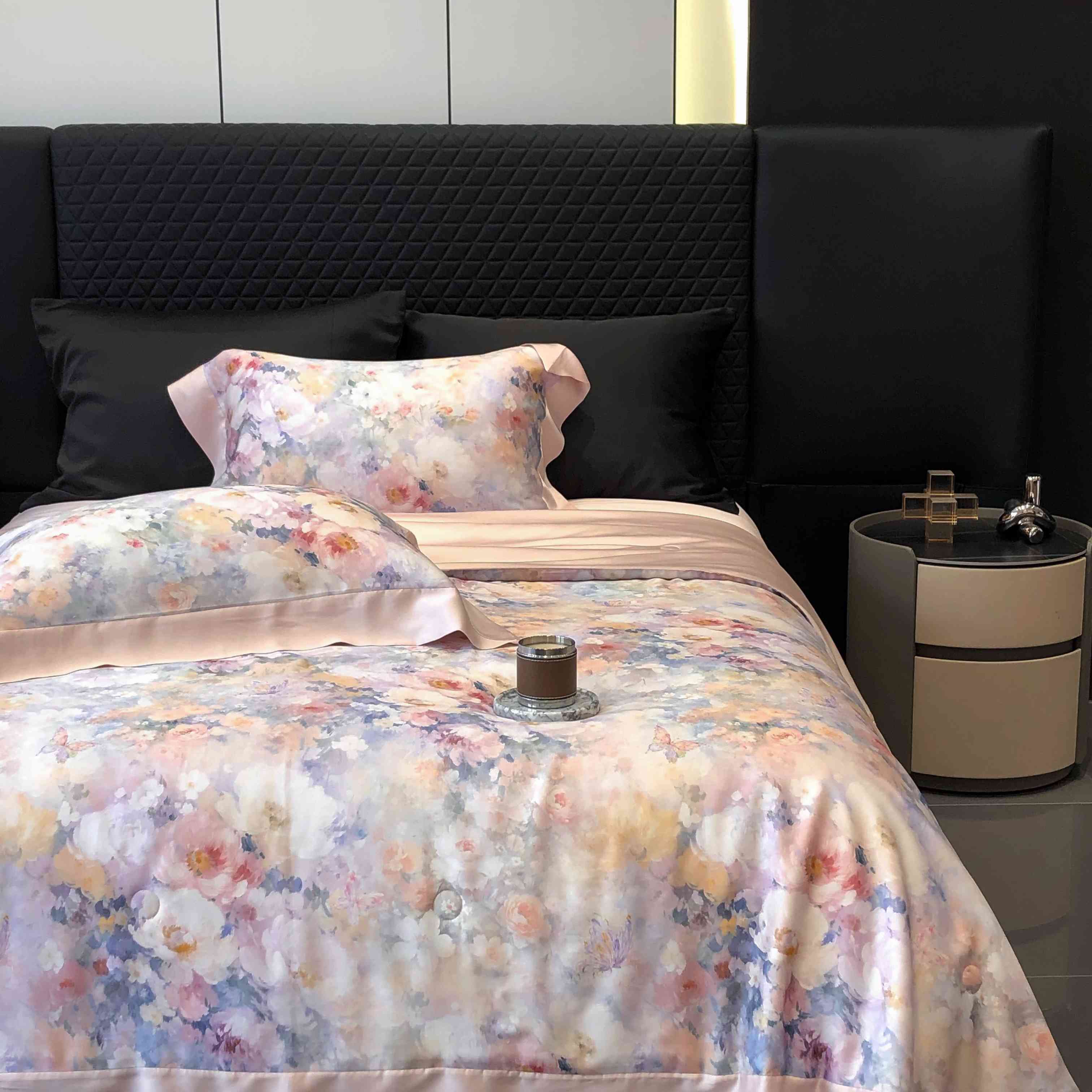 太古汇家居 2025新款兰精天丝活性数码印花夏被系列 一亩花田-粉色