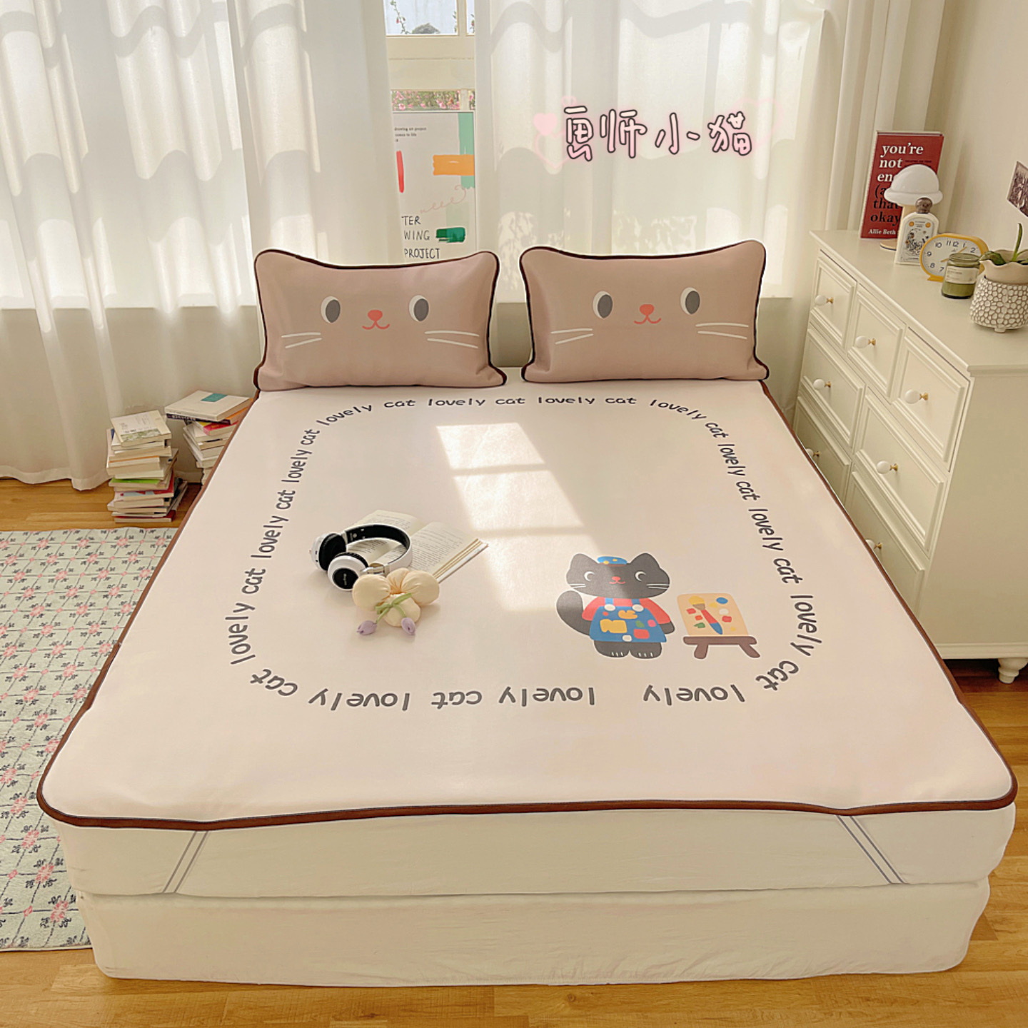 (总)顾里家纺 2024新款Kitten阳离子猫咪立体牛奶绒四件套,白心猫咪,粉心猫咪,蓝心猫咪,洛心猫咪,紫心猫咪