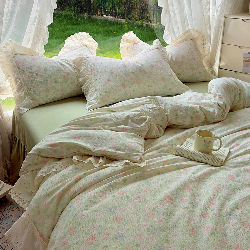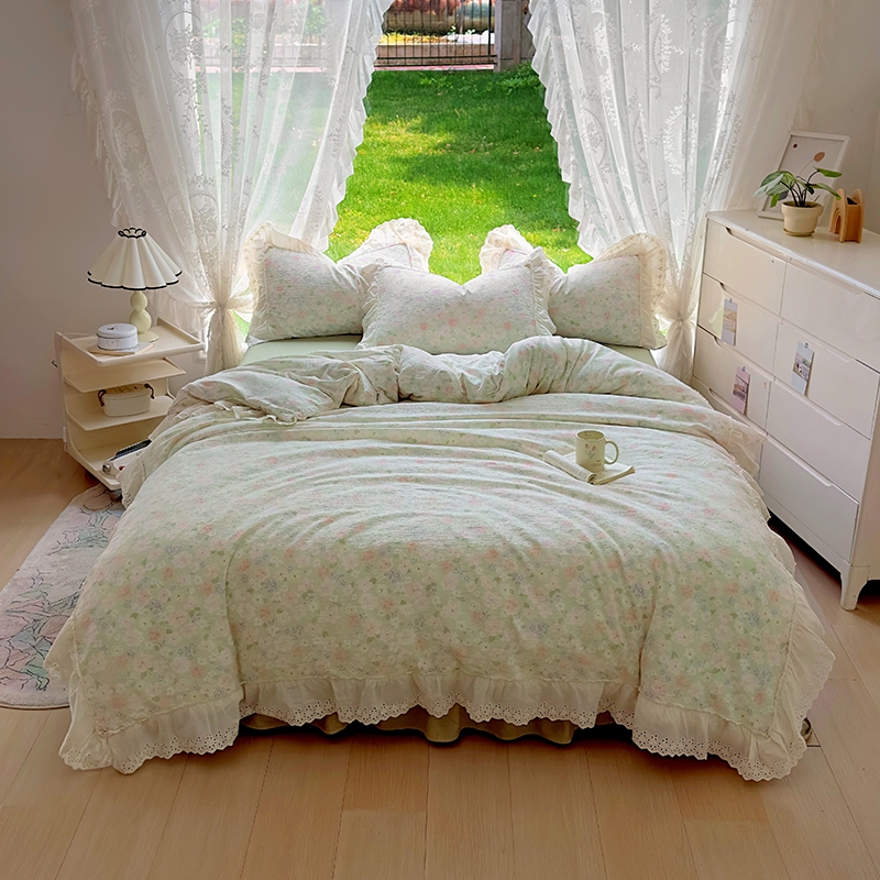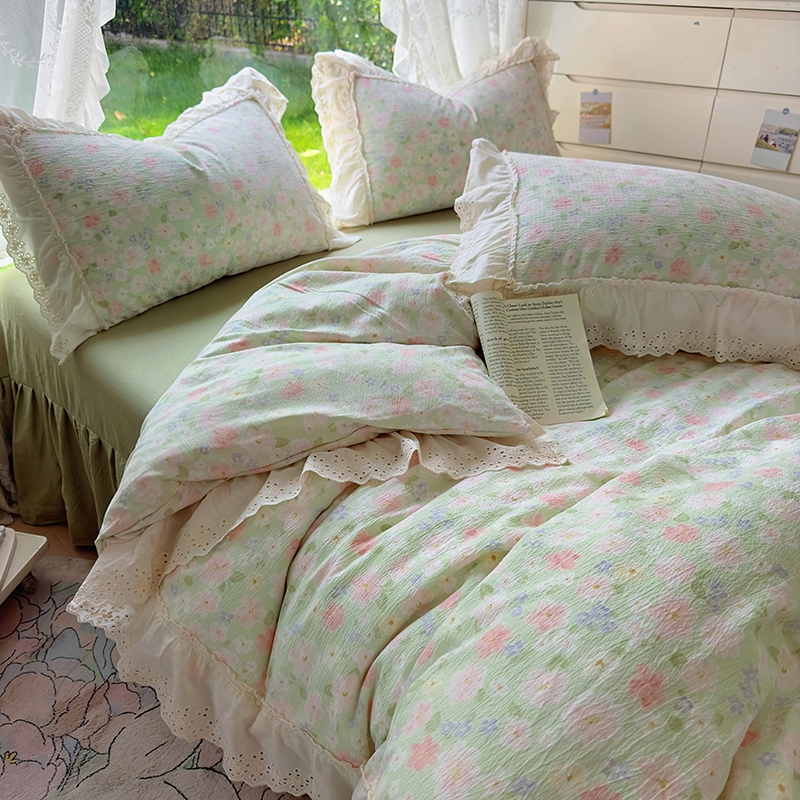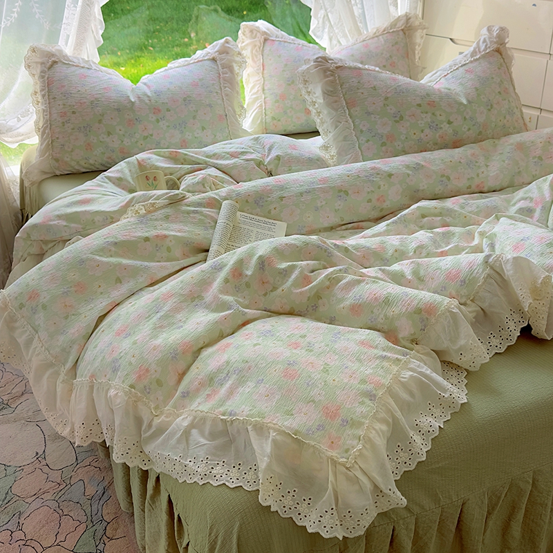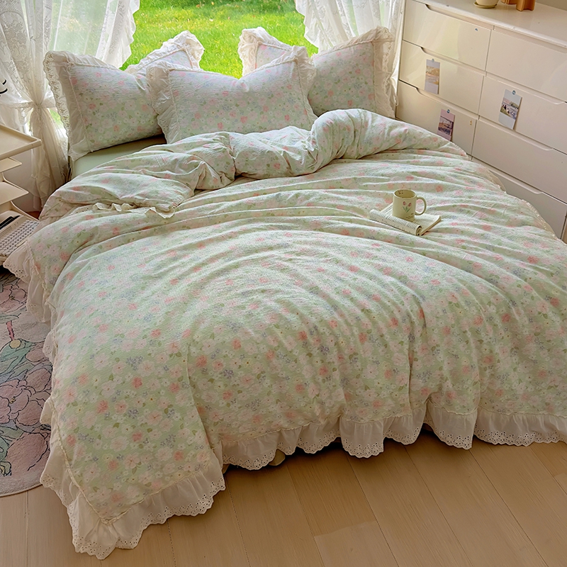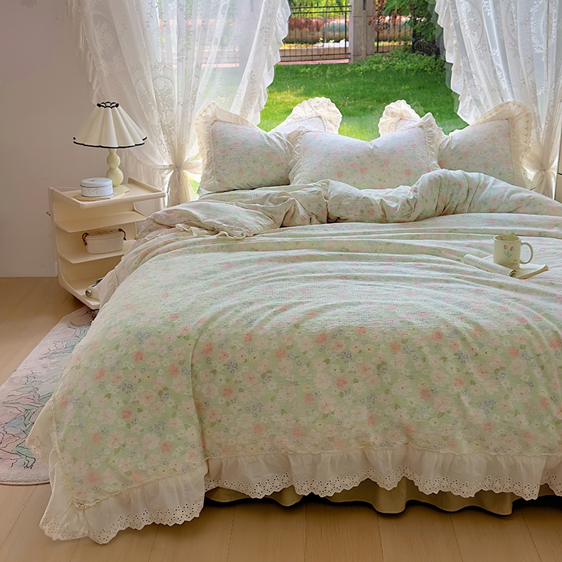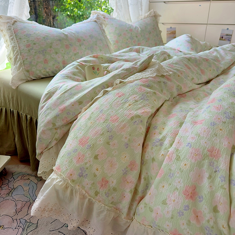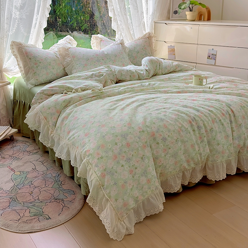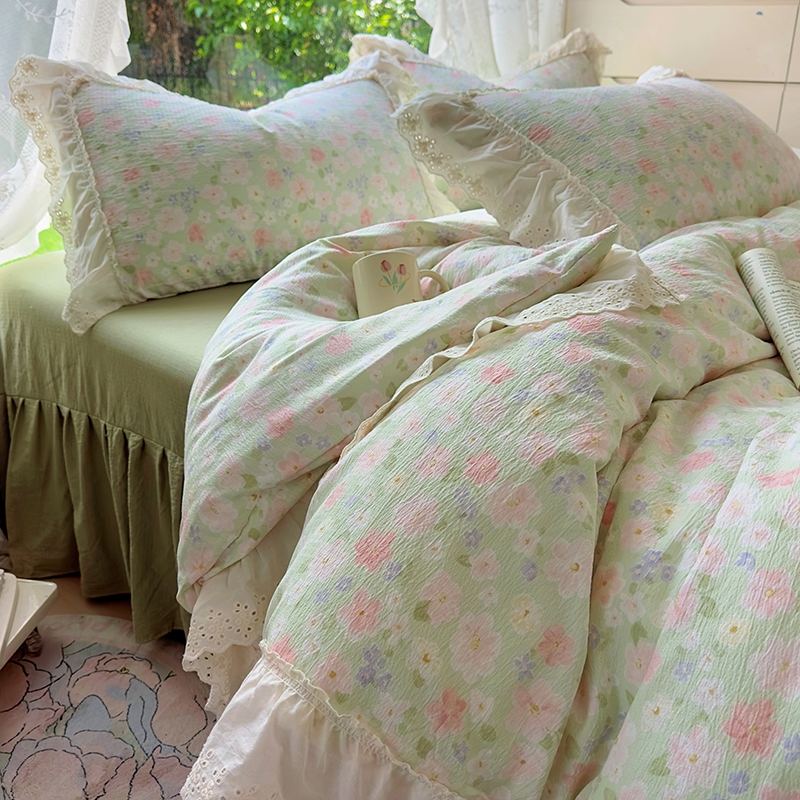 仟网汇 2025新款皱皱纱花边床裙四件套多功能夏被夏凉被空调被四件套四季通用 半夏