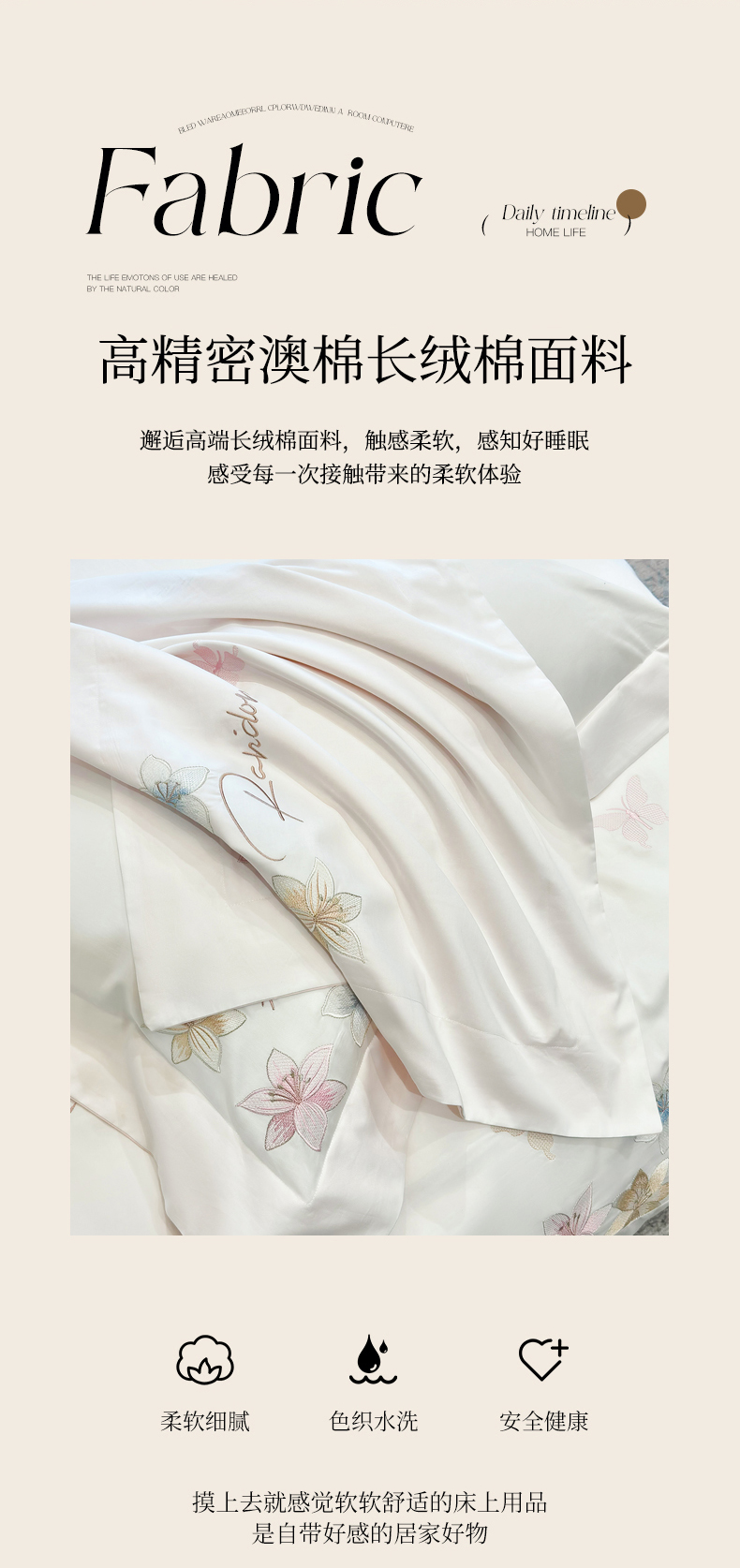 (总)星蕴家纺 2026新款A类新疆全棉刺绣四件套-千禧,高级灰,千禧粉,奶昔白,浅香槟