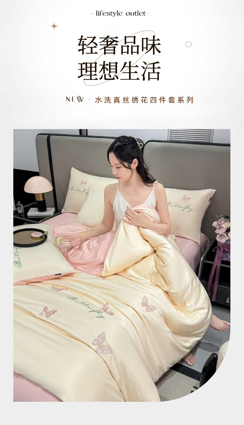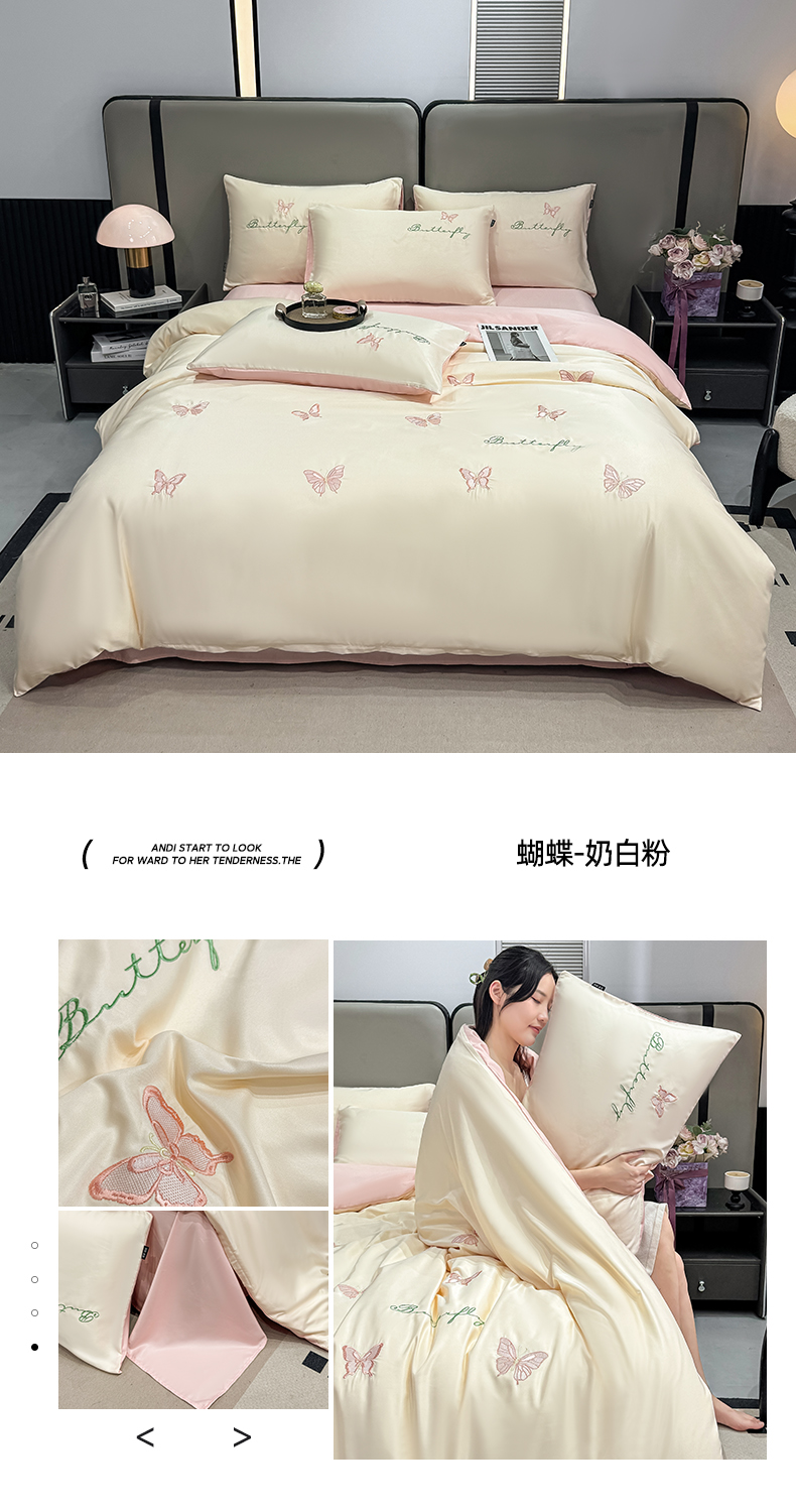 当前位置: 91家纺网 > 商品网购 > 床品套件 > 四件套 > 水洗真丝四件套 > 乐沐家纺 2025春夏新款水洗真丝绣花冰丝四件套 樱桃-奶白蓝
