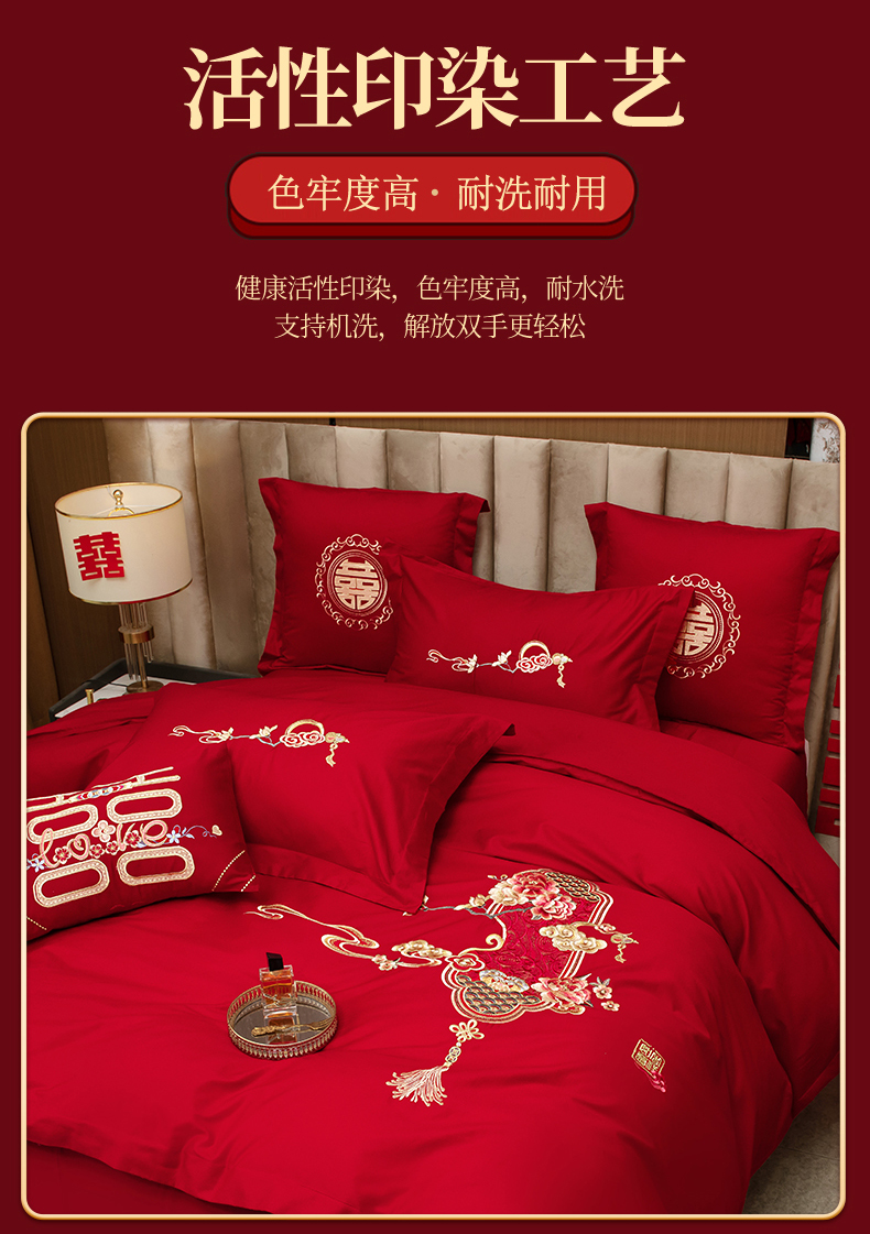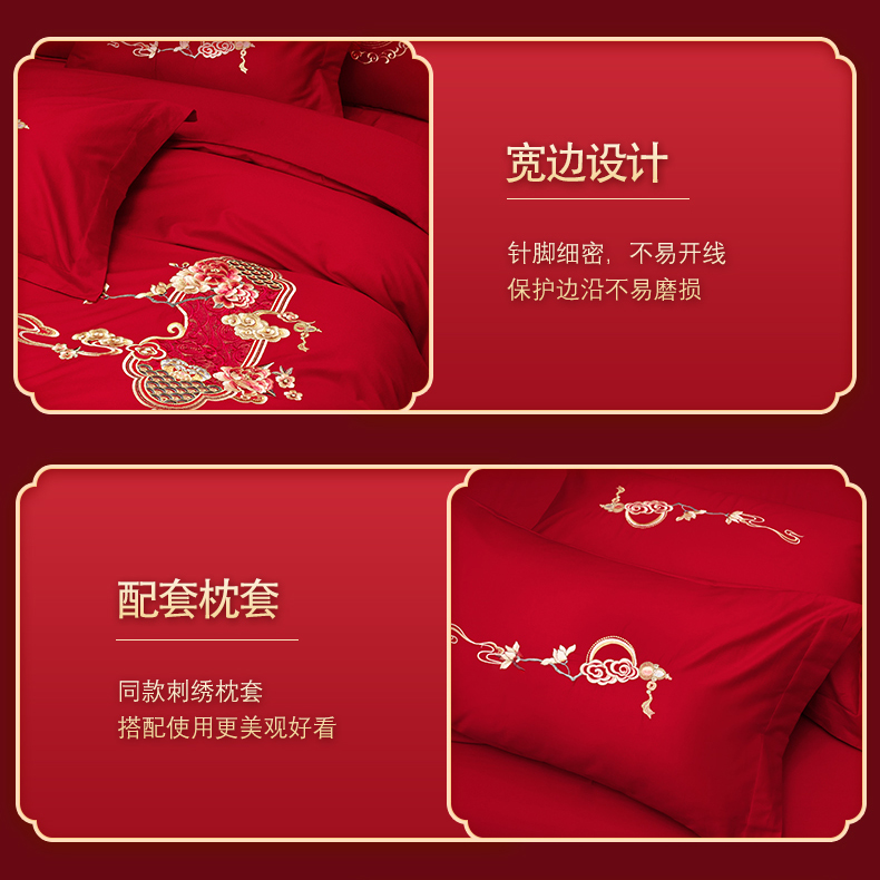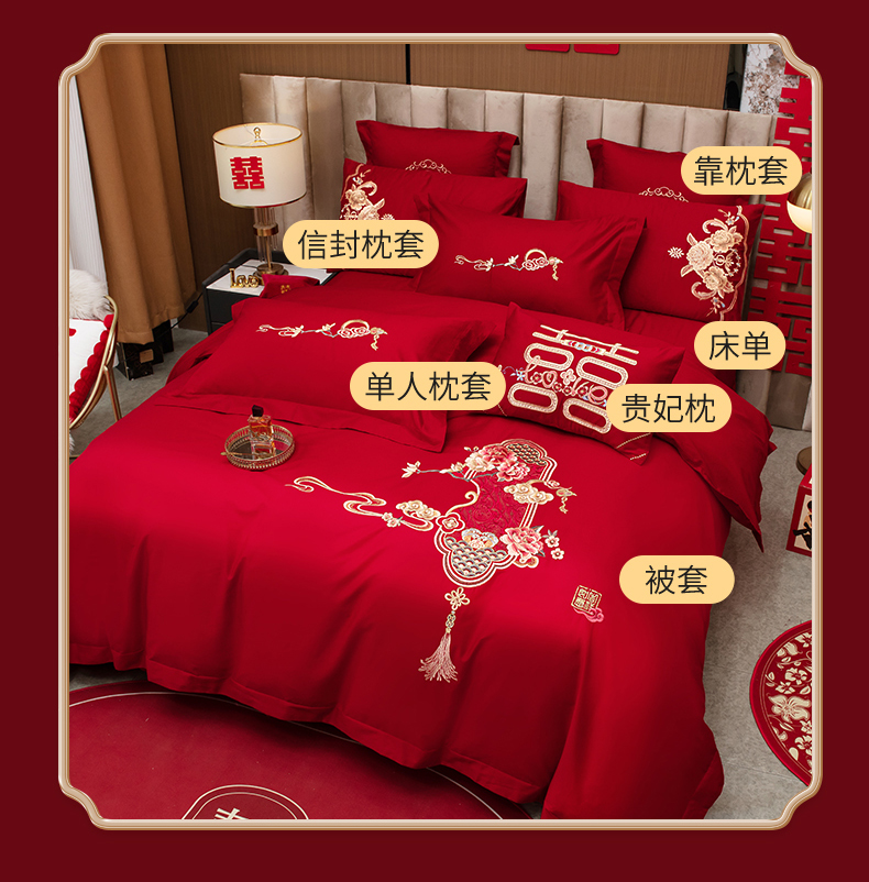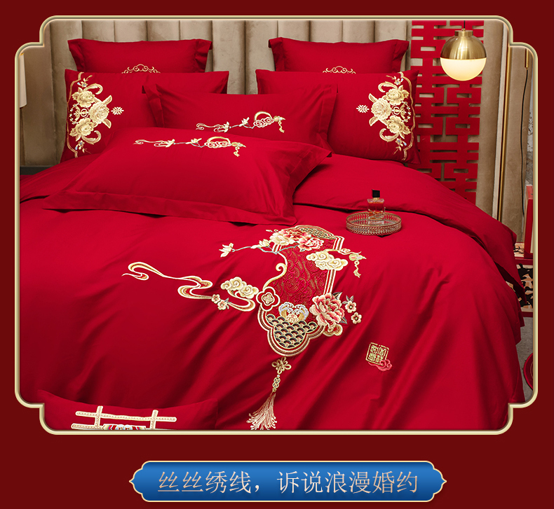 当前位置: 91家纺网 > 商品网购 > 床品套件 > 四件套 > 婚庆四件套 > 千禧家纺2025新款13372全棉绣花婚庆四件套 东方喜嫁
