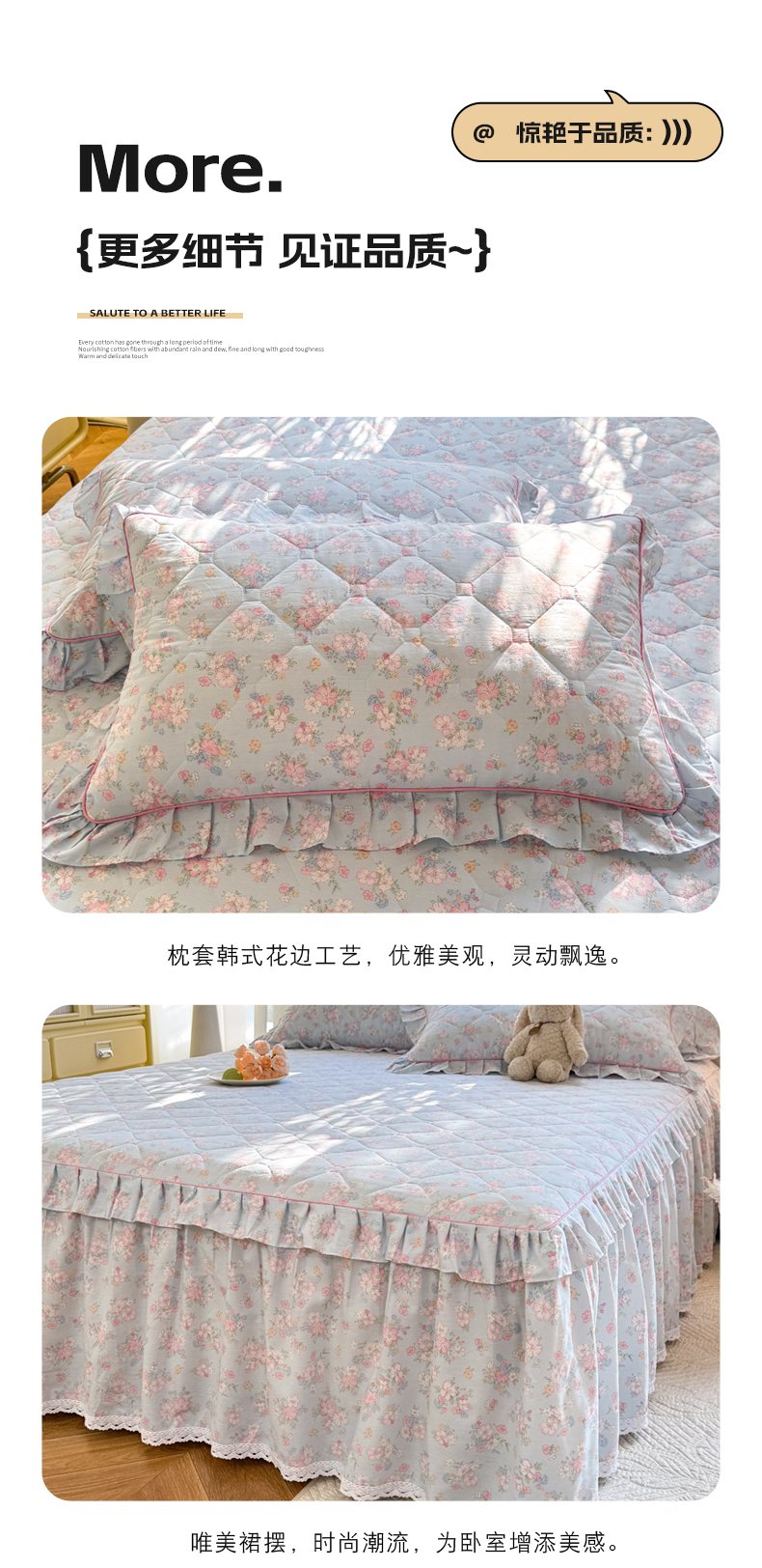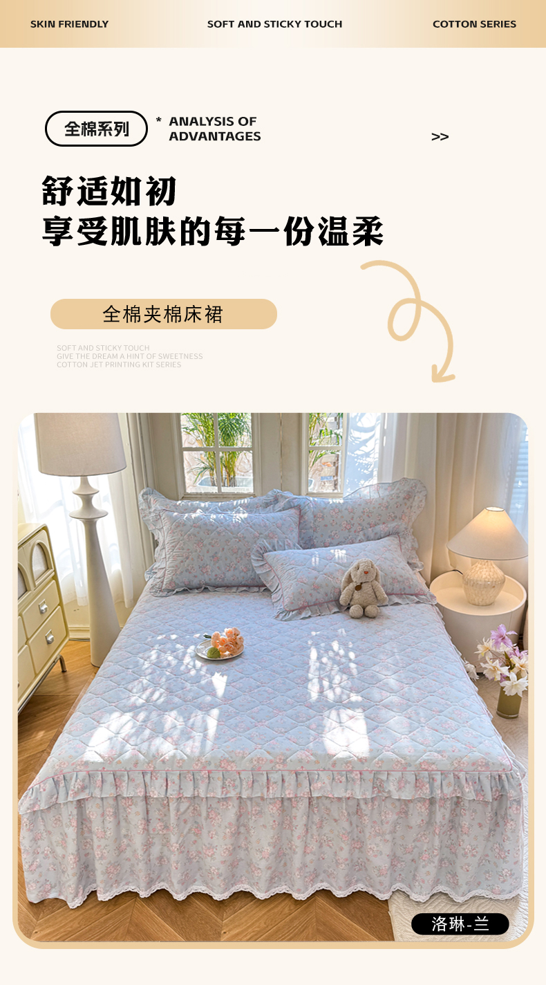 美达2025全棉蕾丝小花边夹棉单床裙 洛琳-兰