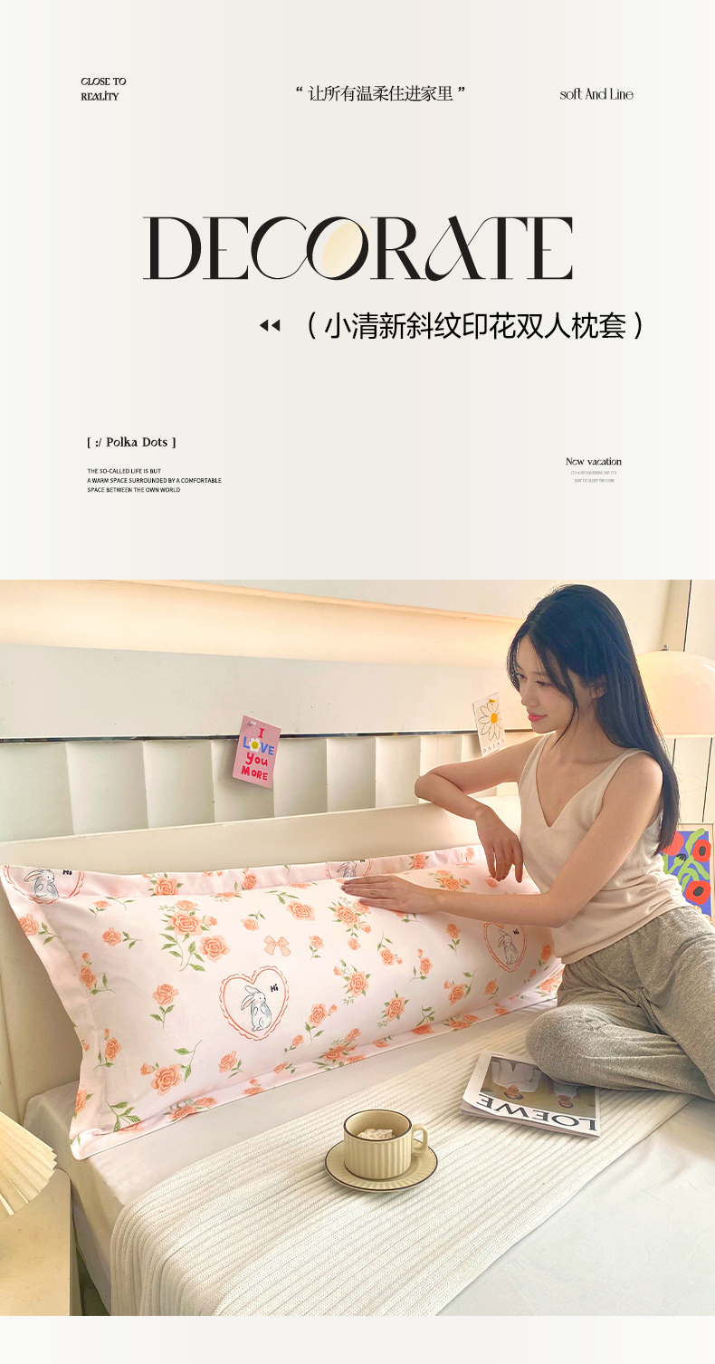 芯宜佳 2025新款小清新斜纹印花双人枕套 浮梦精灵