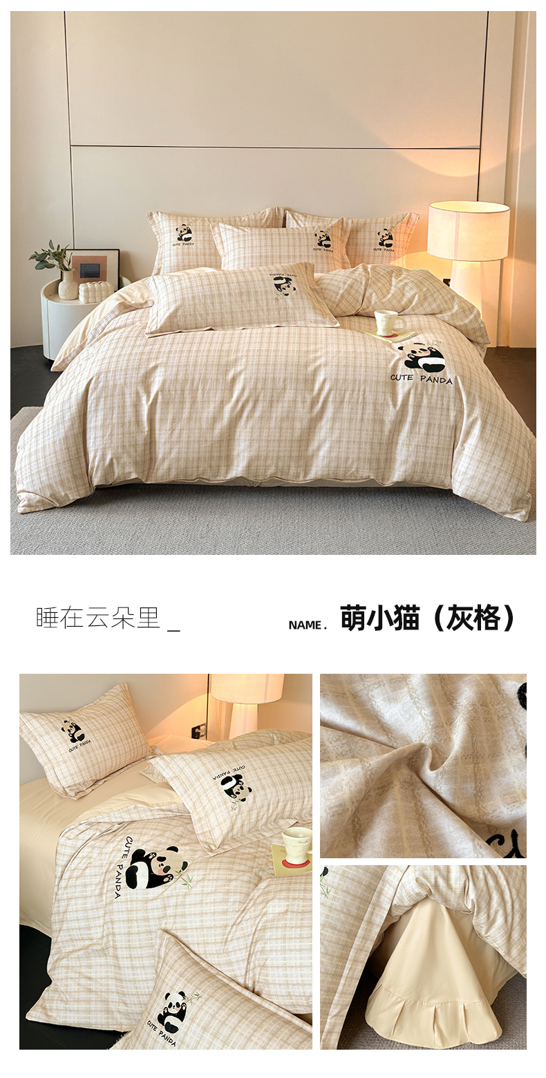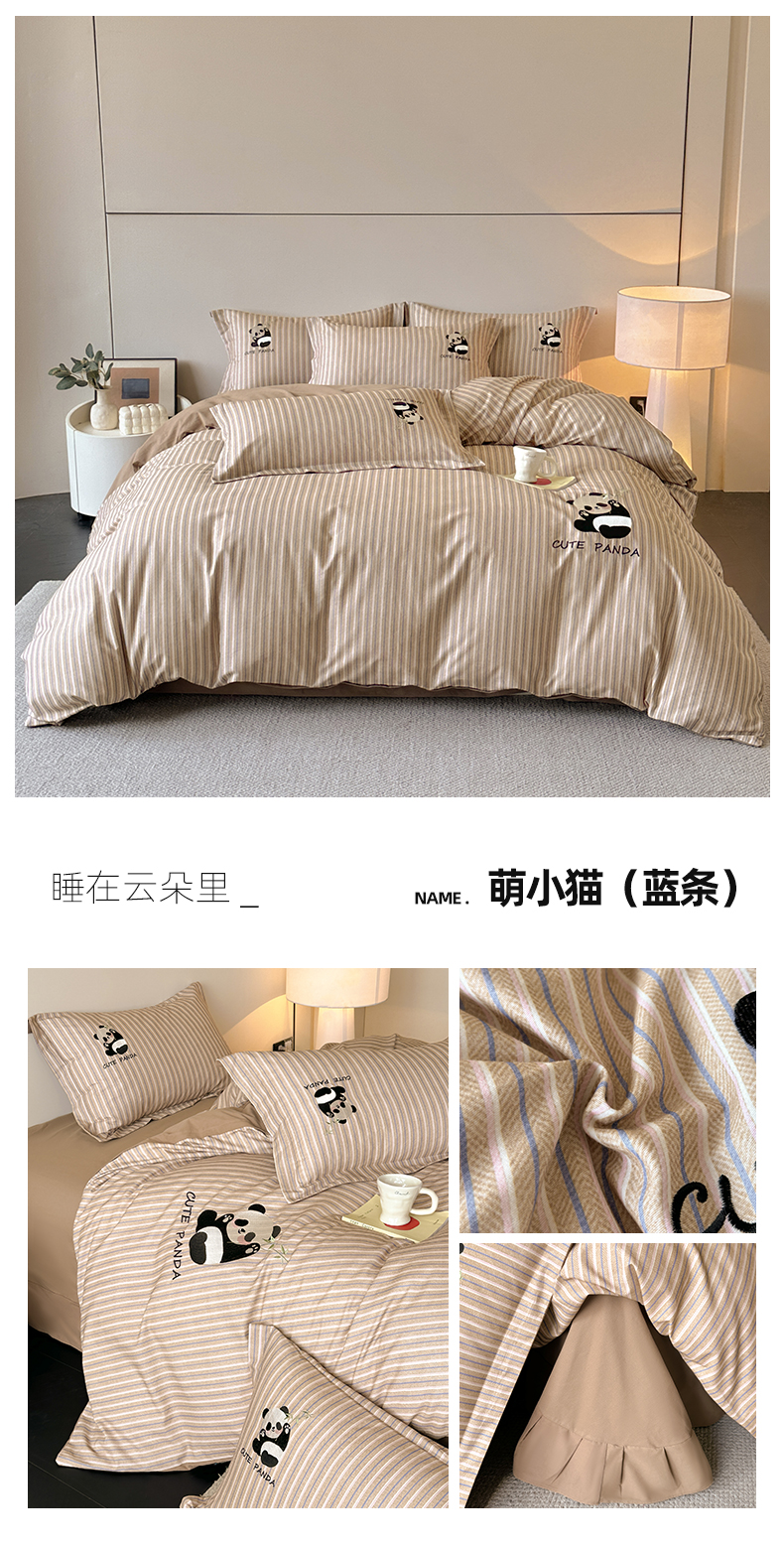 当前位置: 91家纺网 > 商品网购 > 床品套件 > 四件套 > 全棉普通四件套 > 帛美家纺 2025年新款全棉纯棉加厚绣花款磨毛四件套-萌小猫系列 萌小猫(咖条)