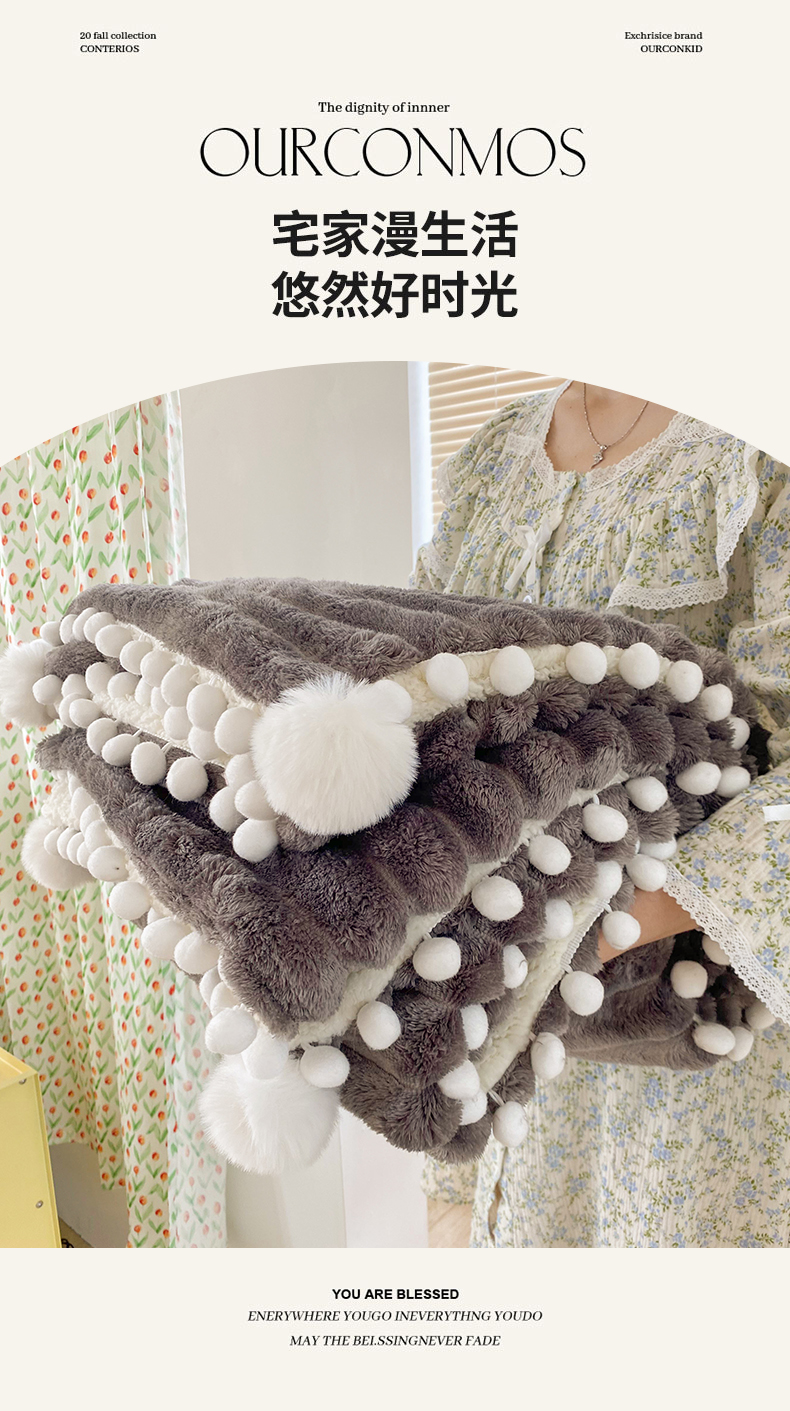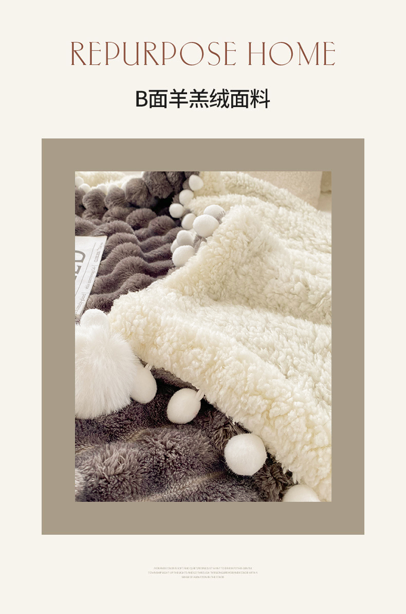 (总)潮邦创意家居 2025新款 奶芙绒流苏球毛毯,薄荷绿,焦糖咖,绵云白,浅蓝灰,深暮灰,甜莓粉