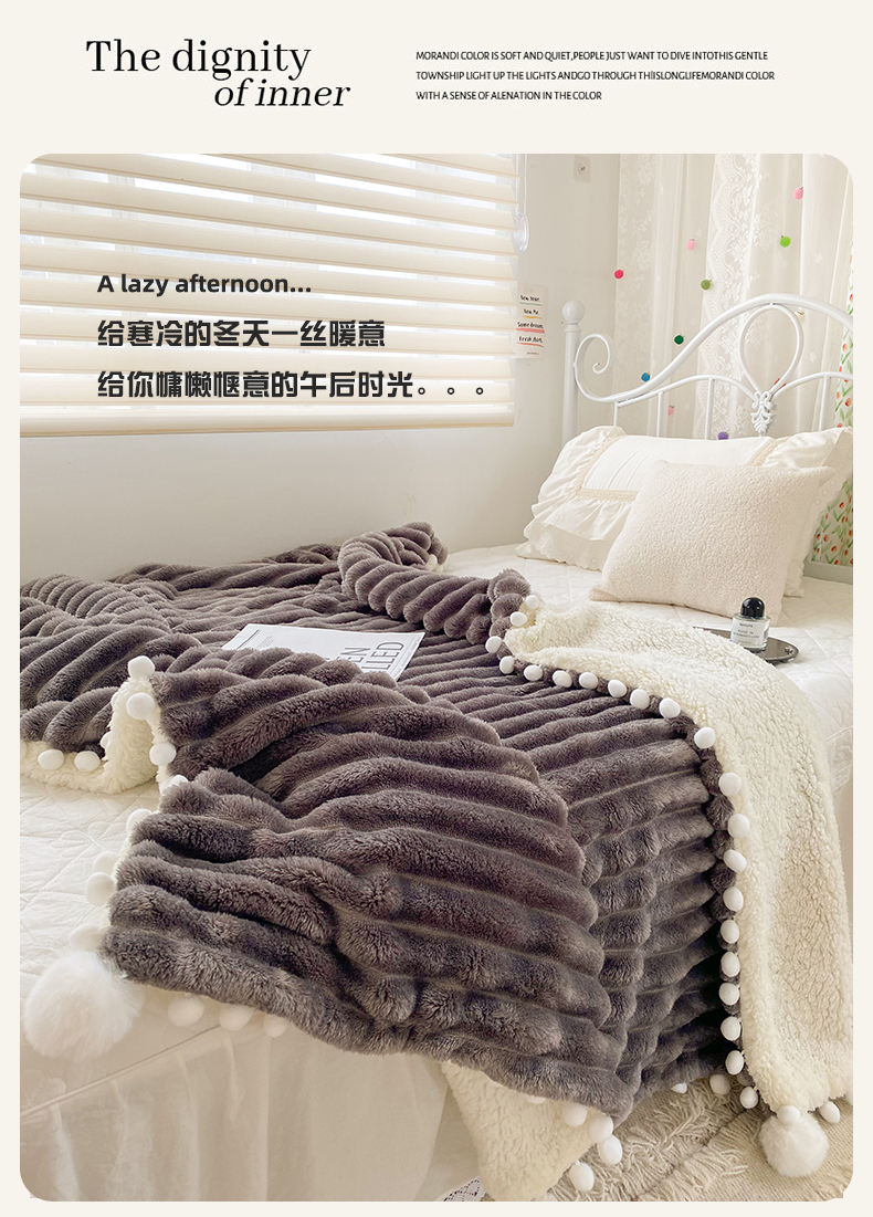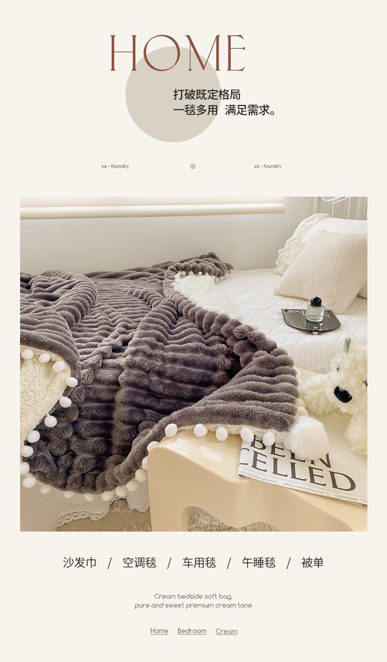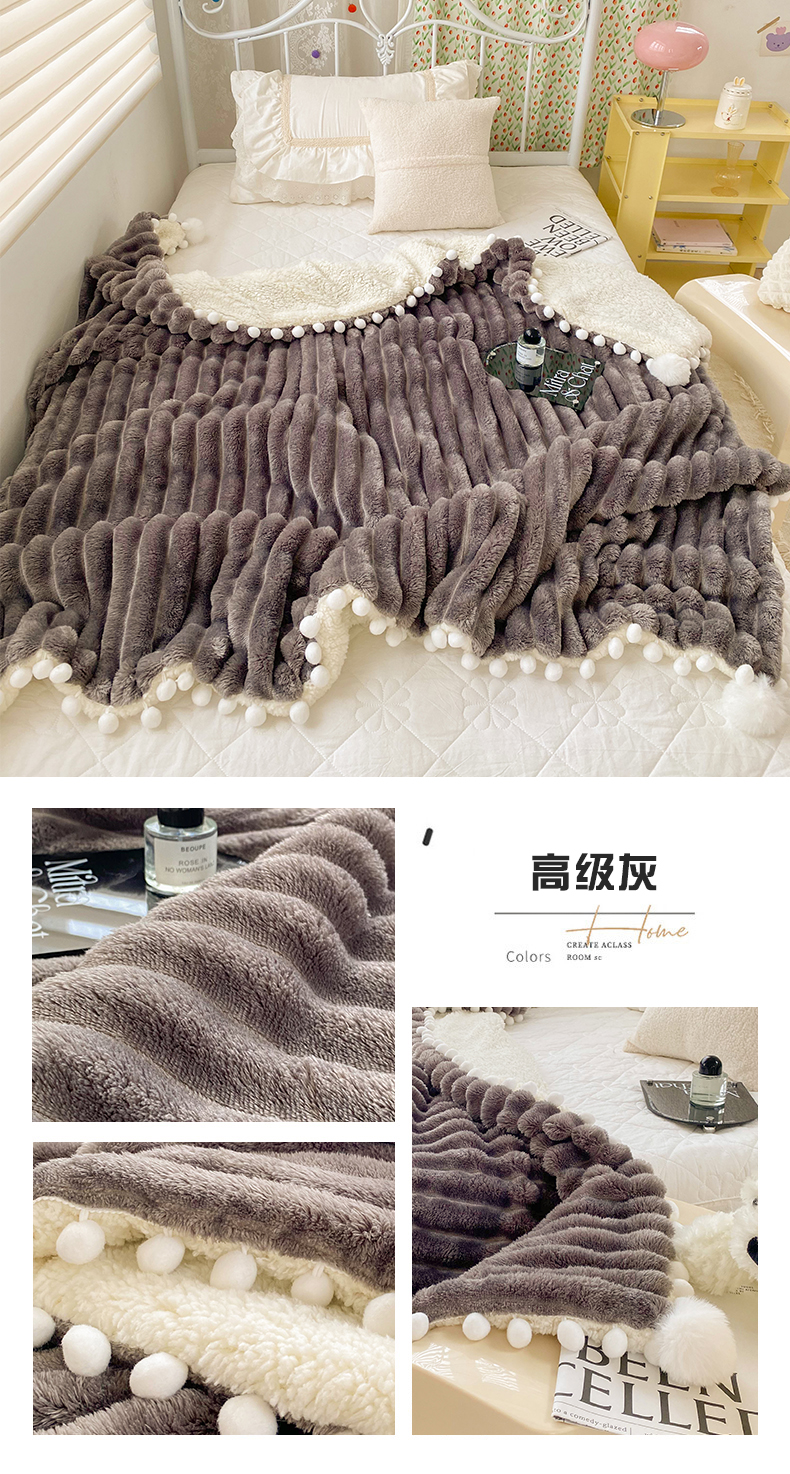 潮邦创意家居 2025新款宽条球毯大抽条配羊羔绒立体工艺绒毯毛毯盖毯 宽条球毯高级灰