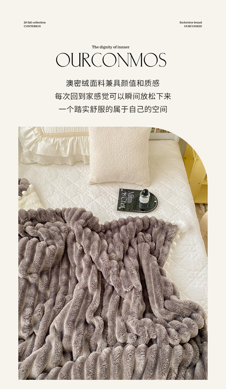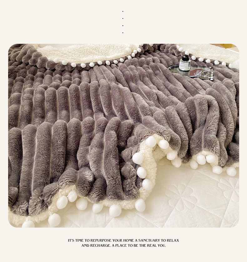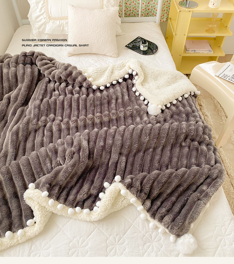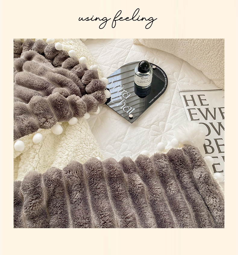 潮邦创意家居 2025新款宽条球毯大抽条配羊羔绒立体工艺绒毯毛毯盖毯 宽条球毯高级灰