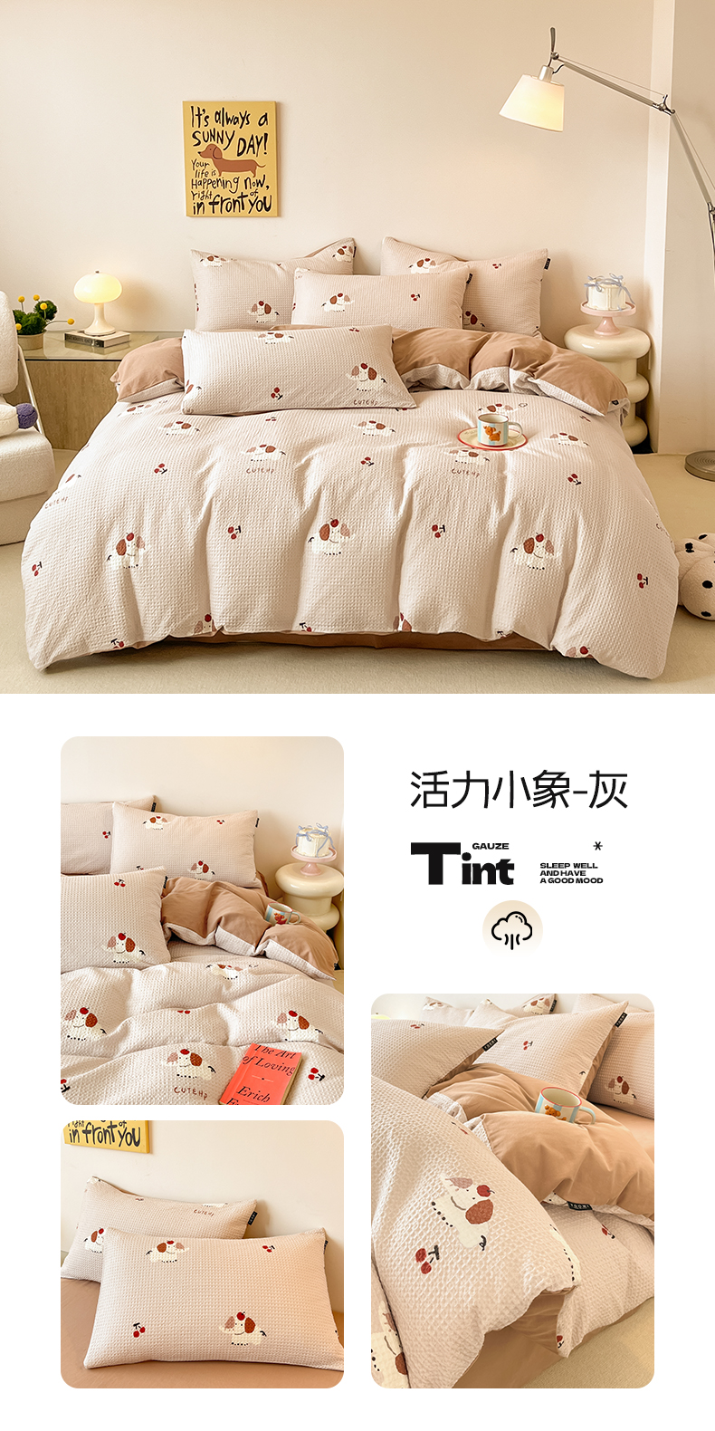 (总)涵宸家纺 2025新款全棉提花四件套-暮云栖,活力小象-灰,克洛莉-紫,萌动时光-咖,莫妮卡-米,瑞乐-棕,圆圆胖哒-米