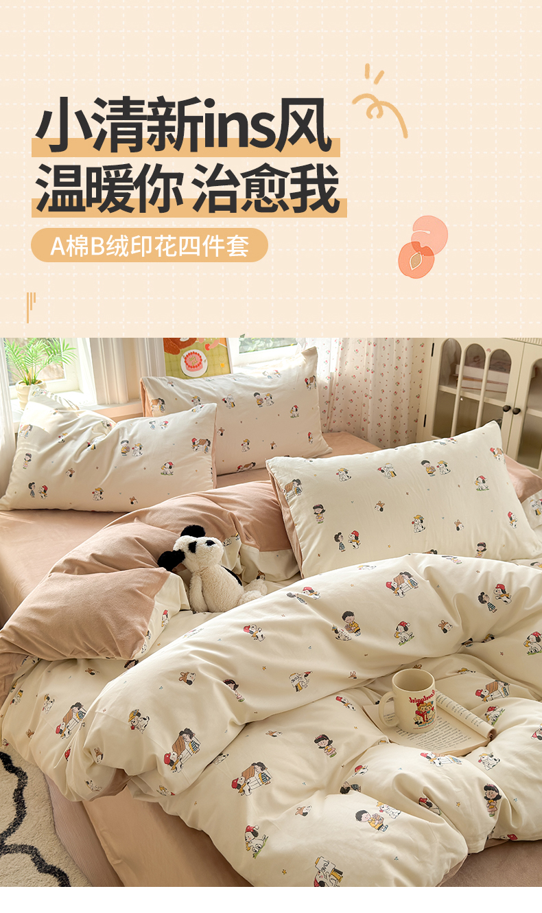 当前位置: 91家纺网 > 商品网购 > 床品套件 > 四件套 > 全棉普通四件套 > 清雅福 2025秋冬新品全棉印花棉加绒四件套系列 棉绒-派克