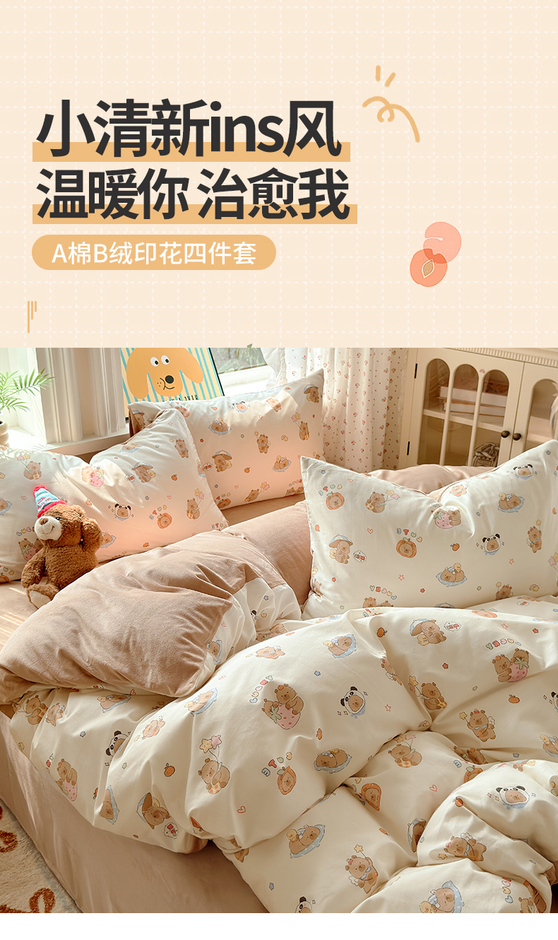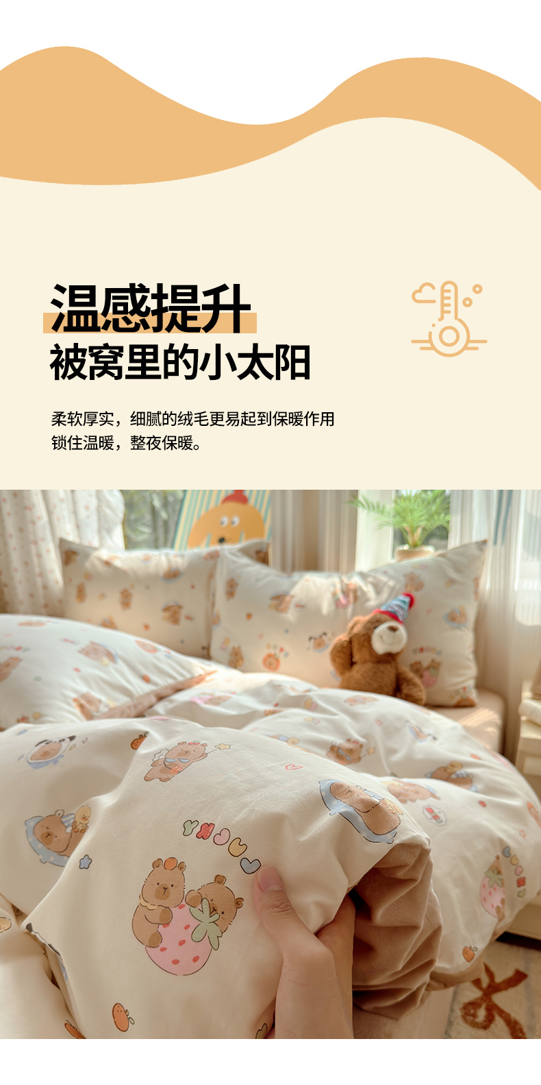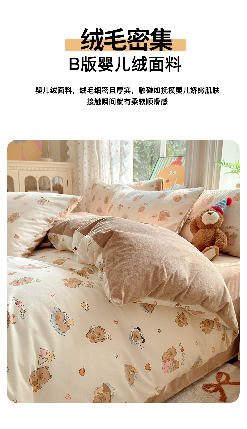 当前位置: 91家纺网 > 商品网购 > 床品套件 > 四件套 > 全棉普通四件套 > 清雅福 2025秋冬新品全棉印花棉加绒四件套系列 棉绒-熊猫卡皮