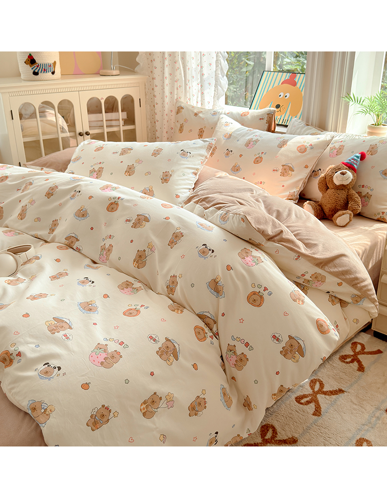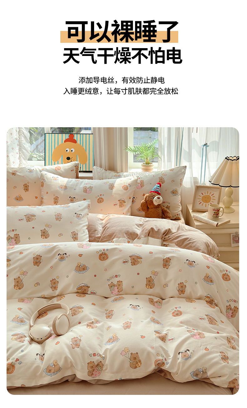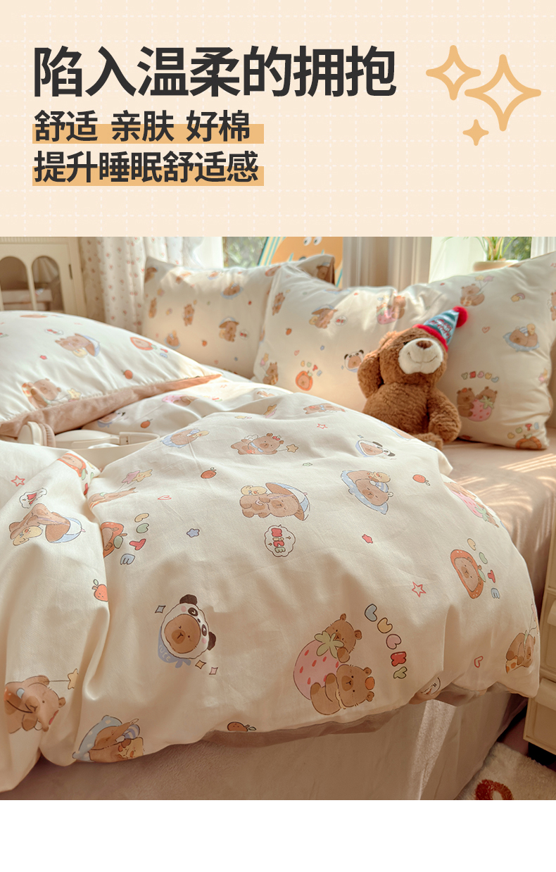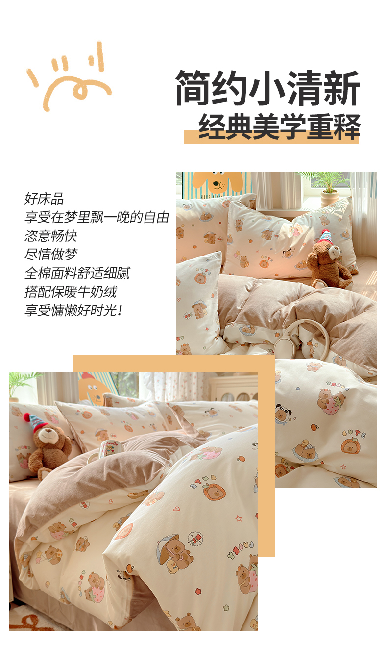当前位置: 91家纺网 > 商品网购 > 床品套件 > 四件套 > 全棉普通四件套 > 清雅福 2025秋冬新品全棉印花棉加绒四件套系列 棉绒-熊猫卡皮
