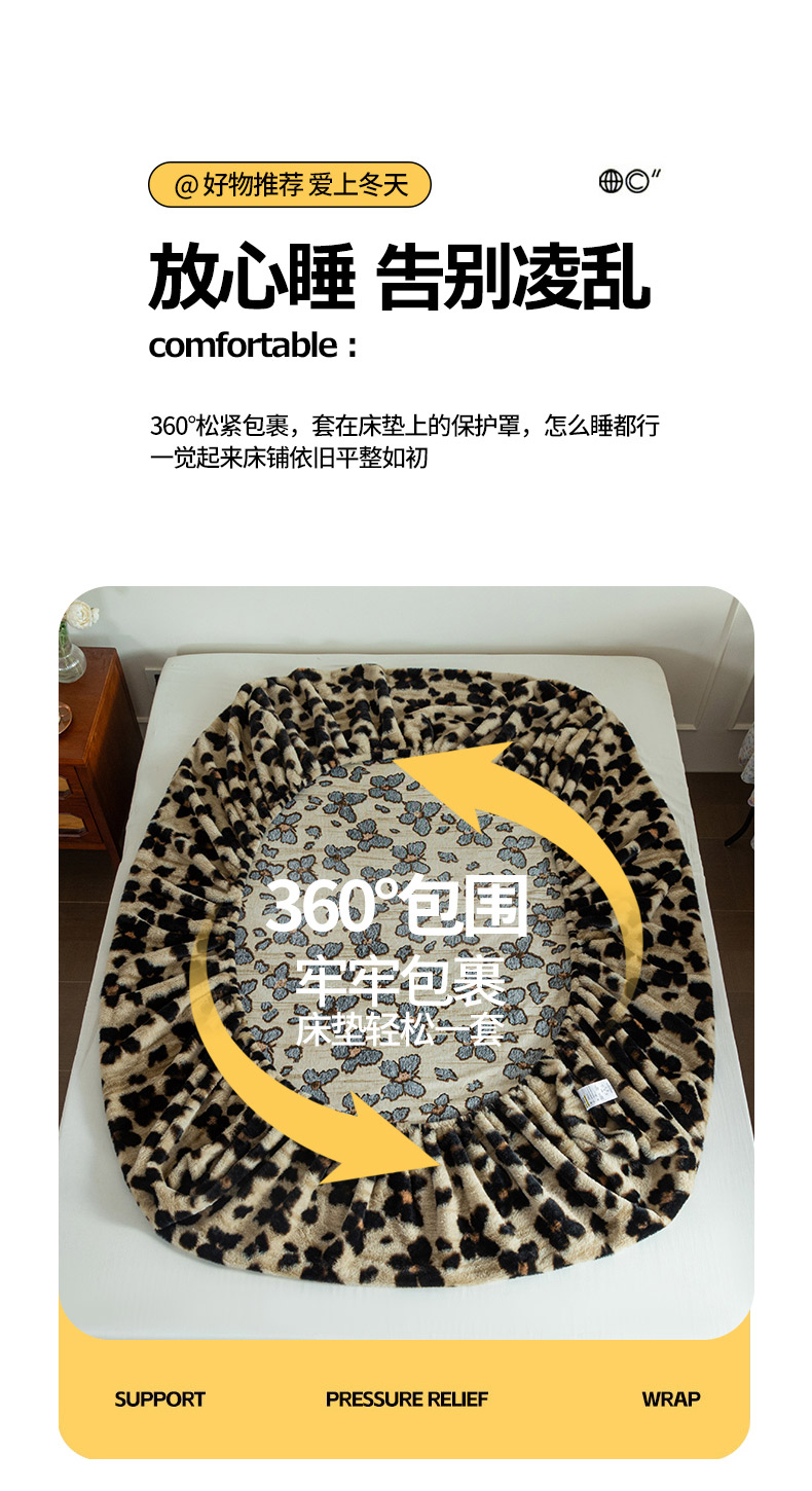 库里梦家纺 2025直播网红爆款加厚兔兔绒床笠单件床笠单品床笠枕套三件套跨境床笠 黑玫瑰-咖
