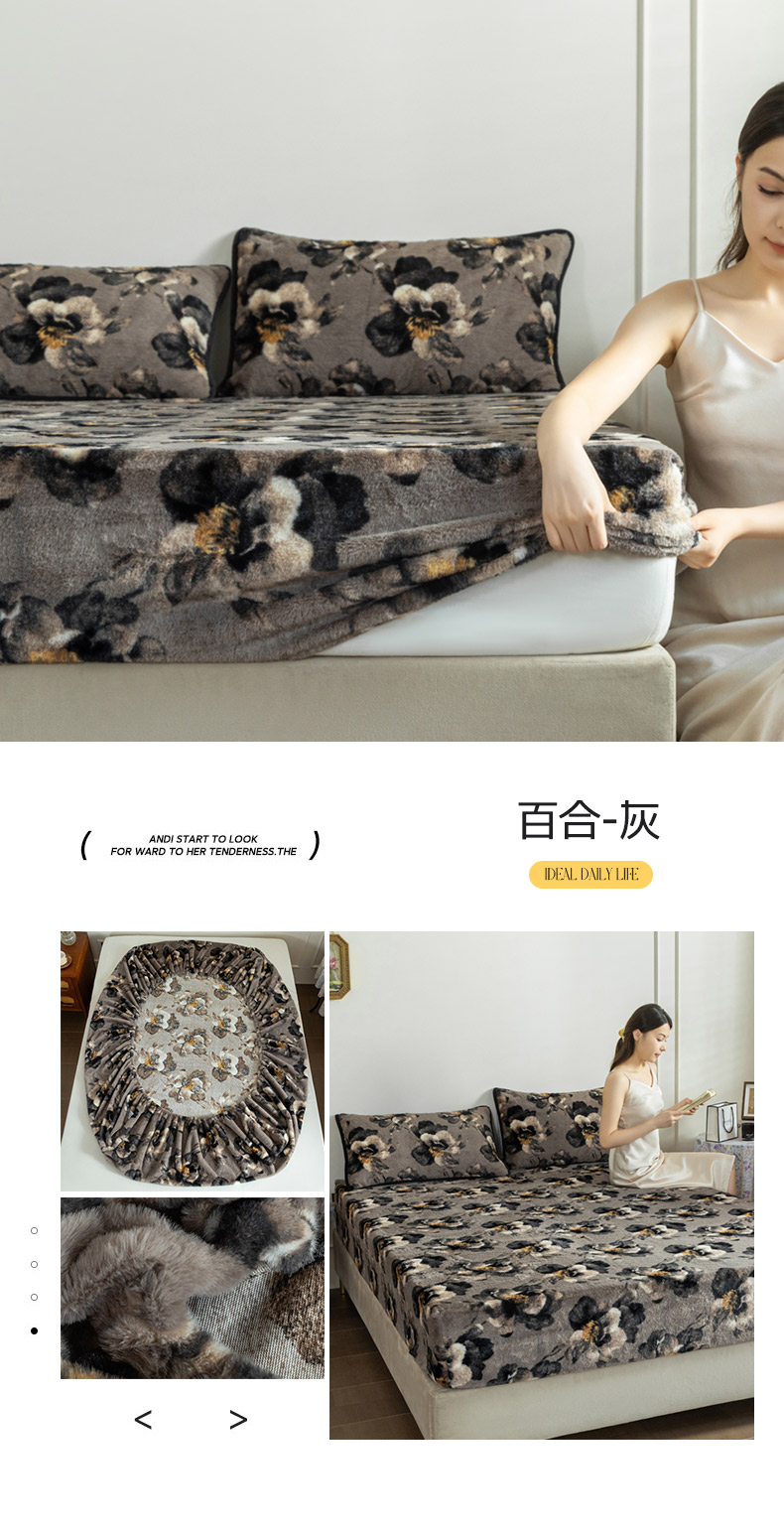 商品名称:库里梦家纺 2025直播网红爆款加厚兔兔绒床笠单件床笠单品床笠枕套三件套跨境床笠 黑玫瑰-咖