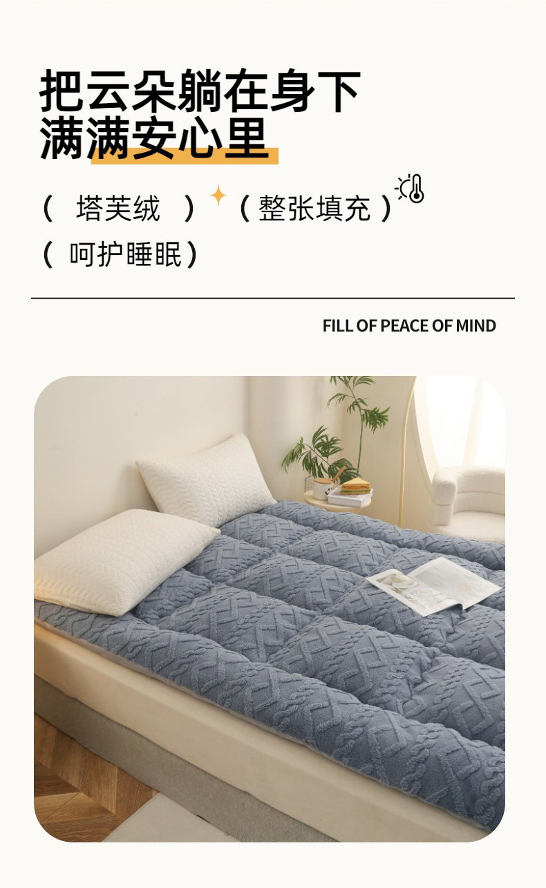 (总)承柔家纺 2025年新款加厚塔芙绒床垫床褥垫子,豆沙,灰色,绿色