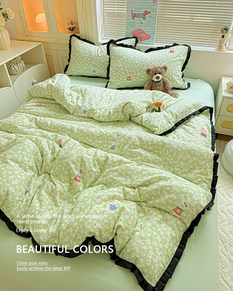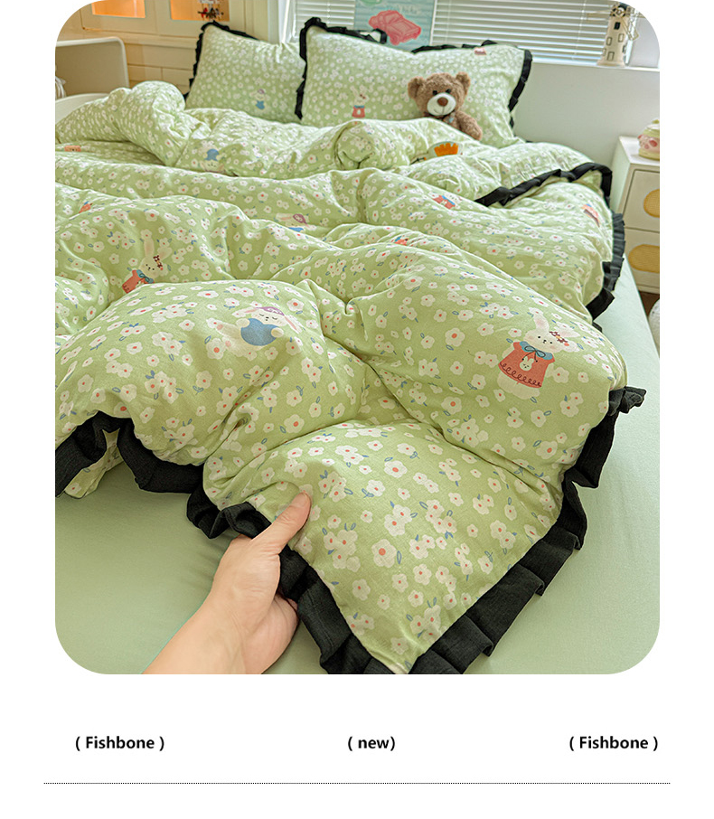 当前位置: 91家纺网 > 商品网购 > 床品套件 > 四件套 > 其它四件套 > 喜颜 2025新款超柔水洗双层纱皱皱纱花边四件套 兔软软-绿