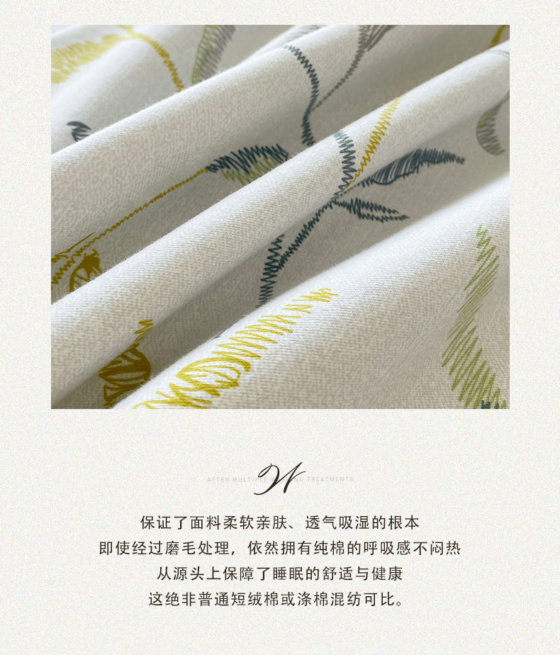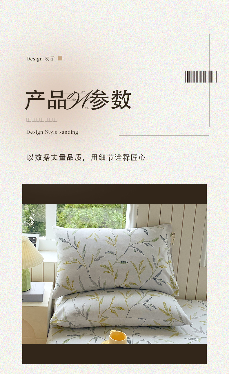 商品名称:春皖家纺 2025新款原棉磨毛单枕套 枕套单件-风格一 叶晴川