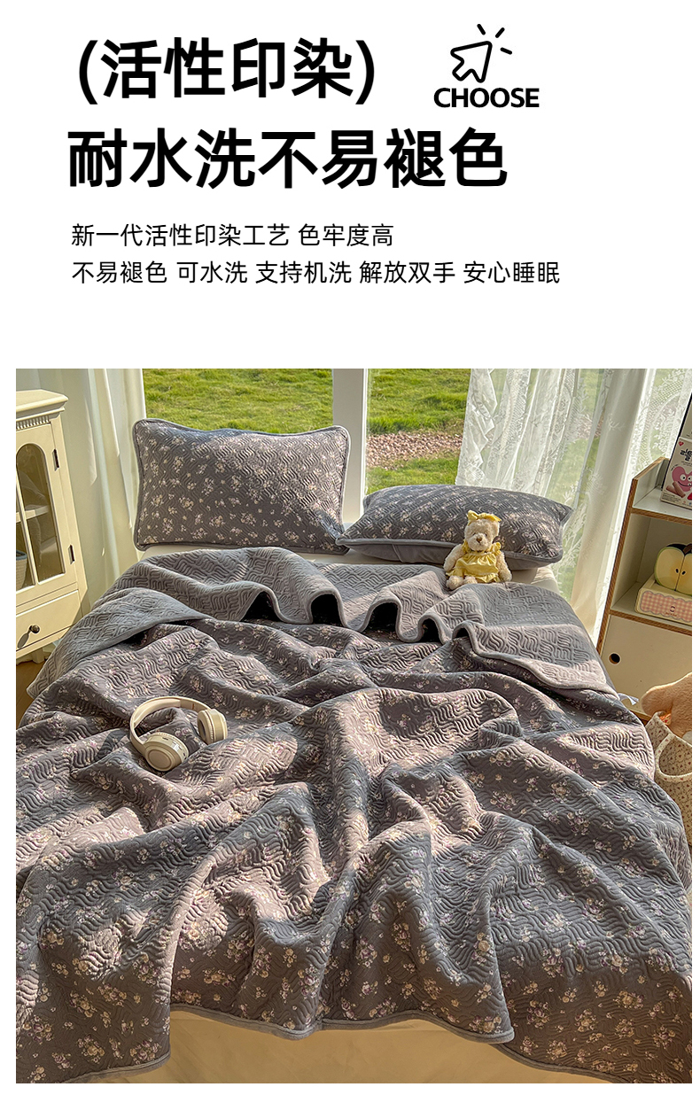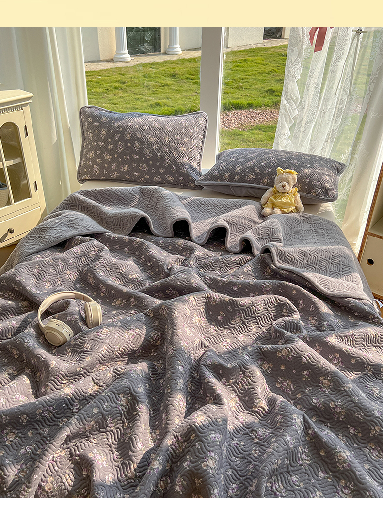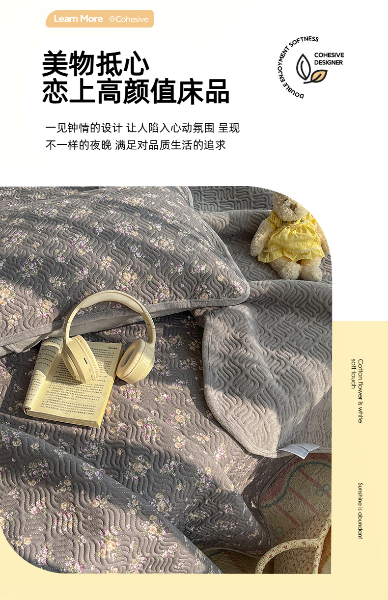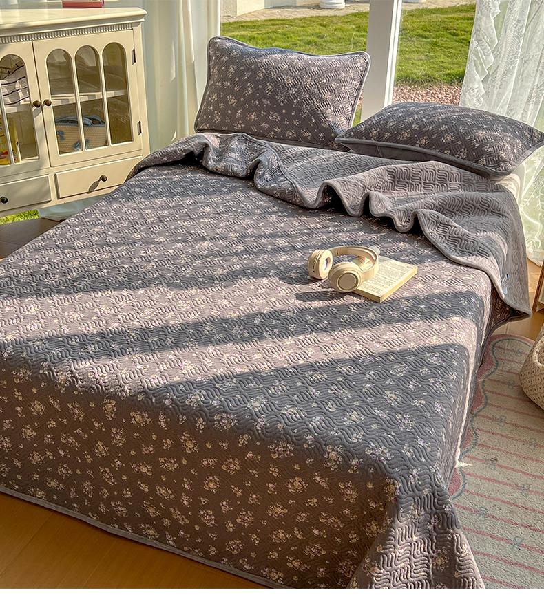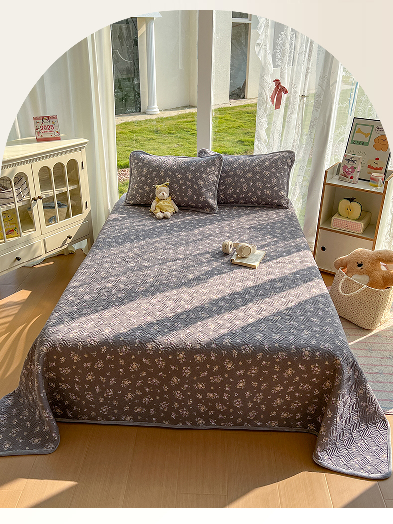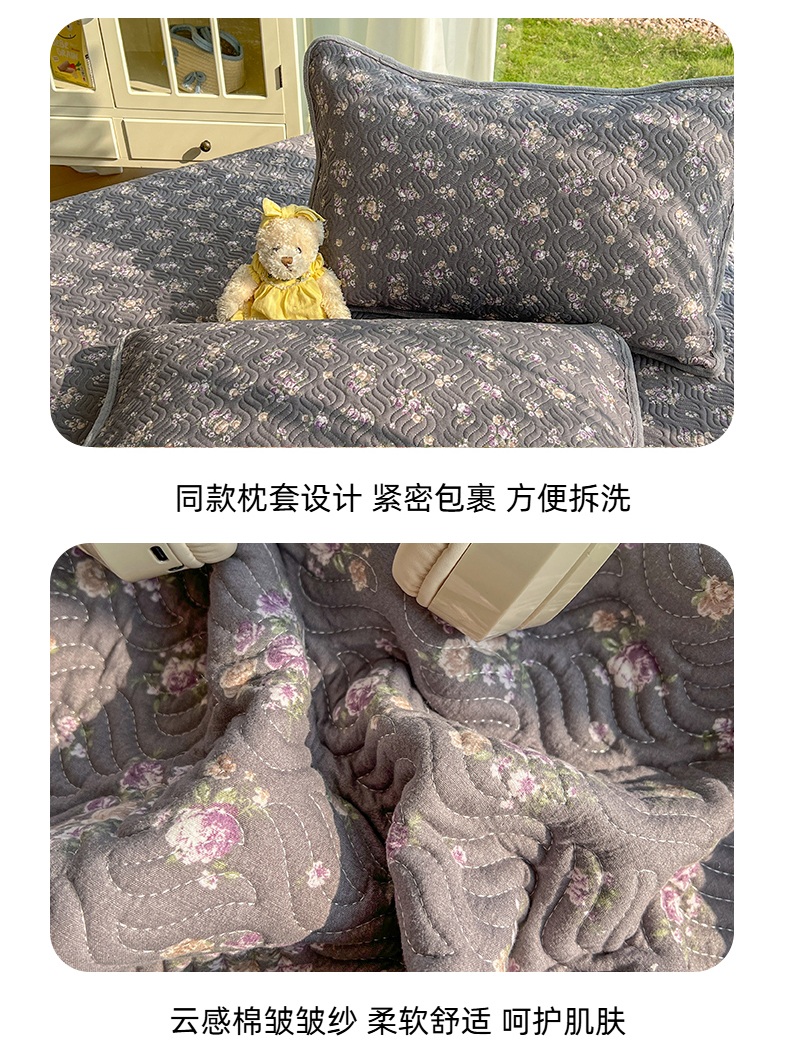 • 91家纺网 家纺一手货源 找家纺 春光里 2025新款A版云感棉皱皱纱B版牛奶绒夹棉床盖三件套 复古小碎花