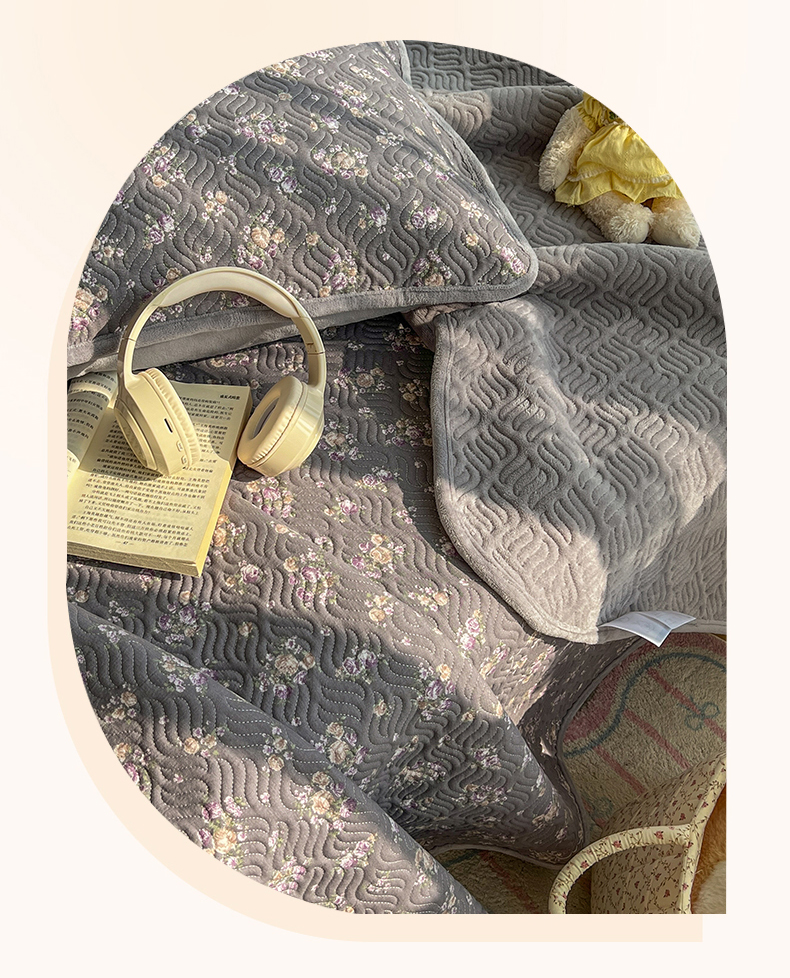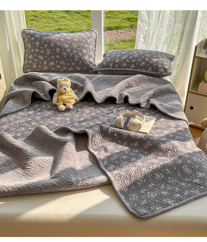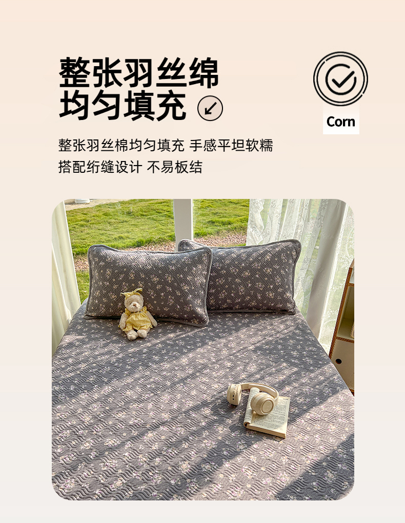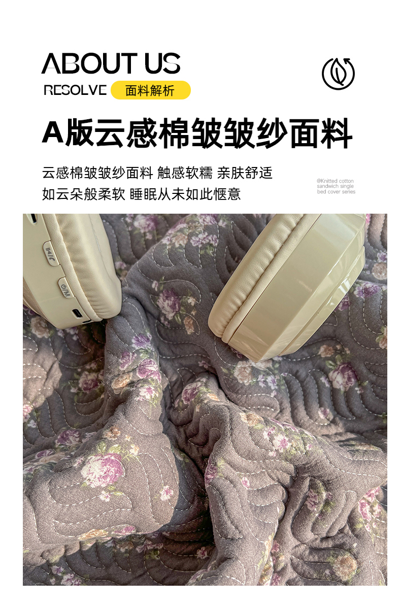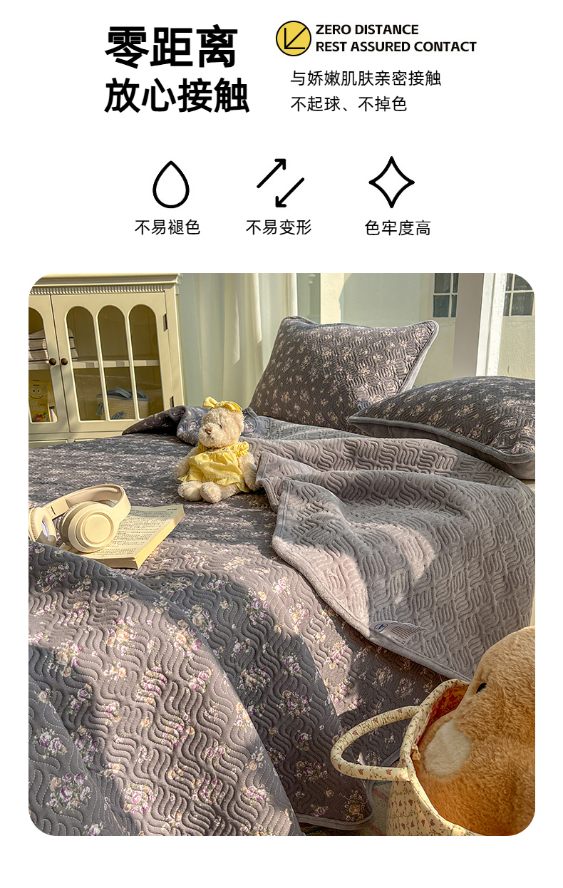 • 91家纺网 家纺一手货源 找家纺 春光里 2025新款A版云感棉皱皱纱B版牛奶绒夹棉床盖三件套 复古小碎花