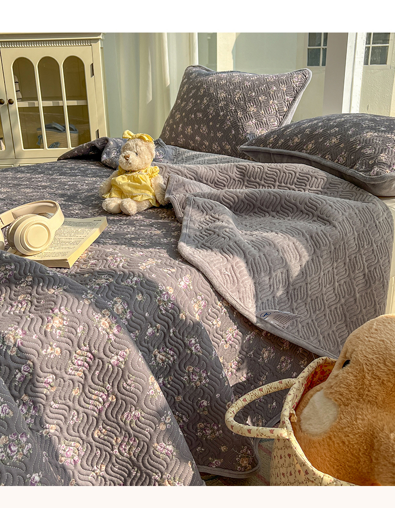 春光里 2025新款A版云感棉皱皱纱B版牛奶绒夹棉床盖三件套 复古小碎花