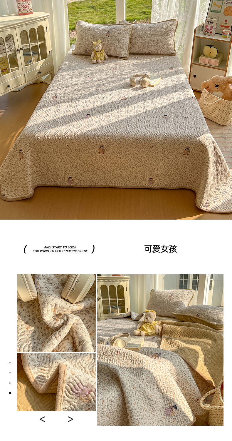 (总)春光里 2025新款A版云感棉皱皱纱B版牛奶绒夹棉床盖三件套,爱丽丝花园,快乐女孩,浪漫蝴蝶结,卡皮巴拉,梦境花园,波点米灰,赫拉-蓝,复古小碎花,梦莎,樱桃点点