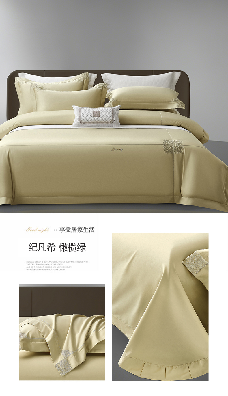 (总)诗黛尔 2025秋冬新款长绒棉刺绣香缇卡系列四件套,卡其色,落樱粉,南瓜橘,绅士灰,水晶兰,油果绿