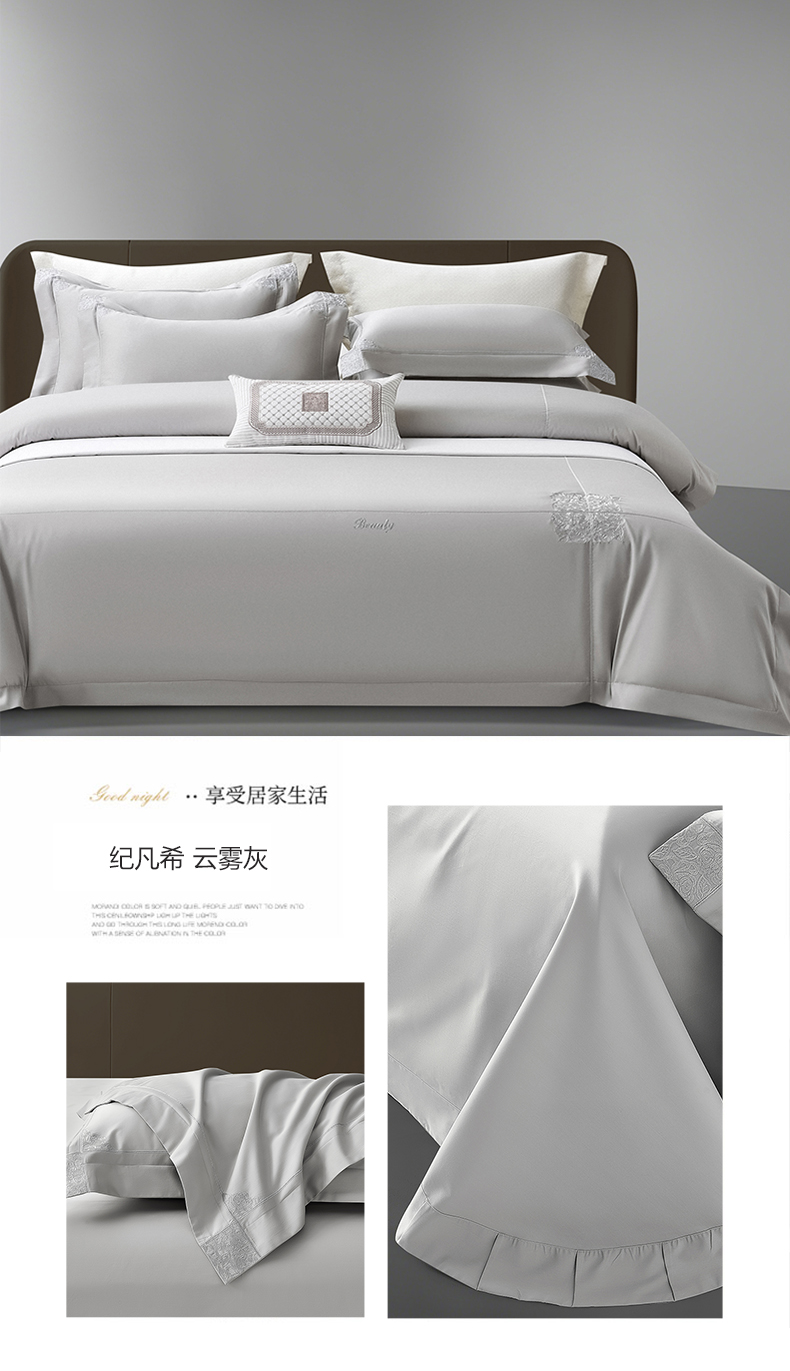 诗黛尔 2026春夏新款长绒棉刺绣纪凡希系列四件套 纪凡希 云雾灰