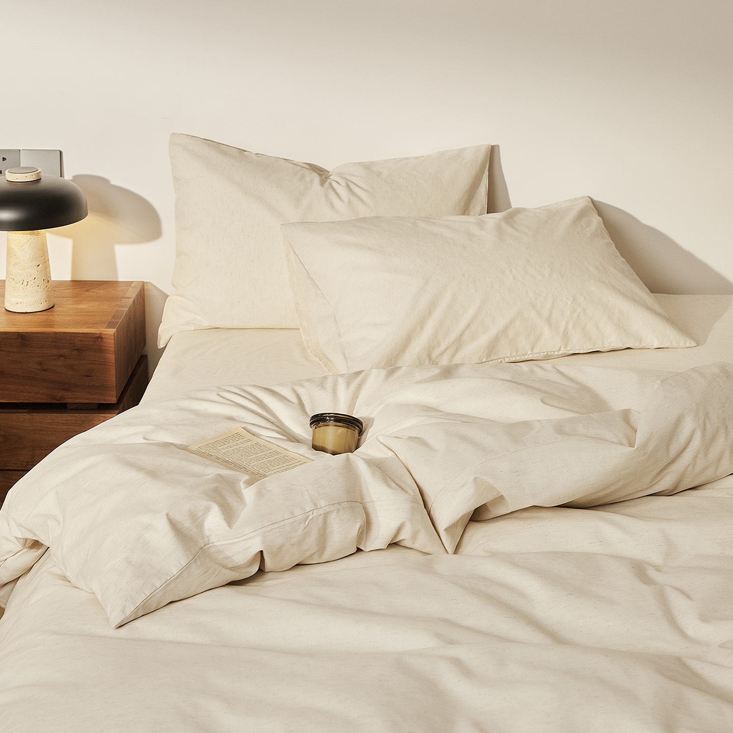 (总)原研家居 2025新款棉麻色织提花系列四件套,旧布承尘,空寂余温,枯荣共生,素麻黛月
