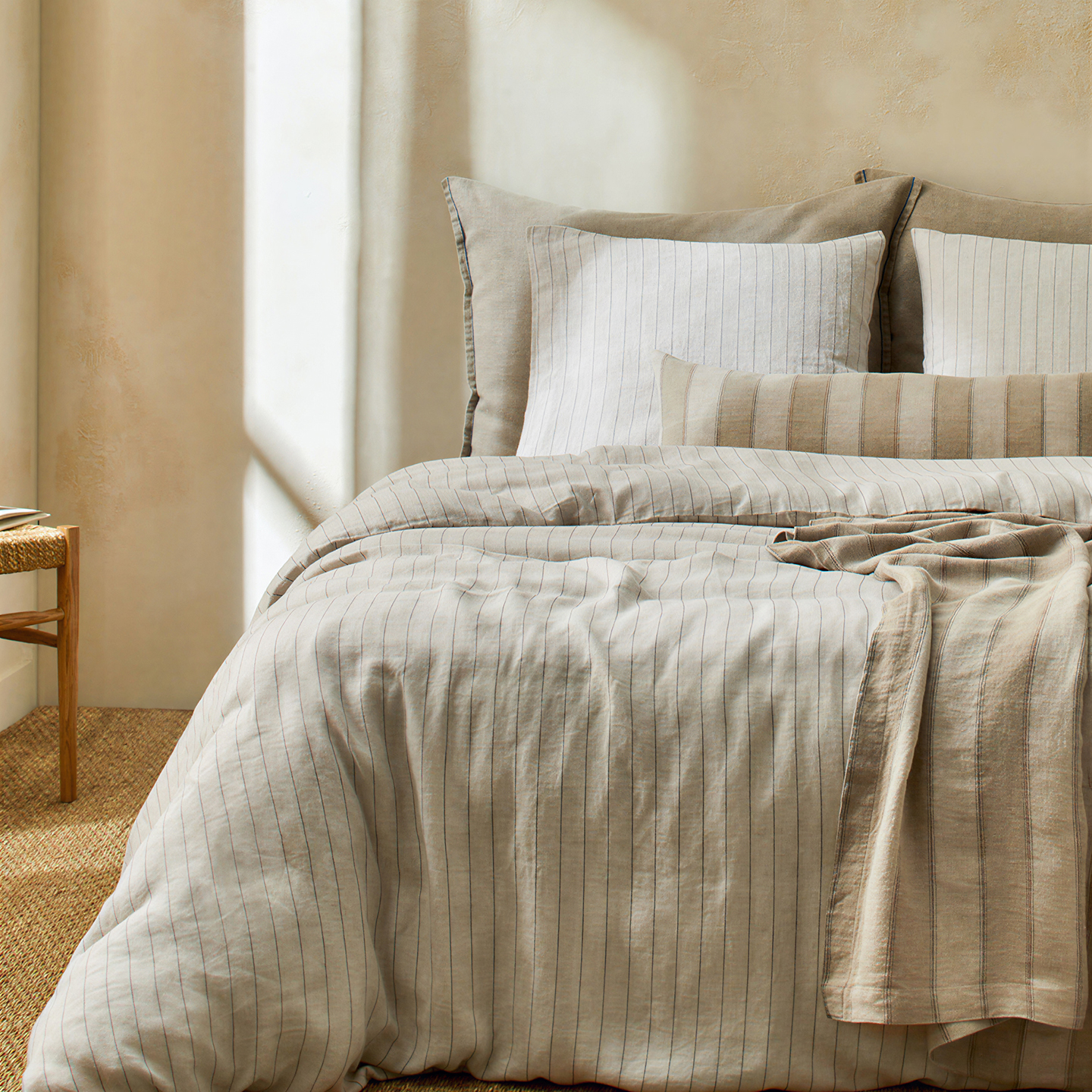 (总)原研家居 2025新款棉麻色织条纹系列四件套,棉麻黄条,棉麻绿条,棉麻粉条