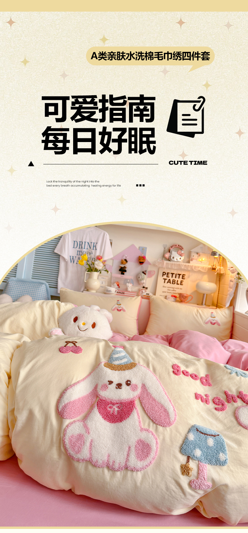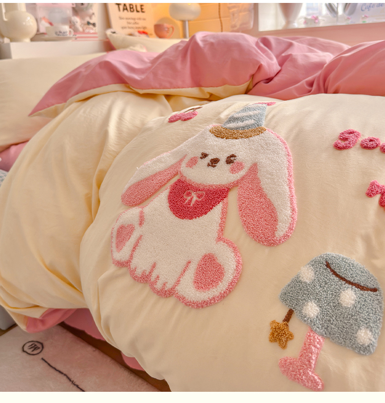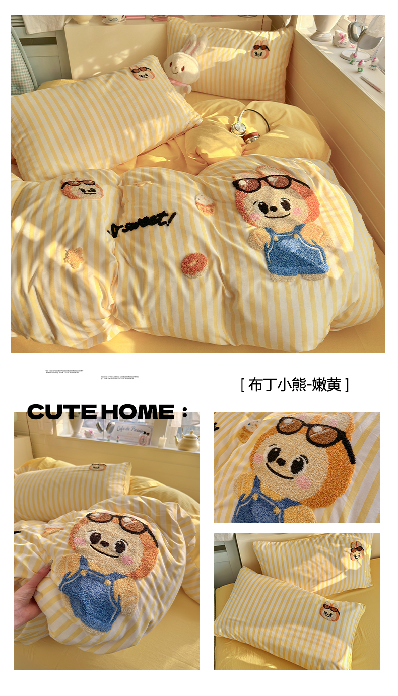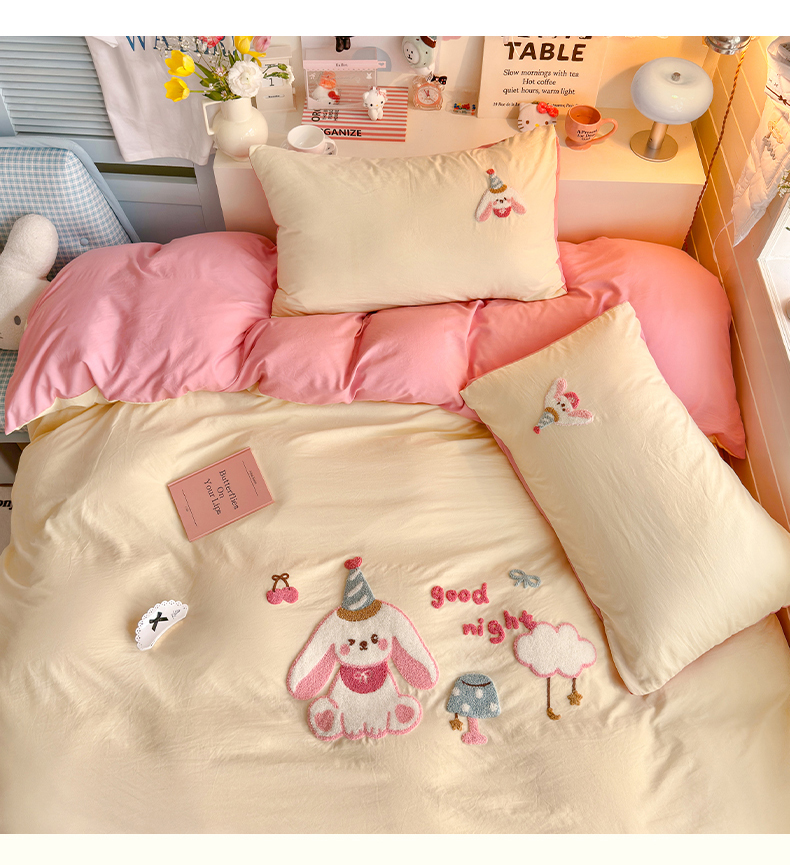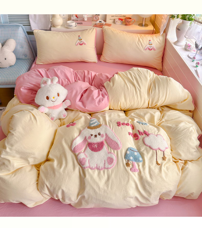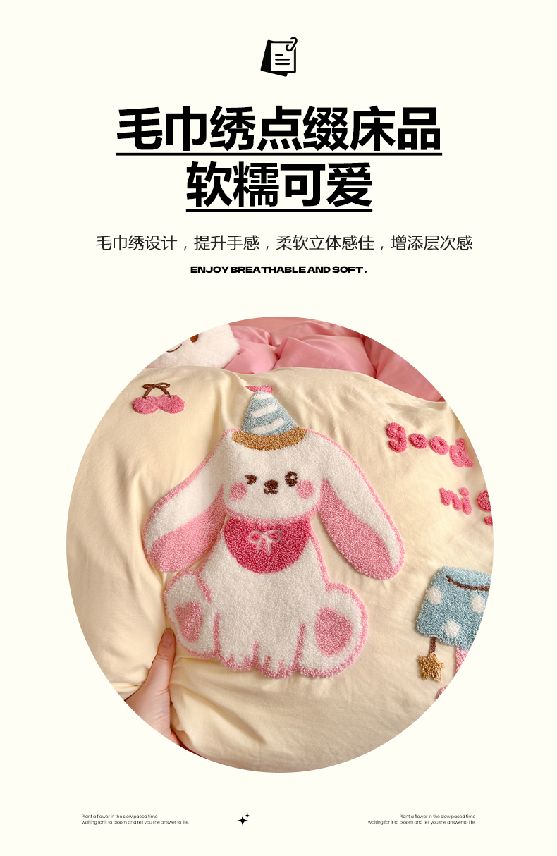 当前位置: 91家纺网 > 商品网购 > 床品套件 > 四件套 > 水洗棉四件套 > 优卡迪家纺馆 2026新款A类亲肤水洗棉毛巾绣系列四件套下载文件包含买家秀 雪兔精灵-奶黄