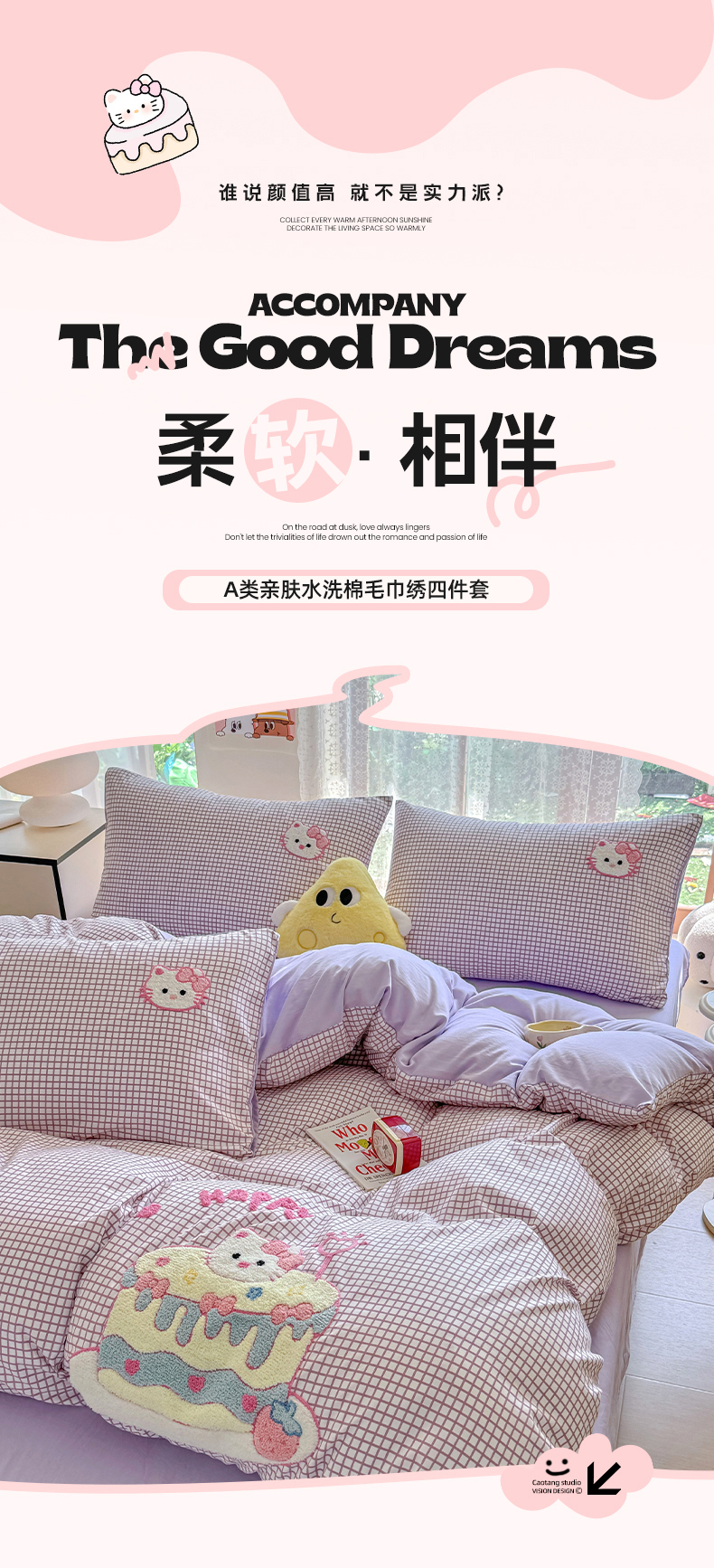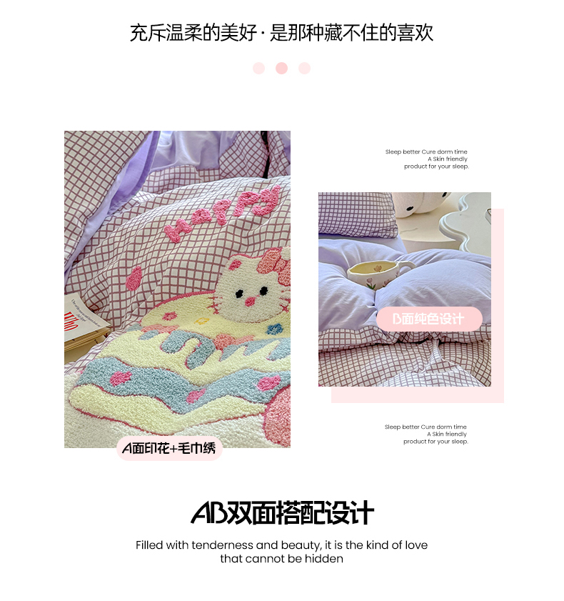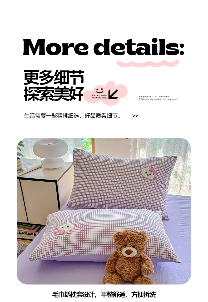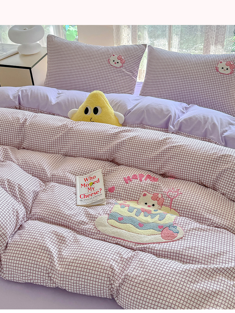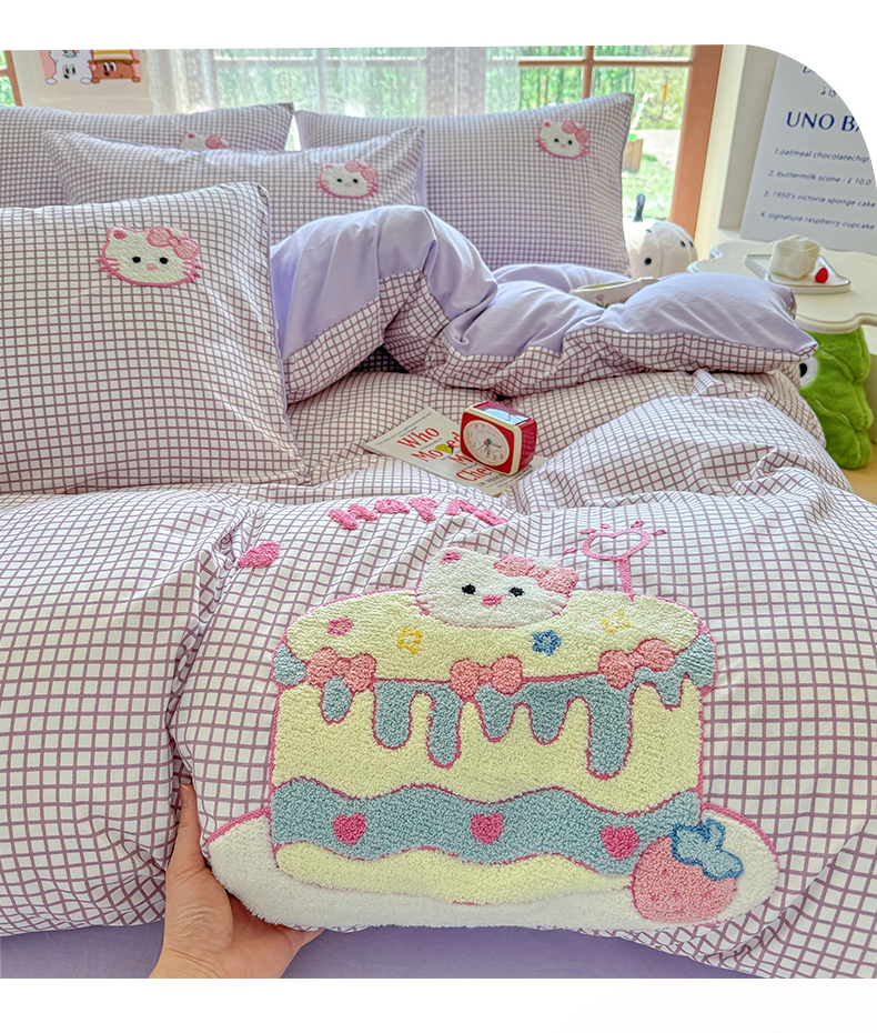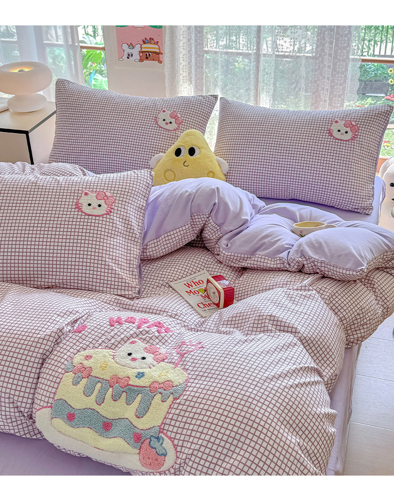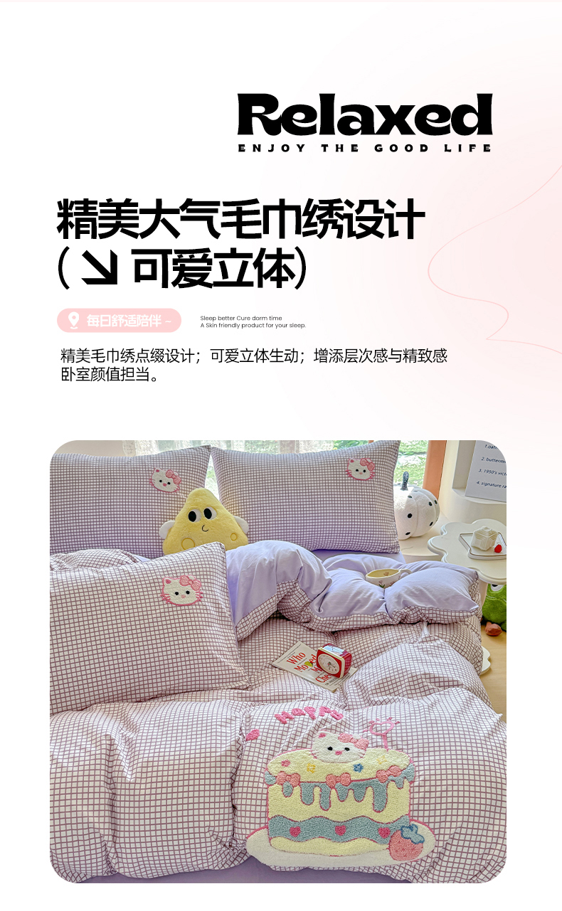当前位置: 91家纺网 > 商品网购 > 床品套件 > 四件套 > 水洗棉四件套 > 优卡迪家纺馆 2026新款A类亲肤水洗棉毛巾绣系列四件套下载文件包含买家秀 蛋糕猫-布丁紫
