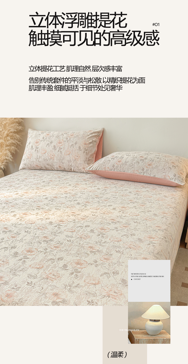 (总)涵宸家纺 2026新款全棉提花里拉系列四件套,柏拉-白,花夕-粉,凌维-灰,凌维-绿,律动格韵,千喜格,沁语-粉金,沁语-奶白,沁语-紫,山慕色,甜心漾,微芒,雾絮-灰,雾絮-奶白,毓影-豆沙,毓影-奶白,云暖-粉,云暖-紫,织羽