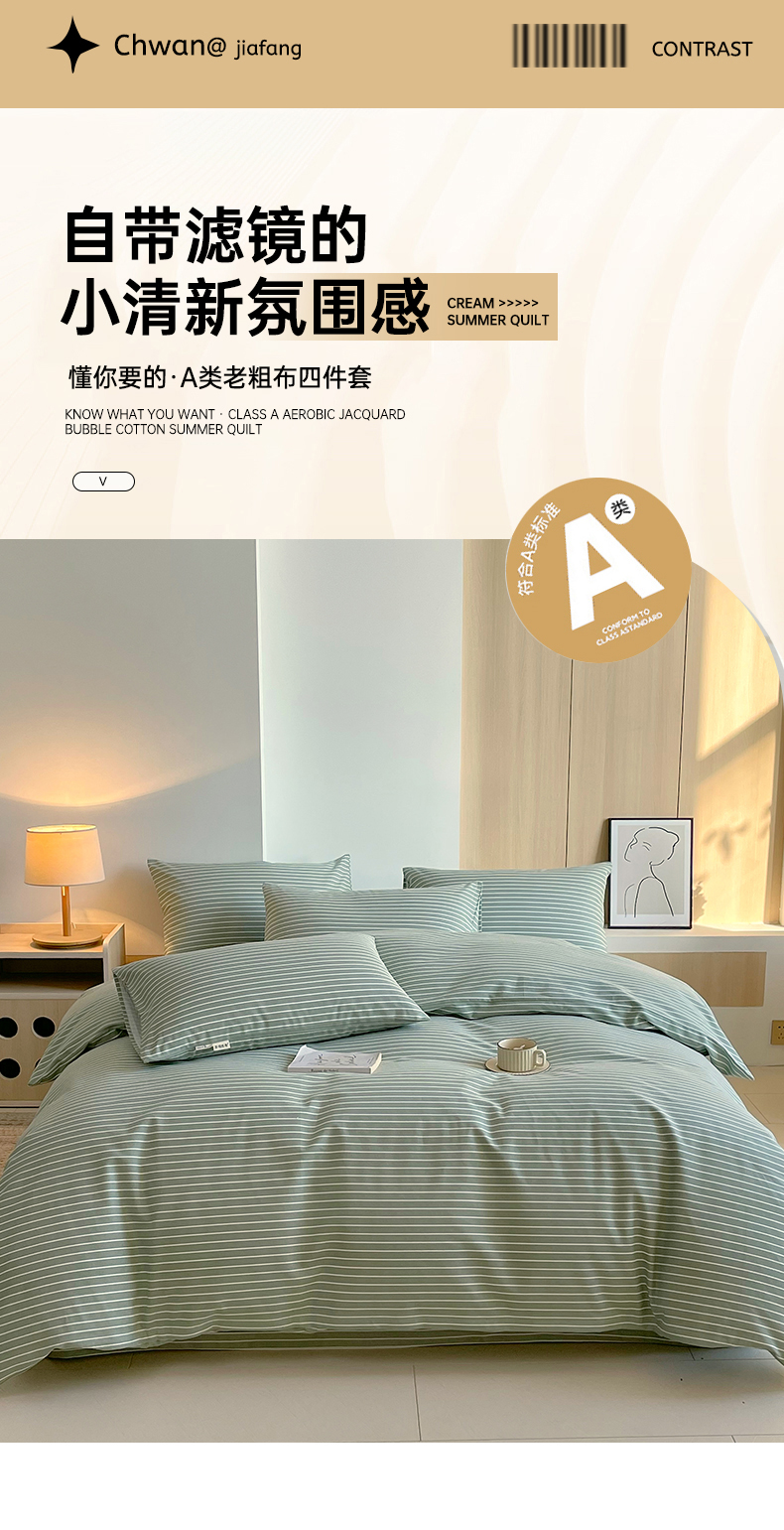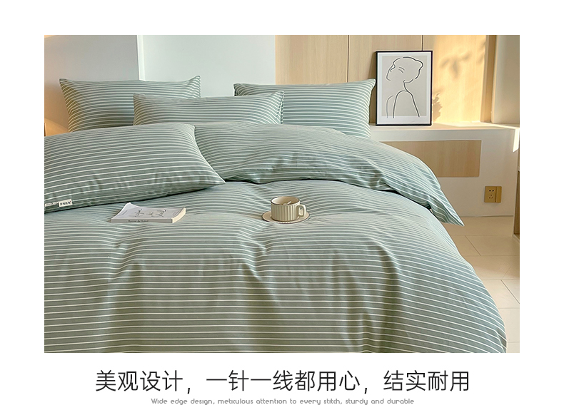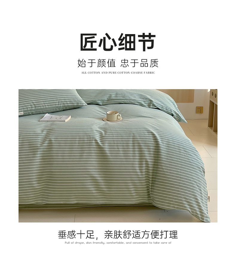 商品名称:春皖家纺 2026高端直播热卖非遗A类全棉老粗布加厚床单款三件套-普通款四件套 细川绿