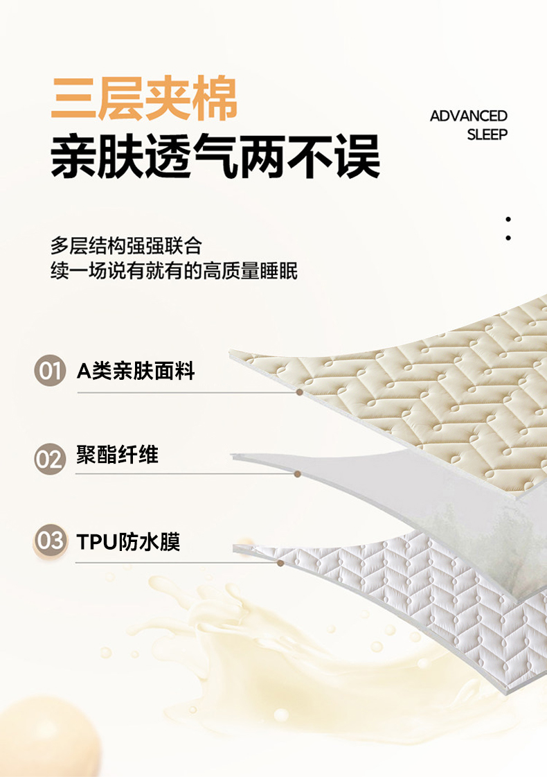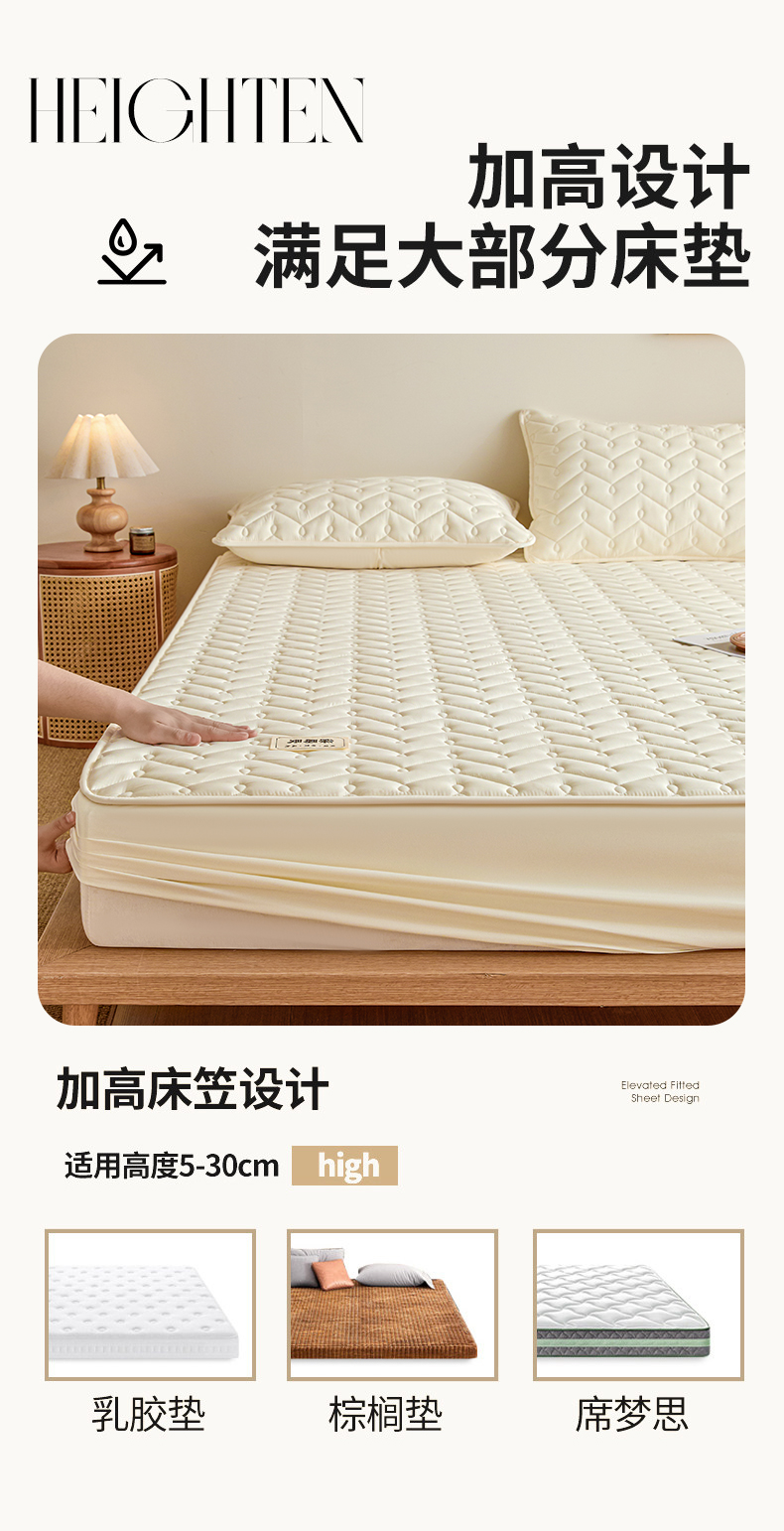 九亭家纺 2026新款A类深睡眠防水夹棉床笠 深睡眠-奶昔白