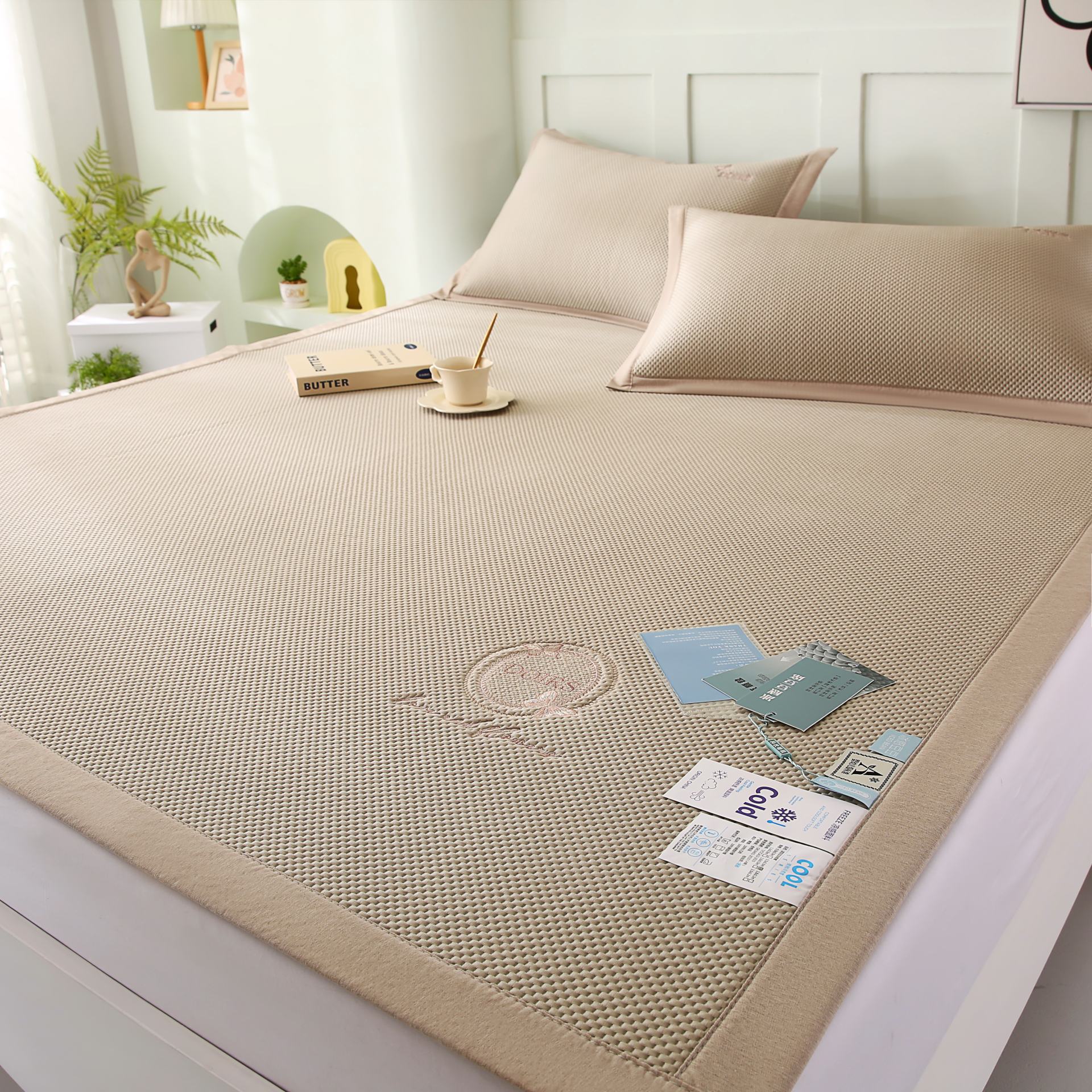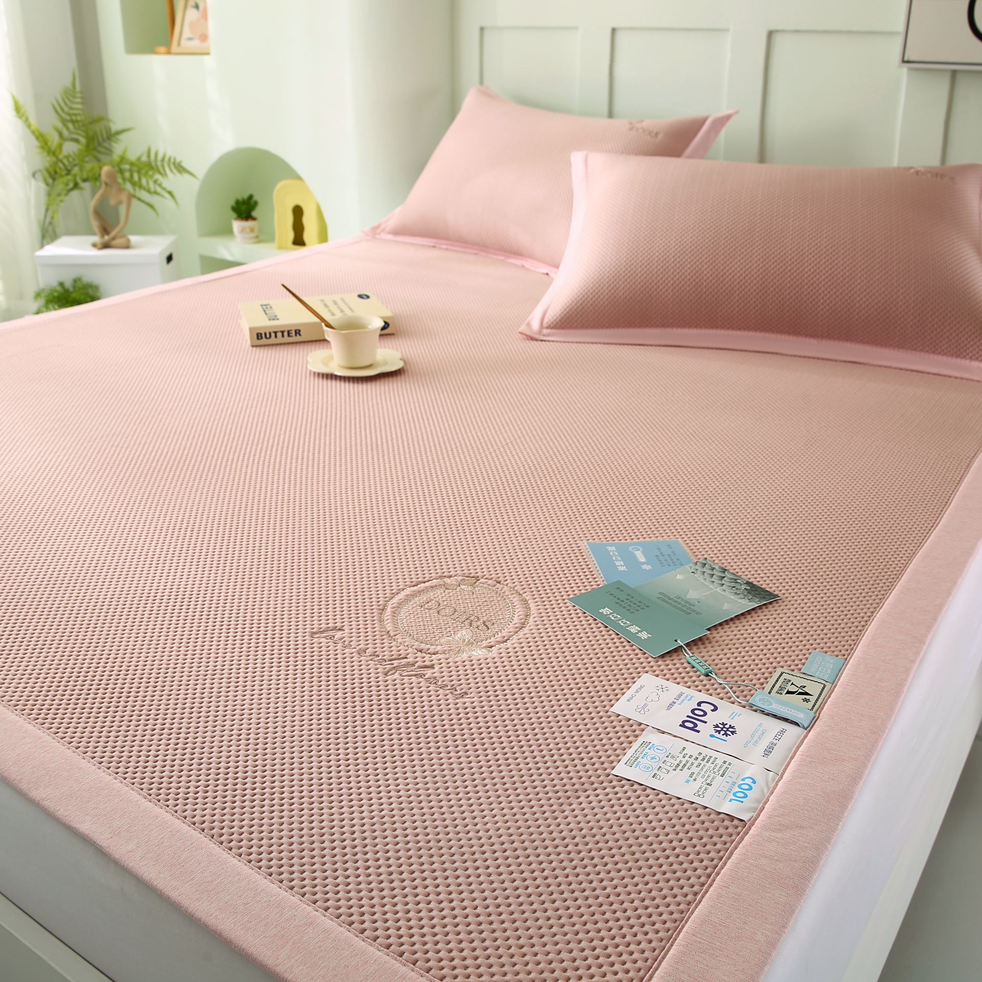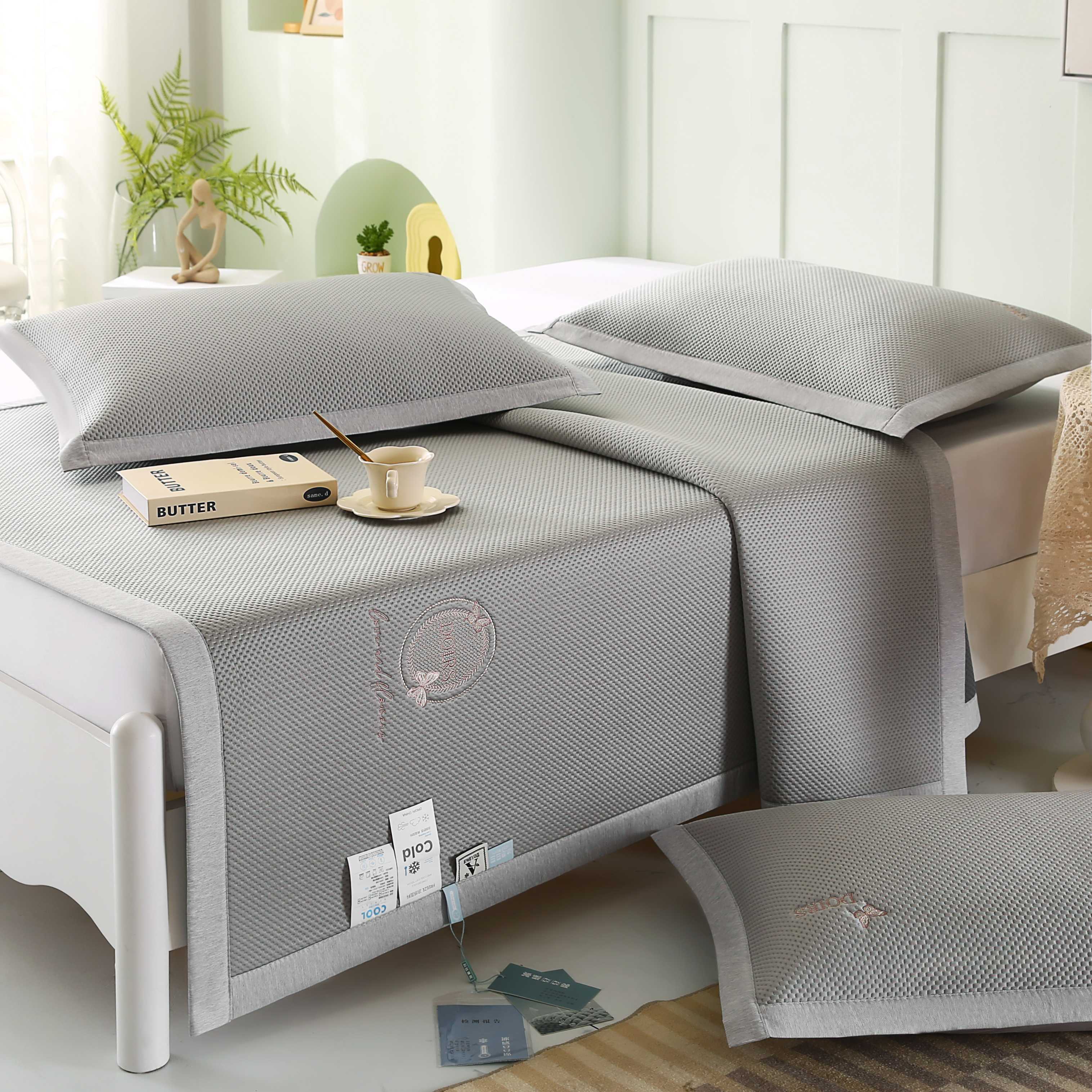 (总)席匠 2026新款直角包边绣花玫瑰床笠款凉席席子凉席三件套,粉色,灰色,蓝色,绿色
