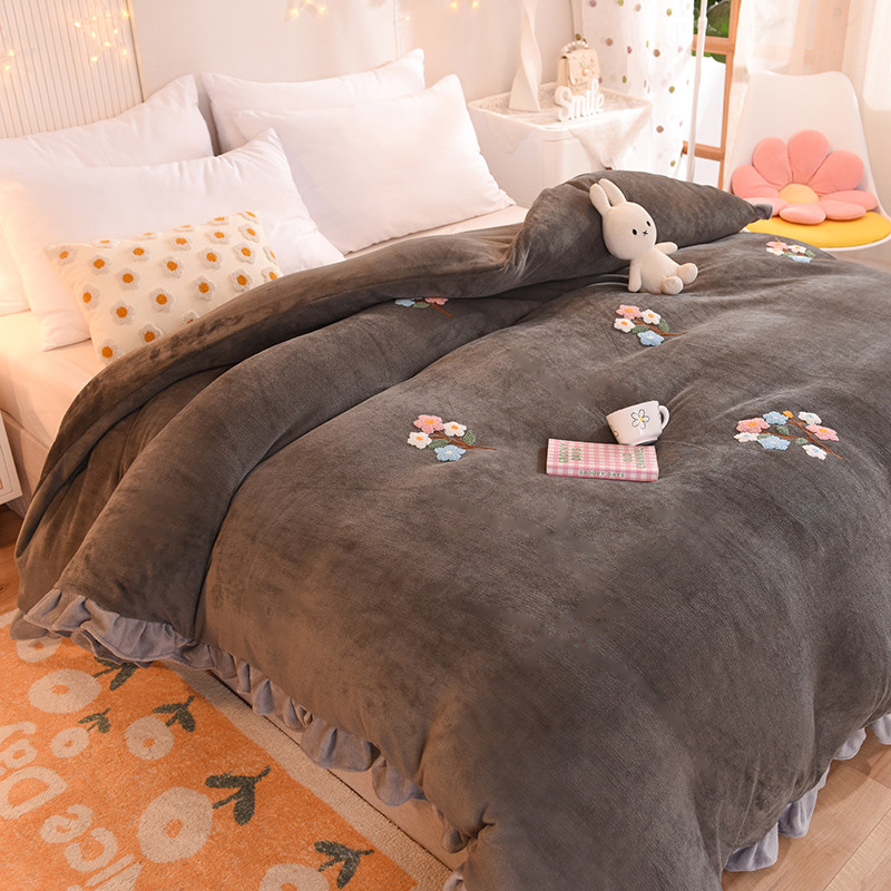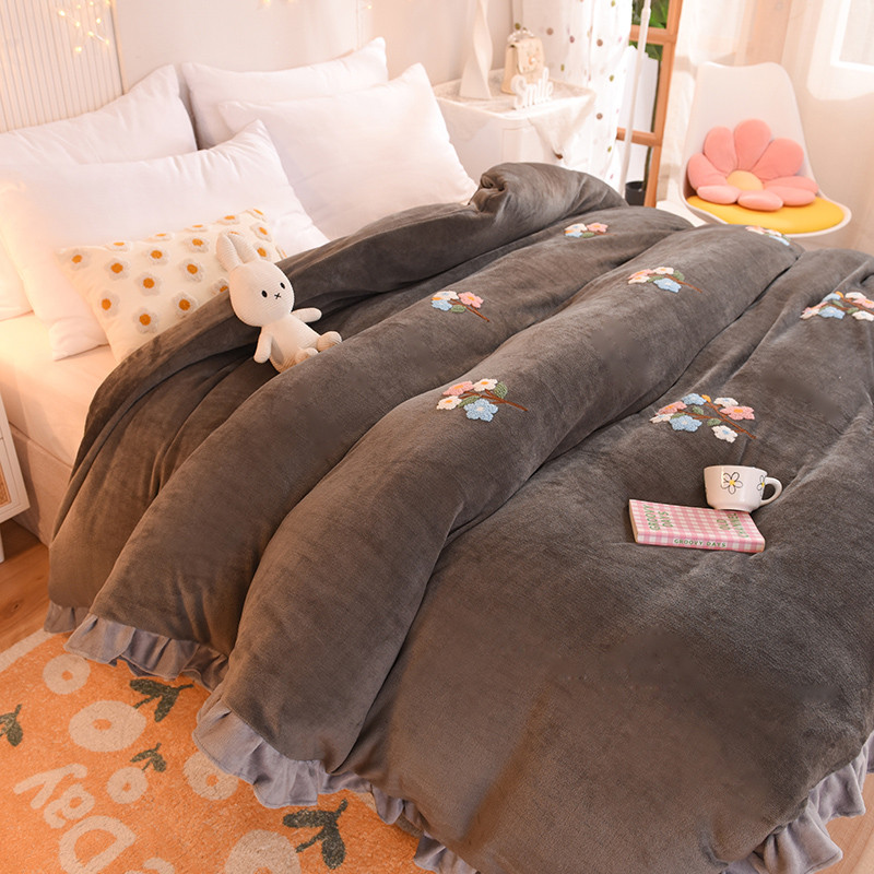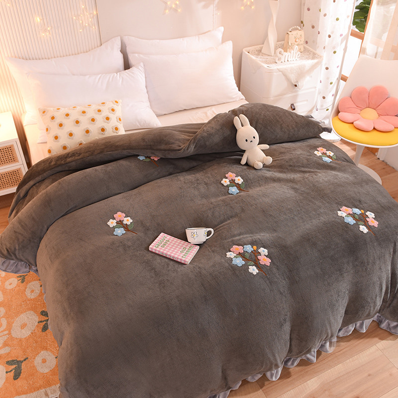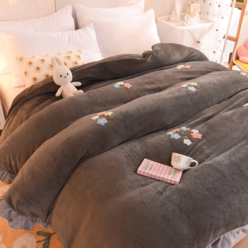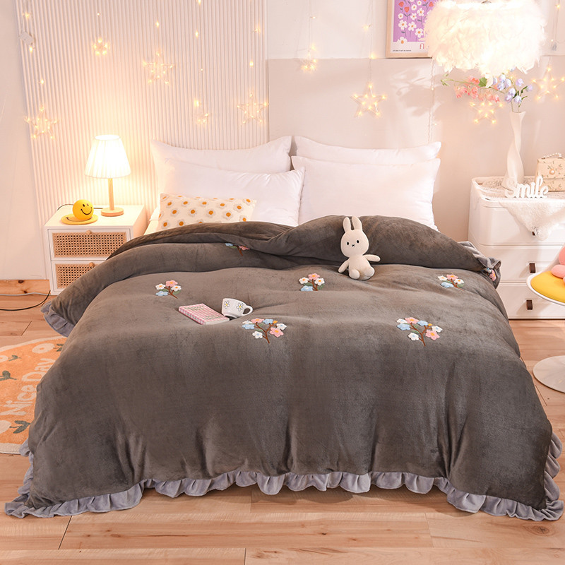 • 91家纺网 家纺一手货源 找家纺 甜之梦 2025新款毛巾绣牛奶绒单被套 满天星深灰