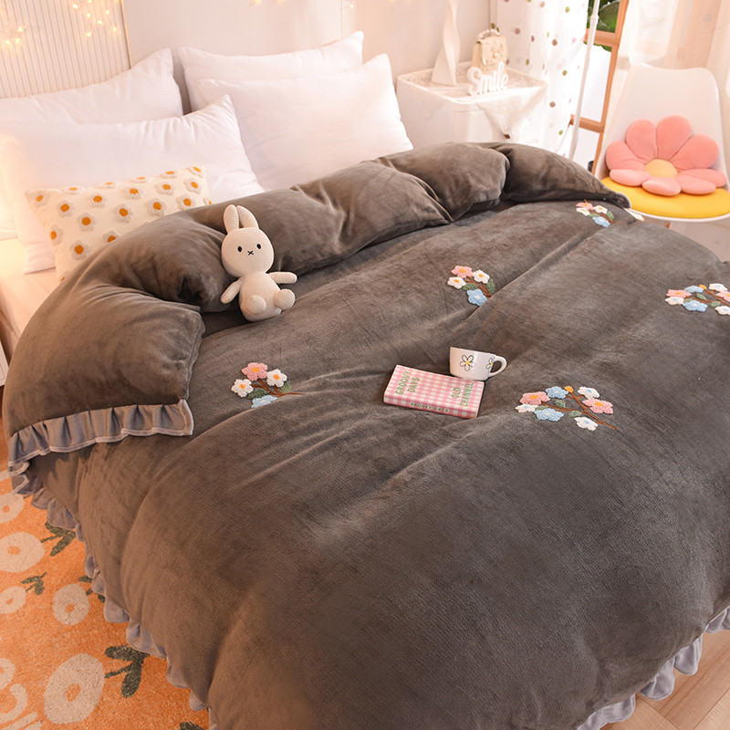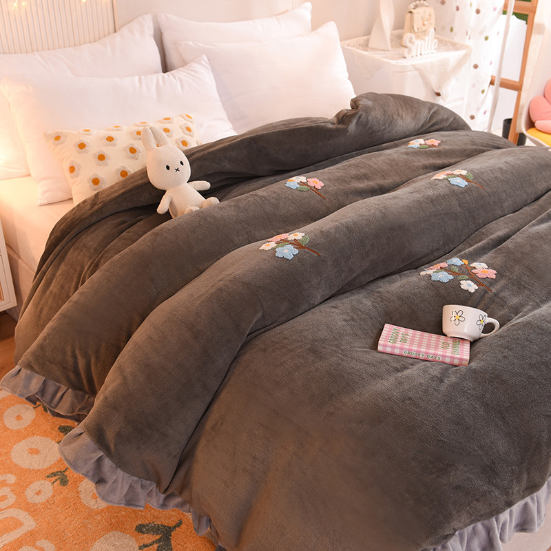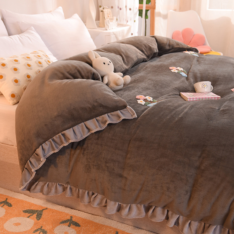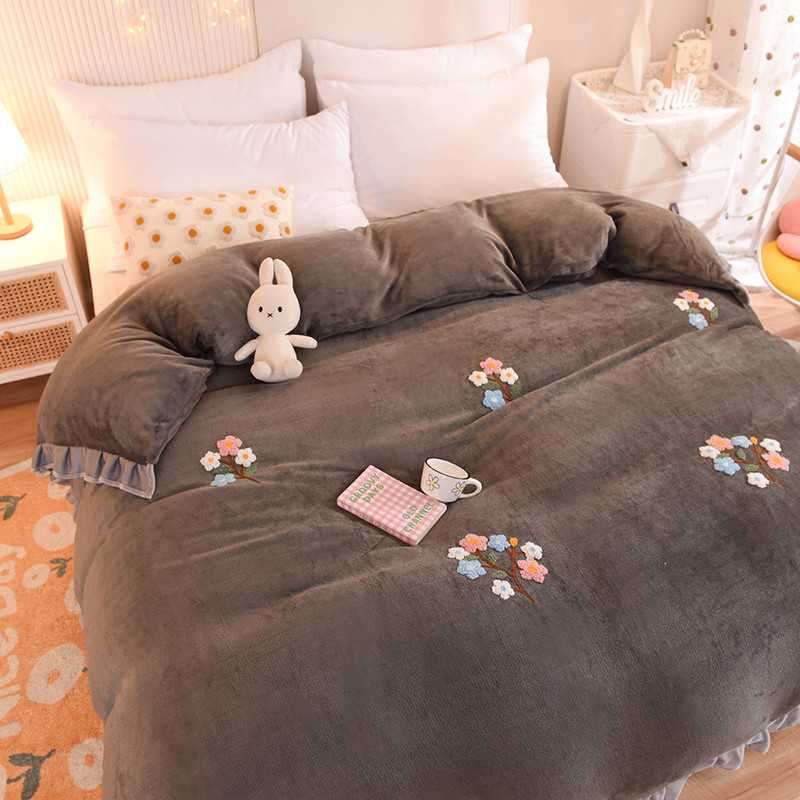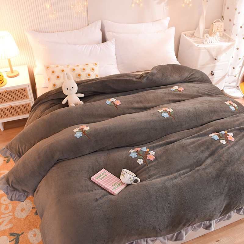 • 91家纺网 家纺一手货源 找家纺 甜之梦 2025新款毛巾绣牛奶绒单被套 满天星深灰