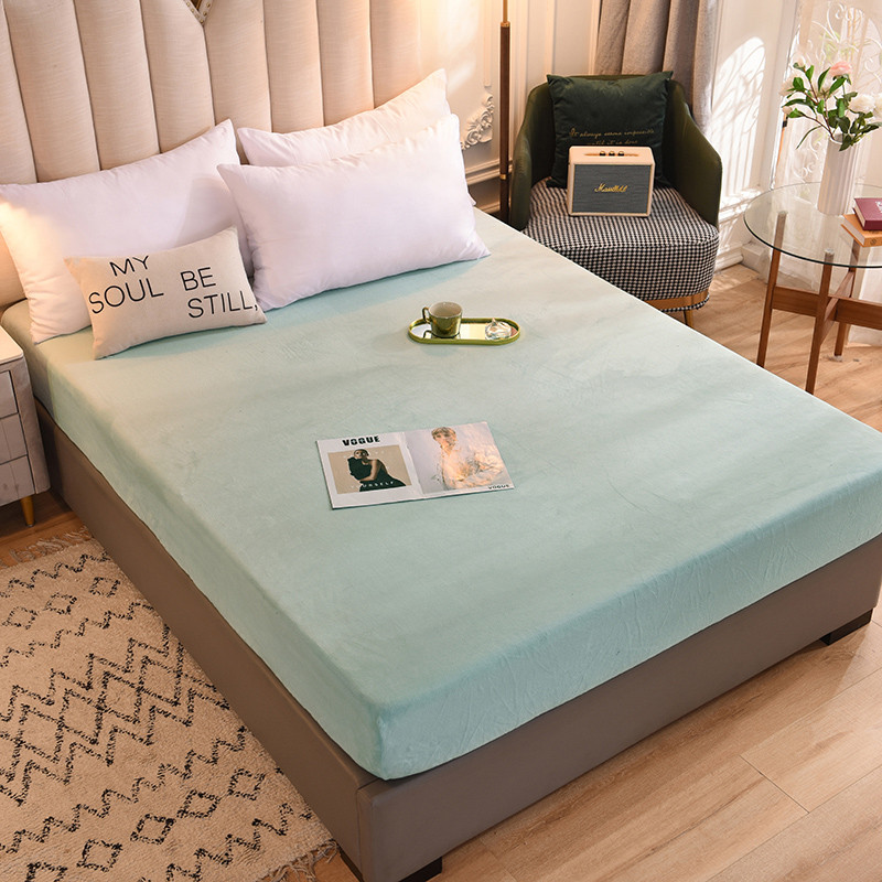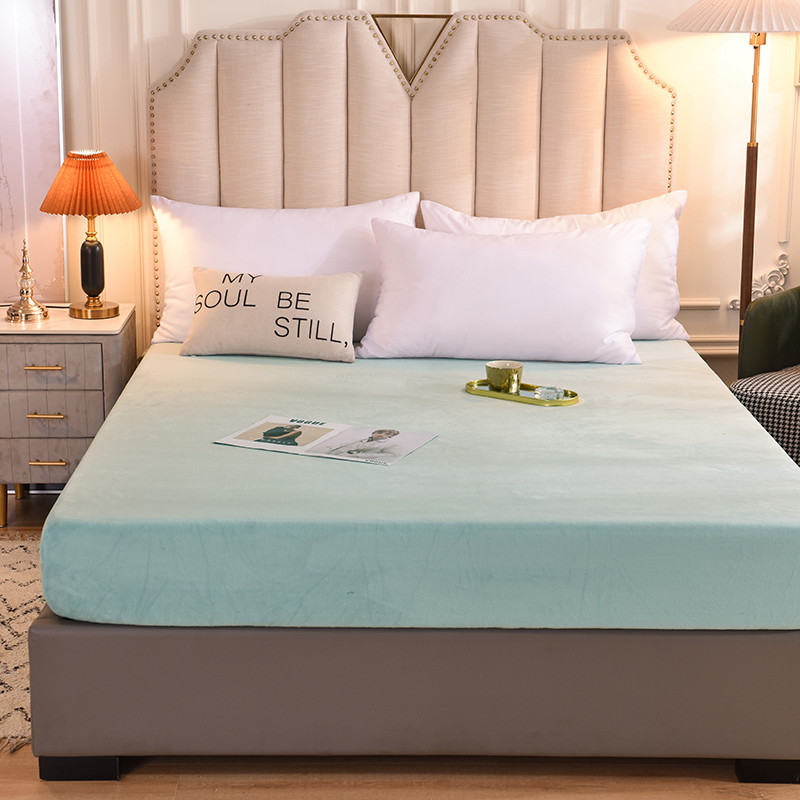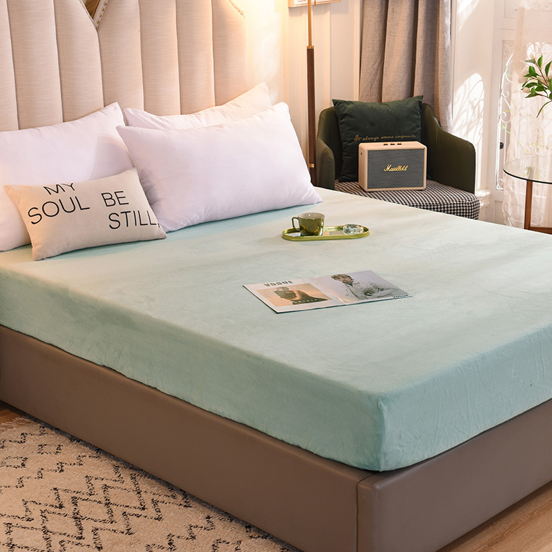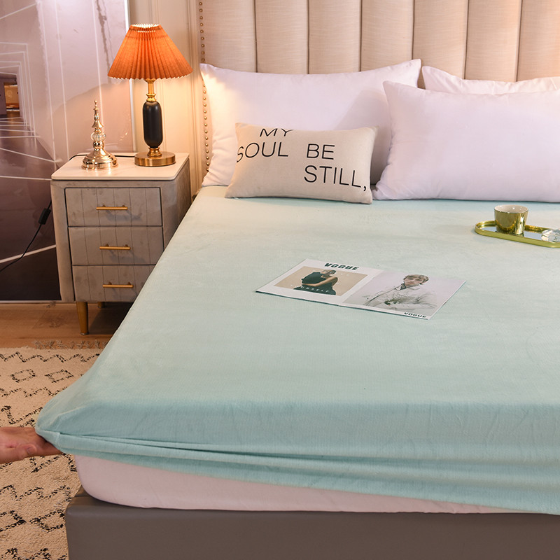 总甜之梦家纺 2025新款韩版泥点绒单床笠(任何尺寸异型缺角都可定做),贵族蓝,玛瑙绿,泥点绒淡粉,优雅灰