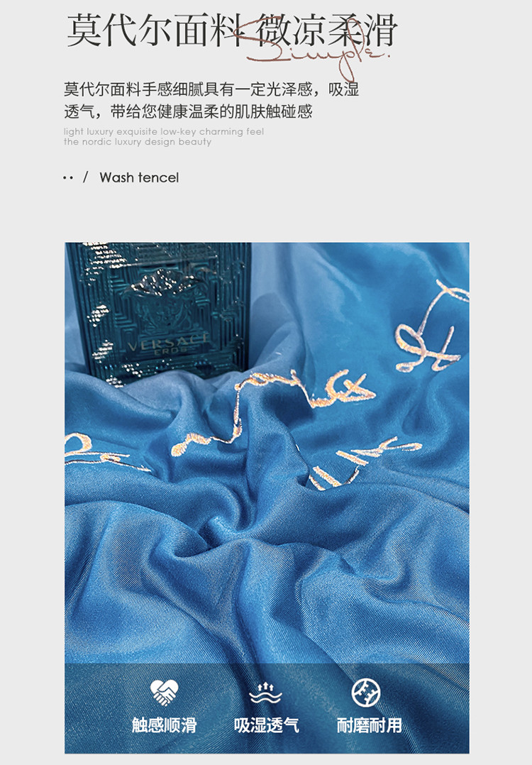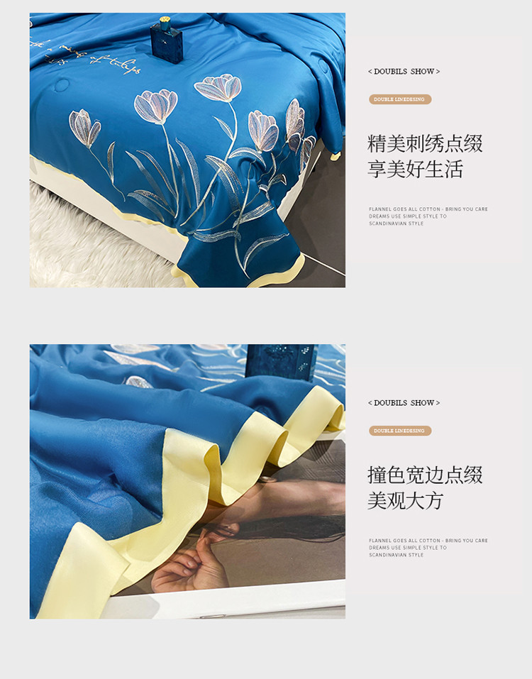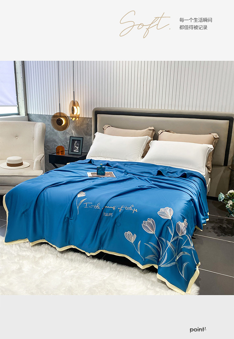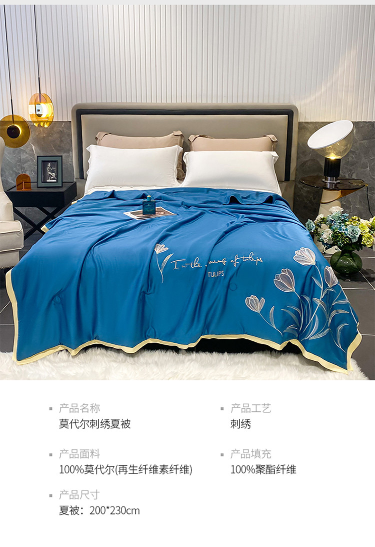 商品名称:吾秀 2022新款莫代尔重工刺绣夏被-郁金香 郁金香-宝蓝