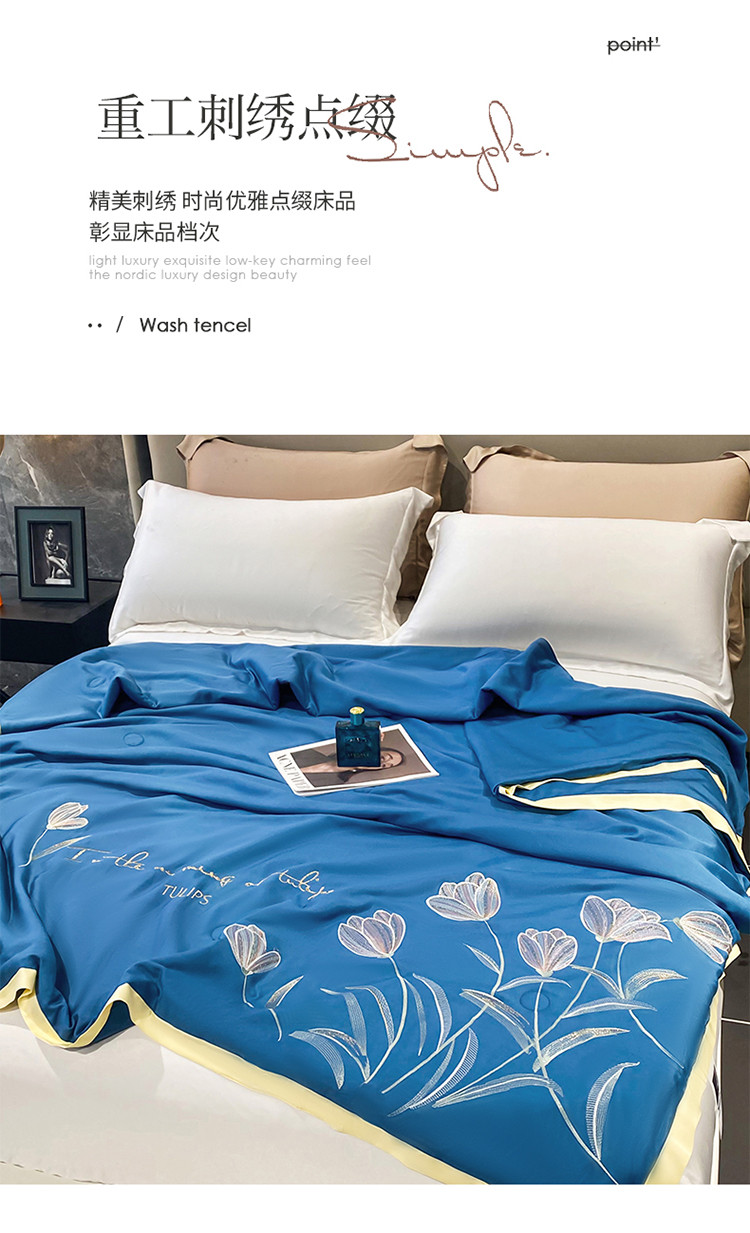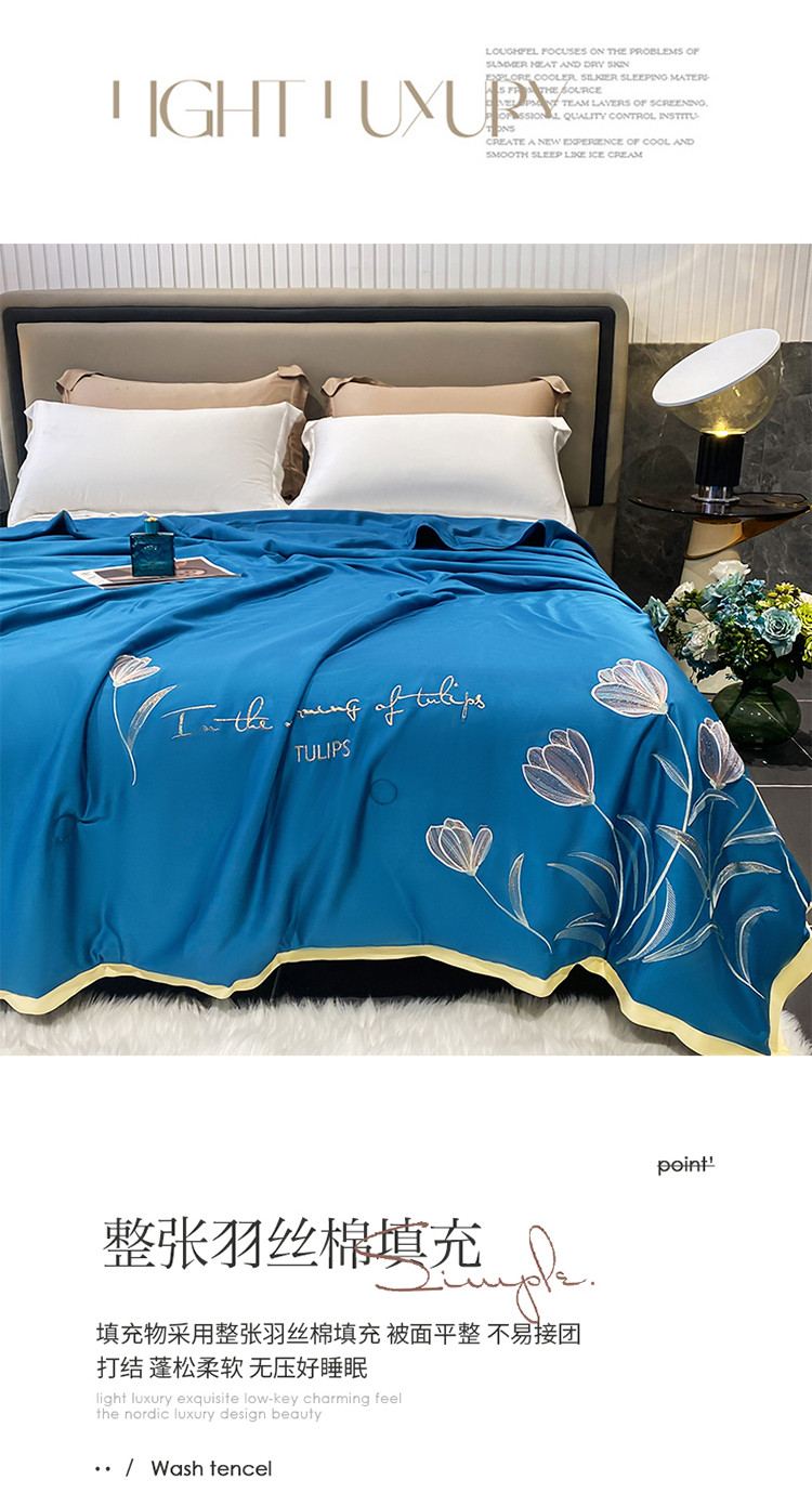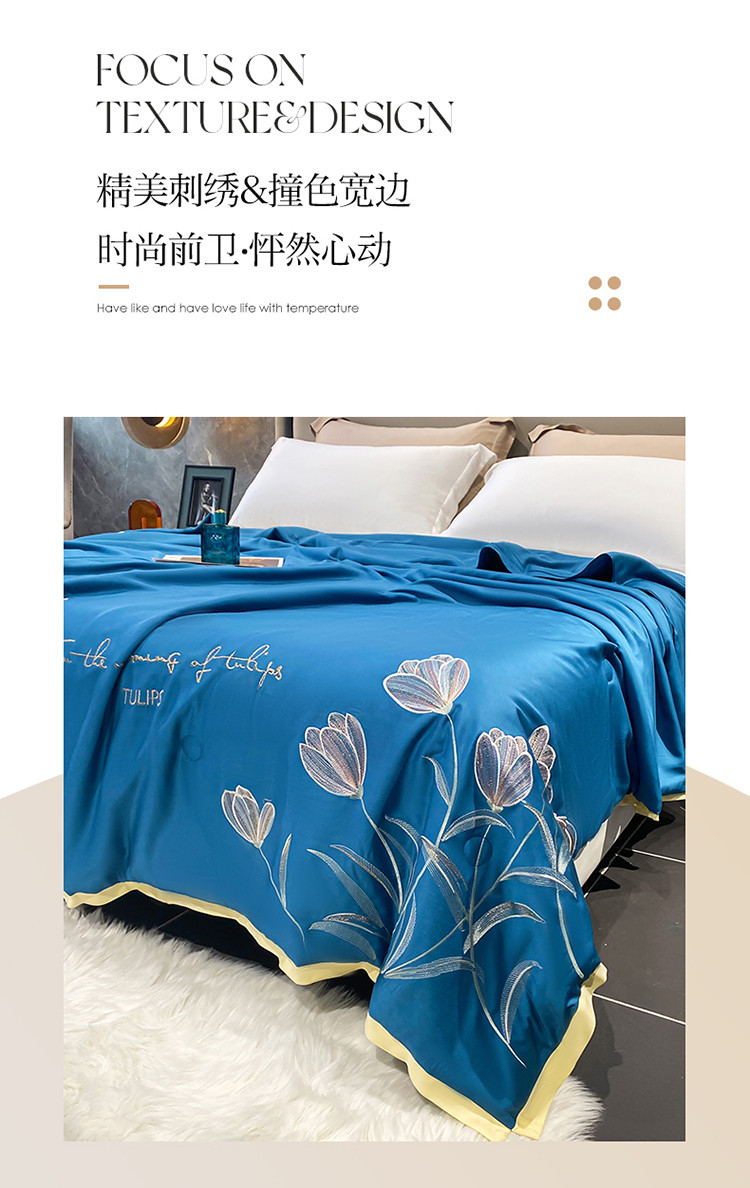 吾秀 2022新款莫代尔重工刺绣夏被-郁金香 郁金香-宝蓝